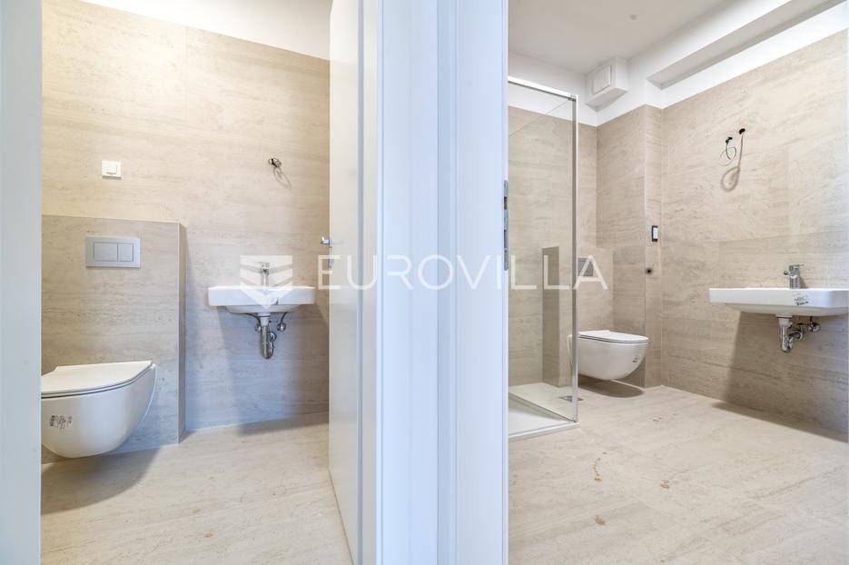 Lašćina, trosoban stan zatvorene površine 60.54 m2 na prvom katu novogradnje iz 2025 godine.Sastoji se od ulaznog hodnika, prostranog open-space koncepta dnevnog boravka, kuhinje i blagovaonice s izlaskom na balkon, dvije spavaće sobe, kupaonice te dodatnog gostinjskog toaleta.Pripada mu garažno parkirno mjesto 13.75 m2 (neto korisne površine 8.25 m2) i vanjsko parkirno mjesto 15.00 m2 (neto korisne površine 3.00 m2).Stan je opremljen dizalicom topline, podnim grijanjem, pvc vanjskom stolarijom s troslojnim staklom, komarnicima i električnim roletama te klima uređajem.Podne obloge po izboru kupca.Visina stropa iznosi 284 cm, a objekt ima A+ energetski certifikat. Dodatnu sigurnost i udobnost pružaju protuprovalna vrata, videoportafon te sustav filtriranja vode.Nalazi se u neposrednoj blizini javnog prijevoza, škola, trgovina i svih ostalih sadržaja potrebnih za ugodan i funkcionalan svakodnevni život.Za dodatne informacije stojimo Vam na raspolaganju.... Više na eurovilla.hr, ID: 563547