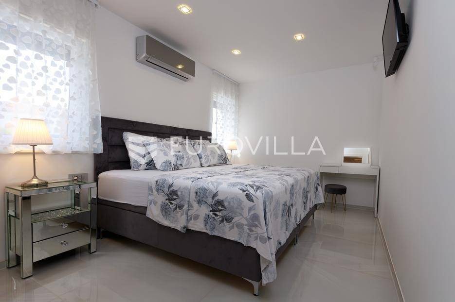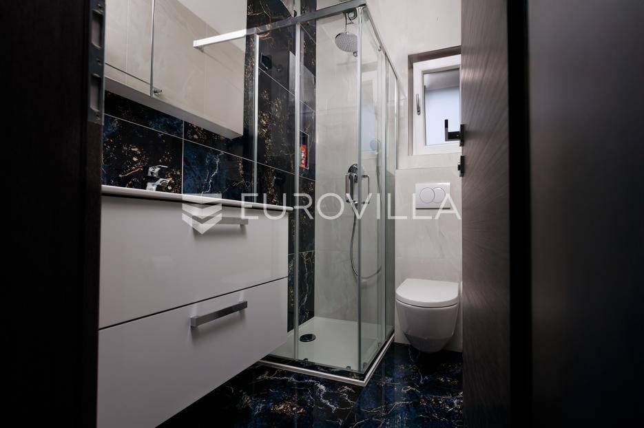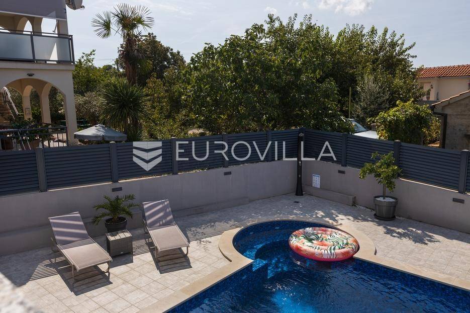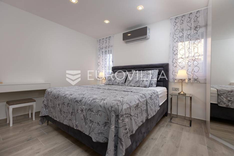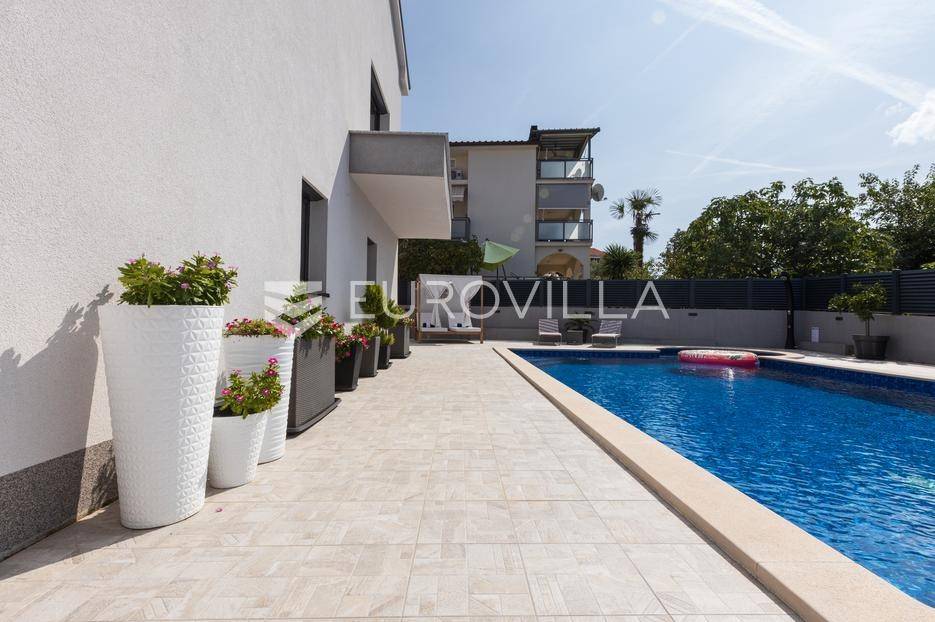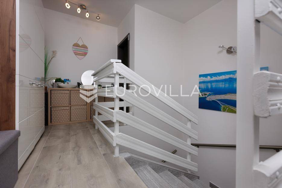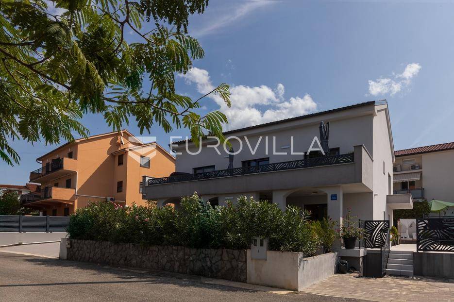 Malinska, prekrasna vila s 3 stambene jedinice, bazen, pogled na more.Na prodaju je atraktivna kuća smještena u mirnom dijelu Malinske, u slijepoj ulici koja pruža potpunu privatnost i mir. Kuća se sastoji od dvije etaže i potkrovlja, a zahvaljujući svojoj koncepciji i opremi idealna je kako za obiteljski život tako i za nastavak uhodanog turističkog najma.Na donjem katu nalaze se dva dvosobna apartmana, svaki površine 43 m² uz terasu od 12 m². Oba apartmana kategorizirana su s pet zvjezdica i već godinama uspješno posluju u turističkom najmu, što budućem vlasniku omogućuje siguran prihod ukoliko odluči nastaviti s iznajmljivanjem.Na gornjem katu prostire se cijeloetažni stan od 100 m² koji se sastoji od tri spavaće sobe i tri kupaonice, prostranog dnevnog boravka povezanog s kuhinjom i blagovaonicom te velike terase koja pruža ugodan prostor za odmor.Kuća je kvalitetno opremljena - donji apartmani imaju PVC stolariju, dok je na katu aluminijska stolarija, svugdje su postavljene električne rolete i komarnici, a udobnost i sigurnost osiguravaju osam klima uređaja, alarmni sustav, detektori dima i loma stakla te četiri nadzorne kamere. Sve tri kuhinje izrađene su od renomirane marke DAN Küchen, a kupaonice su opremljene vrhunskom stolarijom. Potkrovlje od 60 m² nudi mogućnost izgradnje dodatnog apartmana, a posljednja renovacija kuće izvedena je 2025. godine.U dvorištu se nalazi veliki bazen dimenzija 10 x 5 metara, a toplinska pumpa za grijanje bazena već je osigurana te ju je potrebno samo spojiti. Na raspolaganju su i četiri vanjska parkirna mjesta.Ova nekretnina objedinjuje privatnost, luksuzan odmor i investicijski potencijal na jednoj od najpoželjnijih lokacija otoka Krka.... Više na eurovilla.hr, ID: 570108
