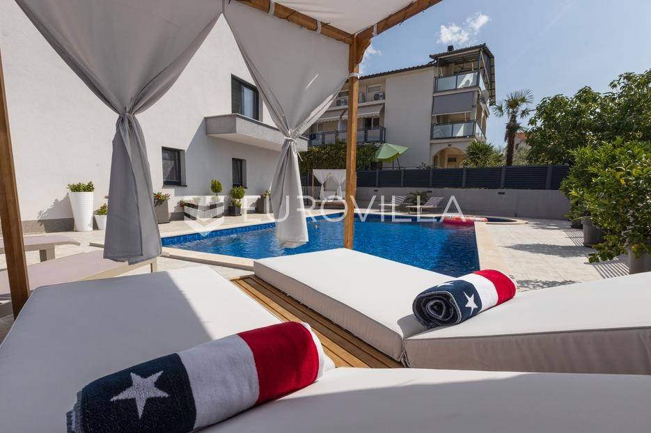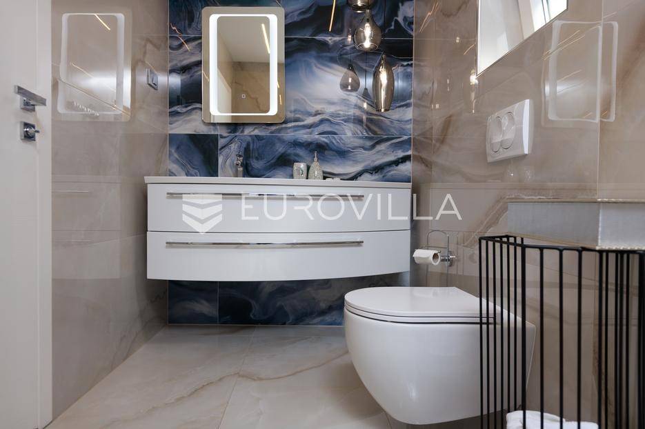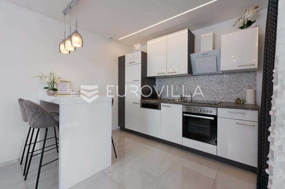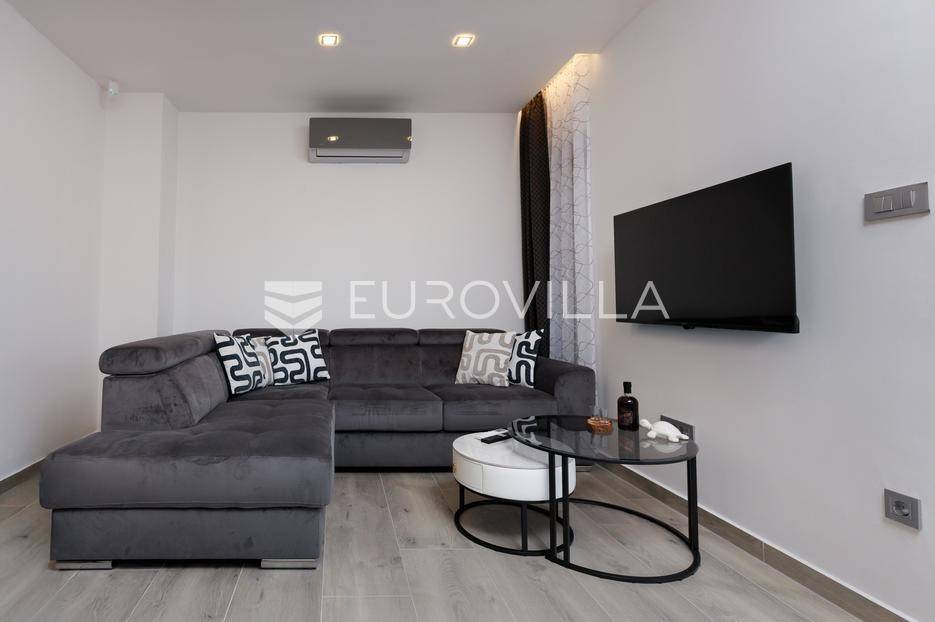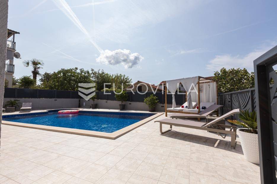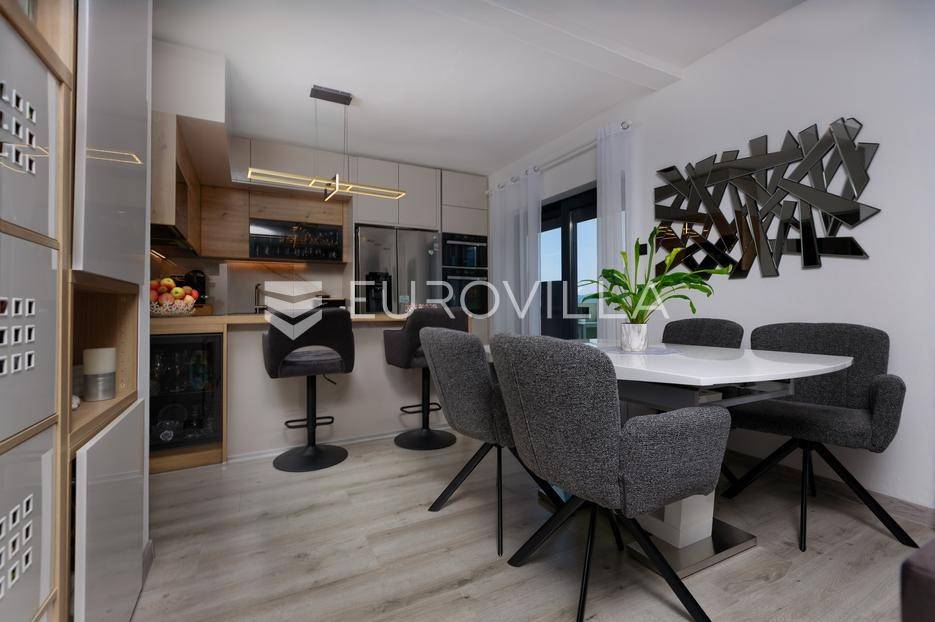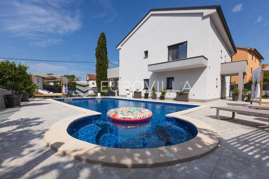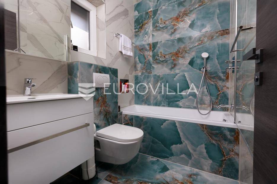 Malinska, prekrasna vila s 3 stambene jedinice, bazen, pogled na more.Na prodaju je atraktivna kuća smještena u mirnom dijelu Malinske, u slijepoj ulici koja pruža potpunu privatnost i mir. Kuća se sastoji od dvije etaže i potkrovlja, a zahvaljujući svojoj koncepciji i opremi idealna je kako za obiteljski život tako i za nastavak uhodanog turističkog najma.Na donjem katu nalaze se dva dvosobna apartmana, svaki površine 43 m² uz terasu od 12 m². Oba apartmana kategorizirana su s pet zvjezdica i već godinama uspješno posluju u turističkom najmu, što budućem vlasniku omogućuje siguran prihod ukoliko odluči nastaviti s iznajmljivanjem.Na gornjem katu prostire se cijeloetažni stan od 100 m² koji se sastoji od tri spavaće sobe i tri kupaonice, prostranog dnevnog boravka povezanog s kuhinjom i blagovaonicom te velike terase koja pruža ugodan prostor za odmor.Kuća je kvalitetno opremljena - donji apartmani imaju PVC stolariju, dok je na katu aluminijska stolarija, svugdje su postavljene električne rolete i komarnici, a udobnost i sigurnost osiguravaju osam klima uređaja, alarmni sustav, detektori dima i loma stakla te četiri nadzorne kamere. Sve tri kuhinje izrađene su od renomirane marke DAN Küchen, a kupaonice su opremljene vrhunskom stolarijom. Potkrovlje od 60 m² nudi mogućnost izgradnje dodatnog apartmana, a posljednja renovacija kuće izvedena je 2025. godine.U dvorištu se nalazi veliki bazen dimenzija 10 x 5 metara, a toplinska pumpa za grijanje bazena već je osigurana te ju je potrebno samo spojiti. Na raspolaganju su i četiri vanjska parkirna mjesta.Ova nekretnina objedinjuje privatnost, luksuzan odmor i investicijski potencijal na jednoj od najpoželjnijih lokacija otoka Krka.... Više na eurovilla.hr, ID: 570108