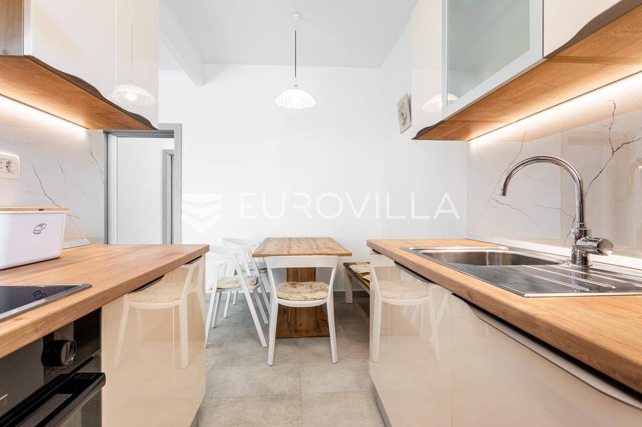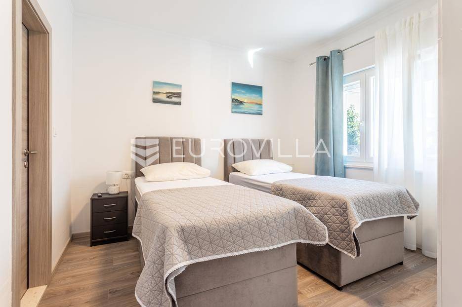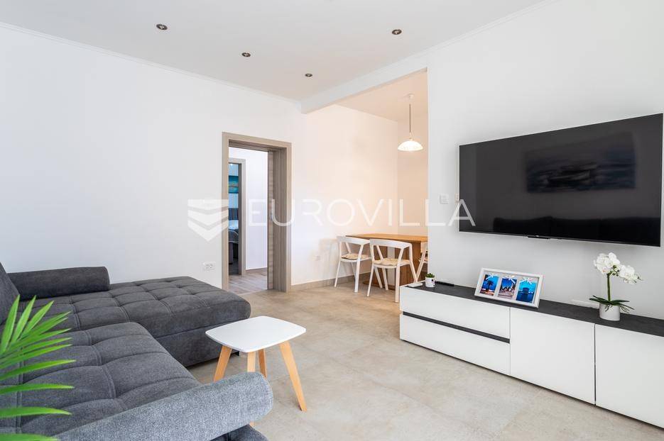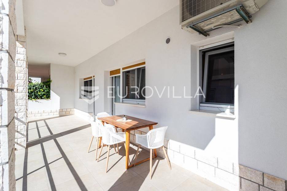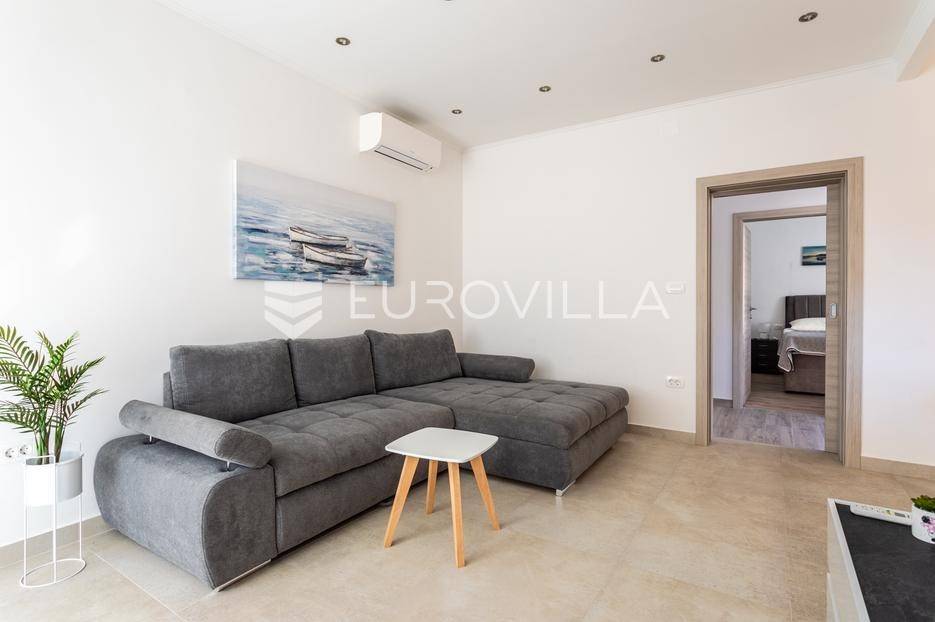 Trogir, komforan i u potpunosti renoviran dvosoban stan dostupan za dugoročan najam.Položen je u prizemlju obiteljske kuće, a podijeljen je na hodnik, kuhinju s blagovaonicom, dnevni boravak, dvije spavaće sobe ( od kojih jedna ima pripadajući WC ) i kupaonicu.Stanu pripada prostrana terasa površine 25 m2, mali vrt s umjetnom travom i jedno ograđeno vanjsko parkirno mjesto. Stambena površina iznosi 80 m2.Lokacija je odlična, mirna i sigurna, a samo nekoliko minuta hoda udaljena od strogo centra Trogira.Režije nisu uključene u cijenu.Za sva ostala pitanja, stojimo vam na raspolaganju.... Više na eurovilla.hr, ID: 606486