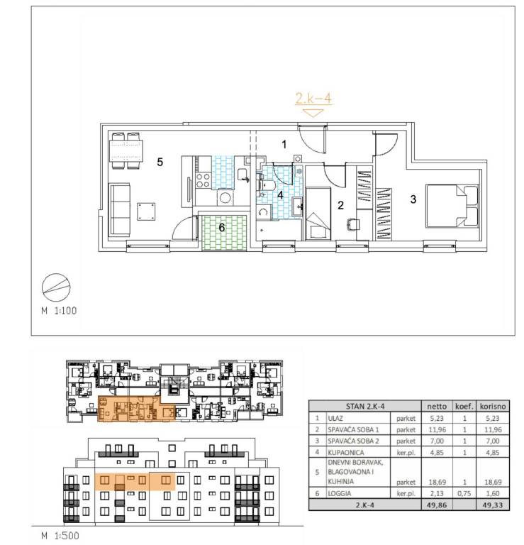 Trosoban stan površine 49,33 m2 smješten na 2. katu.Stan 2K-4 sastoji se od ulaza, 2 spavaće sobe, kupaonice, dnevnog boravka, kuhinje s blagovaonicom te loggije.Projekt moderne stambene gradnje koji obuhvaća 22 stambene jedinice raspoređene u funkcionalno organiziranoj građevini, uz 36 garažnih mjesta u podzemnoj etaži i dodatnih 8 vanjskih parkirnih mjesta na razini terena. Kolni i pješački pristup omogućen je izravno s javne prometne površine na južnoj strani parcele, a promet u mirovanju riješen je u skladu s važećim urbanističkim planom, čime je osigurana jednostavna dostupnost i kvalitetna organizacija prostora.Uz kupnju stana obavezna je kupnja garažnog parkirnog mjesta te vanjskog parkirnog mjesta.Građevina je projektirana kao armiranobetonska konstrukcija, s nosivim zidovima i gredama međusobno povezanim u cjelovit sustav te punim armiranobetonskim stropnim i ravnim krovnim pločama. Vertikalne elemente čine armiranobetonski zidovi debljine 20 cm kroz sve etaže, dok horizontalni sustav čine armiranobetonske ploče iste debljine. Takav konstruktivni koncept osigurava stabilnost, trajnost i sigurnost objekta.Pročelje će biti izvedeno u ETICS sustavu s toplinskom izolacijom od EPS-a i mineralne vune debljine 15 cm, ovisno o poziciji i zahtjevima zaštite od požara, uz završnu obradu u boji i teksturi prema projektu. Vanjska stolarija predviđena je kao PVC, uz električno upravljane rolete, čime se dodatno doprinosi energetskoj učinkovitosti i komforu stanovanja. Ravni krov projektiran je kao neprohodan, s tehničkim slojevima definiranim elaboratom fizike zgrade.Unutarnji prostori osmišljeni su s naglaskom na funkcionalnost i dugotrajnost materijala. Sustav grijanja izveden je kao plinsko etažno podno grijanje, koje omogućuje ravnomjernu raspodjelu topline i optimalnu iskoristivost prostora bez radijatora. Za hlađenje su predviđeni klima uređaji proizvođača Bosch.Podovi se izvode kao plivajući sustav s toplinskom i zvučnom izolacijom te cementnim estrihom. U dnevnim boravcima, blagovaonicama, hodnicima i spavaćim sobama predviđen je troslojni hrastov parket, dok su u sanitarnim prostorima, kuhinjama i na vanjskim površinama planirane keramičke pločice. Kupcima će biti ponuđene tri varijante keramike u vrijednosti do 35 EUR/m², a sav dodatni odabir i eventualne izmjene moguće su putem tvrtke F.I.C. d.o.o., koja osigurava salonski odabir materijala i ugradnju.Unutarnja sobna vrata predviđena su od proizvođača RV Križevci, dok su ulazna vrata u stanove protuprovalna vrata proizvođača Kolnoa, opremljena sustavom zaključavanja Mul-T-Lock, čime je osigurana viša razina sigurnosti.Ovaj projekt u Velikoj Gorici predstavlja priliku za kupnju stana u novogradnji koja objedinjuje provjerenu konstrukcijsku kvalitetu, suvremene sustave grijanja i hlađenja te mogućnost prilagodbe završnih materijala prema željama kupca, u urbanoj zoni s dobrom prometnom povezanošću i razvijenom infrastrukturom.Useljenje: 05/2027... Više na eurovilla.hr, ID: 608969