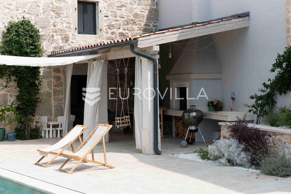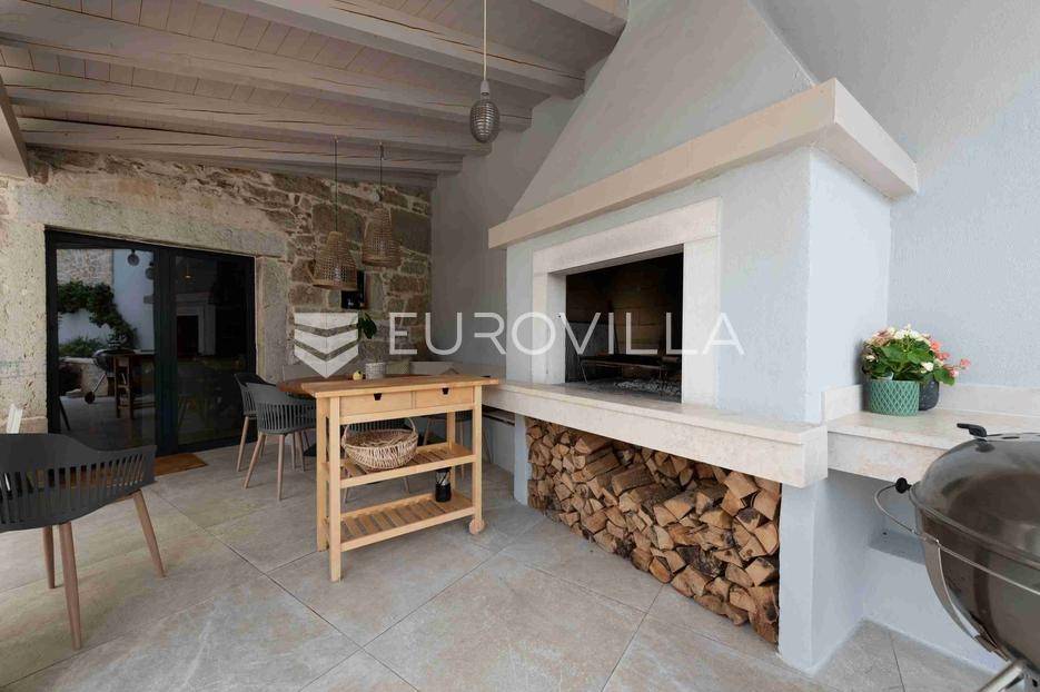 U jednom od najljepših dijelova Vižinade prodaje se autentična kamena kuća s bazenom i vanjskom kuhinjom. Ova šarmantna kuća pruža savršen spoj tradicije i modernog komfora te se prostire na dvije etaže:Prizemlje:Natkrivena ulazna terasaDnevni boravakKuhinja s otokom i blagovaonica s izlazom na vrtKupaonicaKat:Dvije prostrane spavaće sobe, svaka s vlastitom kupaonicomVešerajEksterijer uključuje:Privatni bazen dimenzija 12.80 m x 3.50 mVanjsku kuhinju i roštilj za druženja na otvorenomMediteranski vrtParkirno mjestoOstavaOva nekretnina je savršena za obiteljski život ili kao investiciju za najam.Za više informacija stojimo vam na raspolaganju.... Više na eurovilla.hr, ID: 616934