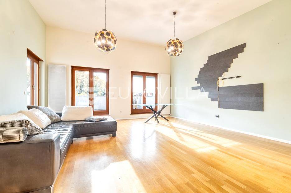Zagreb, Maksimir, iznajmljuje se predivan četverosobni penthouse ukupne površine 188 m2, smješten u mirnoj zoni uz Maksimirsku šumu - idealno mjesto za obitelj i ljubitelje prirode! Zatvorena površina stana je 144,35 m2, s pripadajućim spremištima (38,95 m2 i 2,17 m2), garažom i vanjskim nenatkrivenim parkirnim mjestom, što ukupno čini neto korisnu površinu 188,35 m2.Stan se sastoji od ulaznog hodnika, prostranog dnevnog boravak s blagovaonicom i kuhinjom izdvojene od sobe, spavači dio stana su još tri udobne spavaće sobe i dvije kupaonice, jedna s kadom druga s tuš kadom. Iz dnevnog boravka izlazi se na natkrivenu terasu s jacuzzijem i stolom za biljar, savršenu za opuštanje i druženje u svako doba godine. Terasa je natkrivena kalijevim staklom, a ima i električnu tendu/sjeniloU podrumskom dijelu nalazi se uređena prostorija od približno 70 m2 namijenjena teretani, kao i soba s tušem i saunom, što dodatno doprinosi osjećaju luksuza i privatnog wellnessa. Stan je djelomično namještan i opremljen. Masivna hrastova stolarija, egzotično drvo, mramor, masivni hrastov parket, električno podizanje roleta, etažno centralno grijanje, optički internet.Za sve ostale informacije, stojimo na raspolaganju!... Više na eurovilla.hr, ID: 627625