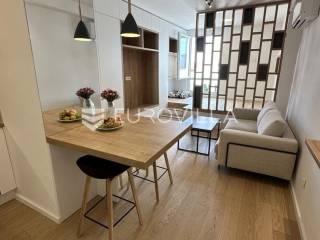 Rab, luksuzan studio apartman zatvorene površine 34,01 m2 na odličnoj lokaciji u poslovnom dijelu centra Raba. Potpuno renoviran i dizajnerski uređen 2024. godine, nikada korišten. Pripada mu spremište 2,84 m2.Stan se sastoji od ulaznog predsoblja, dnevnog boravka s kuhinjom i blagovaonicom otvorenog prostora, galerije koja služi kao spavaći prosto i kupaonice.Prilikom uređenje korišteni samo najbolji materijali i oprema. Miele pećnica i indukcijska ploča, Liebherr hladnjak s ledomatom, perilica posuđa Miele, Mitsubishi zen tiha klima, Credo centar pločice i sanitarije, hrastov parket prve klase, puno mjesta za odlaganje...Nalazi se vrhunskoj lokaciji u neposrednoj blizini svih sadržaja potrebnih za kvalitetno življenje... Dućani, pošta, kafić, pizzeria, tržnica, odvjetnički ured, javni bilježnik, cvjećar, banka... Idealno kao investicija za najam ili za privatno korištenje za odmor.Za sve dodatne informacije stojimo na raspolaganju.... Više na eurovilla.hr, ID: 637626