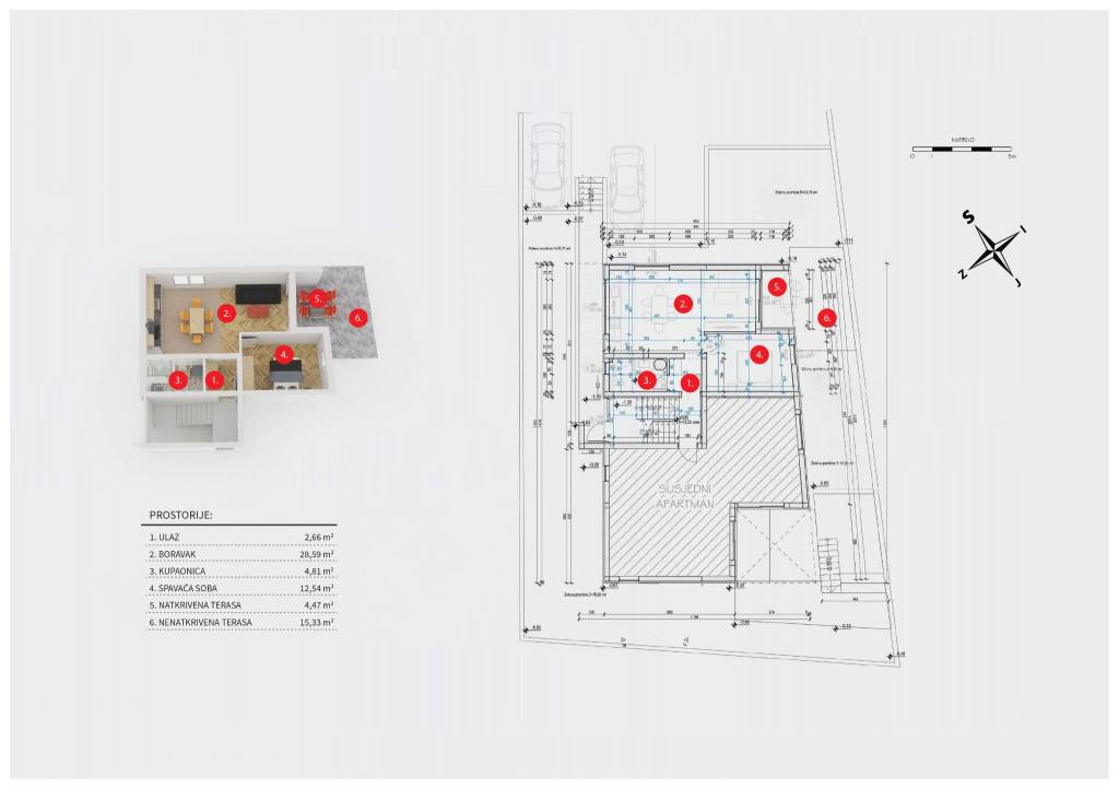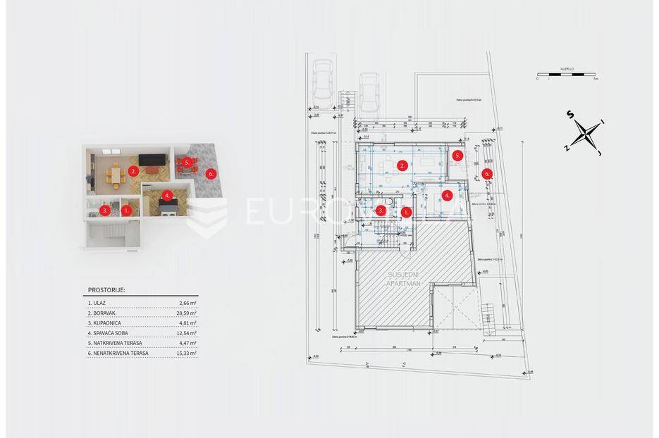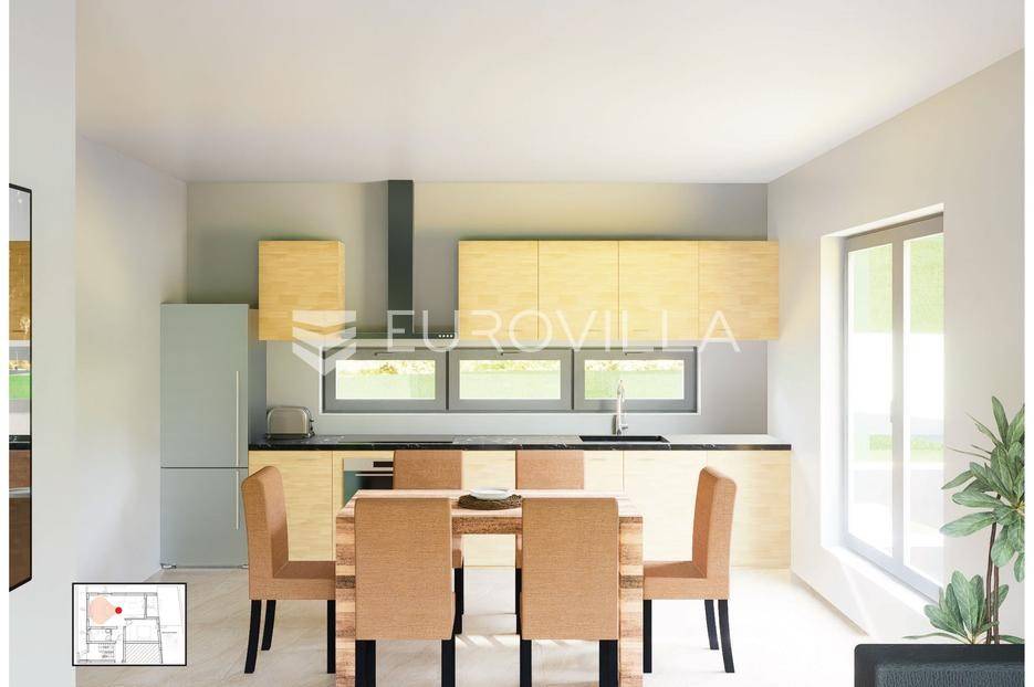 Vodice, NOVOGRADNJA, projekt stambene zgrade koja će biti građena prema najvišim standardima na tri etaže s ukupno 4 stambene jedinice. Useljenje travanj 2026. godine.STAN S2 - jednosoban stan u prizemlju zatvorene površine 48,60 m2, nenatkrivena terasa 15,33 m2, natkrivena terasa 4,47 m2, vrt 49,97 m2. Pripada mu vanjsko parkirno mjesto 12,50 m2. Ukupno obračunski neto korisna površina iznosi 57,80 m2.Sastoji se od ulaznog prostora, dnevnog boravka s blagovaonicom i kuhinjom otvorenog tlocrta s izlazom na terasu i vrt, spavaće sobe i kupaonice.Vrhunska oprema: dizalica topline, klimatizirano, PVC stolarija, protuprovalna ulazna vrata, parket I klase, vrhunska keramika i sanitarna oprema…Nalazi se na atraktivnoj mikrolokaciji 400 metara od centra Vodica, plaže, te svih potrebnih sadržaja. Prodavatelj je tvrtka, te kupac ne plaća porez na kupnju nekretnine.Za sve ostale informacije stojimo na raspolaganju.... Više na eurovilla.hr, ID: 638209