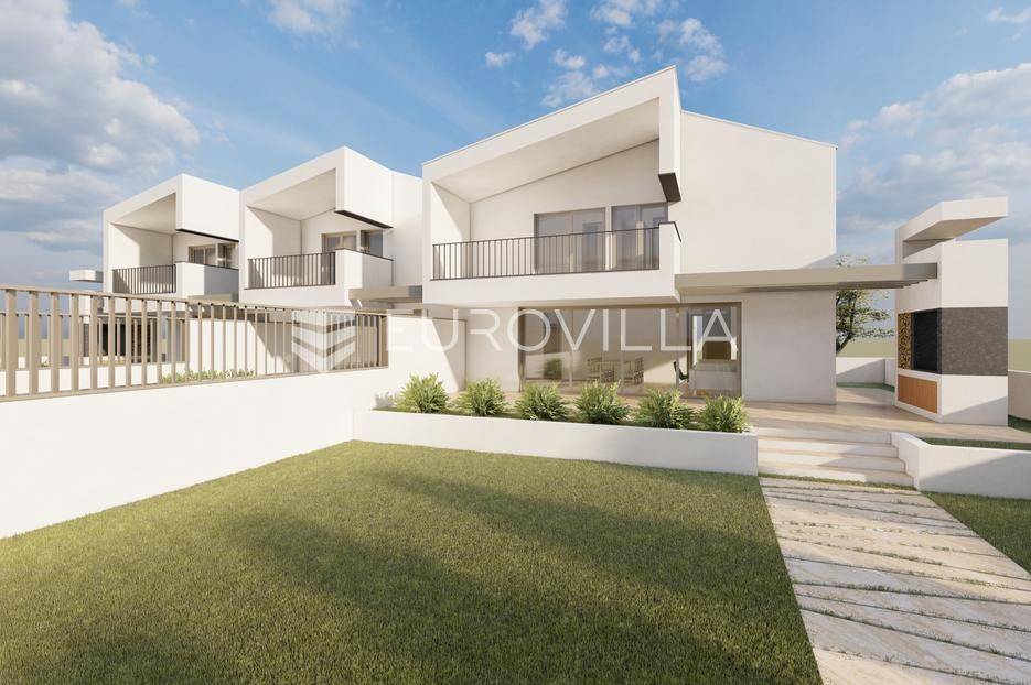 Metković, Klada, izuzetno mirna ulica, smještena na periferiji grada nekoliko minuta automobilom do centra grada. Dvije stambene jedinice,opremljene vrhunskim i pažljivo odabranim materijalima- planirano useljenje ljeto 2026.Villa K.1 - ukupno obračunski neto korisne površine 137.39 m2-prizemlje obračunski 78.53m2, zatvorene površine 63m2,ulazni hodnik 7,2 garaže 21m2 ,gostinjskog toaleta 2,1 m2 , dnevnog boravka i kuhinje 30 m2 ,ostave 2 m2 i prekrasne terase 15,53 m2 .(natkrivene terase 9,4m2 )Prvi kat ukupno obračunski neto korisne površine 59,26m2, koje se sastoji od stubišta, tri spavaće sobe, kupaonice te dvije terase.Zelene površine cca 200m2.Ispred vile postoje parkirna mjesta za dva automobila. Ukupna površina parcele 430 m2. Cijena 329,000.00EURStambena jedinica dizajnirana je kako bi pružila najviši standard privatnosti, udobnosti, uz sofisticiranu estetiku, vrhunske materijale i funkcionalne tlocrtePri gradnji će biti korištena najmodernija oprema:alu vanjska stolarija vrhunske kvalitetemogućnost stanice za el.automobileparketpripremljeni izvodi za solarne paneleprotuprovalna vratadizalica topline -ostavljen priključakkomplet klimatizacija stambene jediniceStambene jedinice nalaze u neposrednoj blizini svih trgovačkih lanaca, udaljene od Međugorja svega 27 km, od mora 20 km, a od ušća Neretve koje je idealno za Kite surfing svega 17 km vožnje automobilom.Stambene jedinice je moguće kupiti u kompletu ili zasebno po sistemu "ključ u ruke".Za sva pitanja Vam stojimo na raspolaganju.... Više na eurovilla.hr, ID: 646656