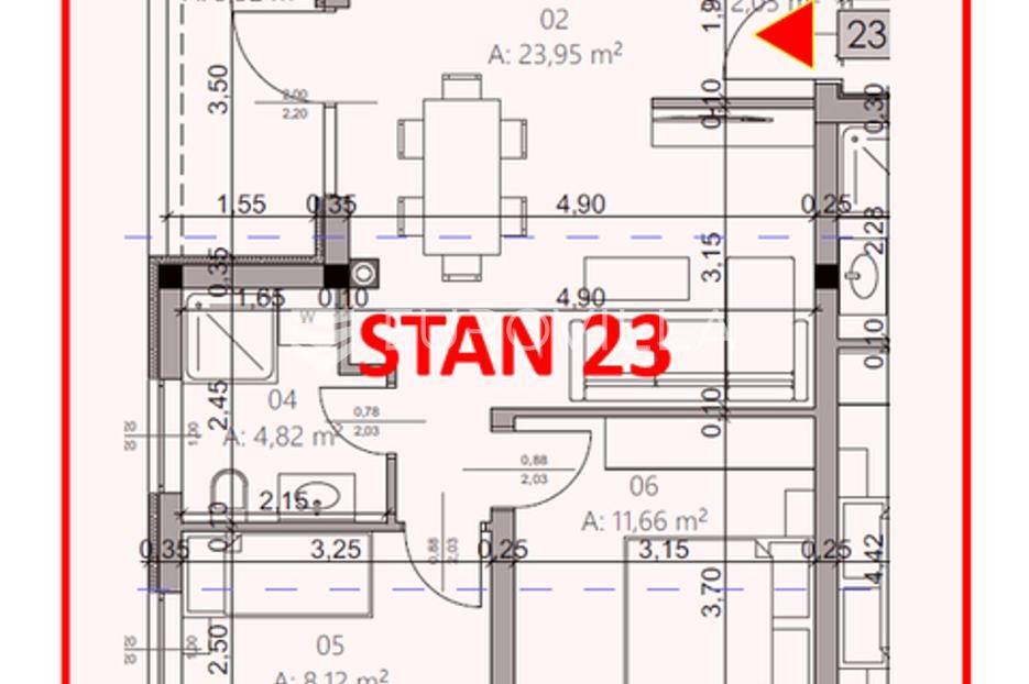 U neposrednoj blizini samoga centra grada smjestio se stan na trećem katu nove zgrade ukupne stambene površine od 54,57 m2.Stan se sastoji od ulaznog hodnika, dvije spavaće sobe, kupatila, dnevnog boravka s kuhinjom i blagovaonom po otvorenom principu, loggie i dva parking mjesta.Unutarnje uređenje stanova zadovoljavat će više kriterije kvalitete gradnje kao i visoki energetski certifikat: termo fasada, etažni sistem grijanja i hlađenja s inverter klimama, vrhunska talijanska keramika i laminati prve klase, ulazna protuprovalna vrata, stambena stolarija izrađena od visoko kvalitetnih njemačkih PVC profila, ostakljena dvostrukim IZO staklom punjenim argonom, električna podna grijanja u kupatilima i dr.U okolišu zgrada planirane su zelene površine i sadnja stablašca do 2 m visine, čime će se dodatno atraktivizirati urbani prostor okolo zgrade u skladu s prirodom.Za više informacija stojimo Vam na raspolaganju.... Više na eurovilla.hr, ID: 648122