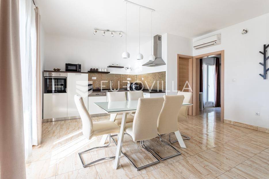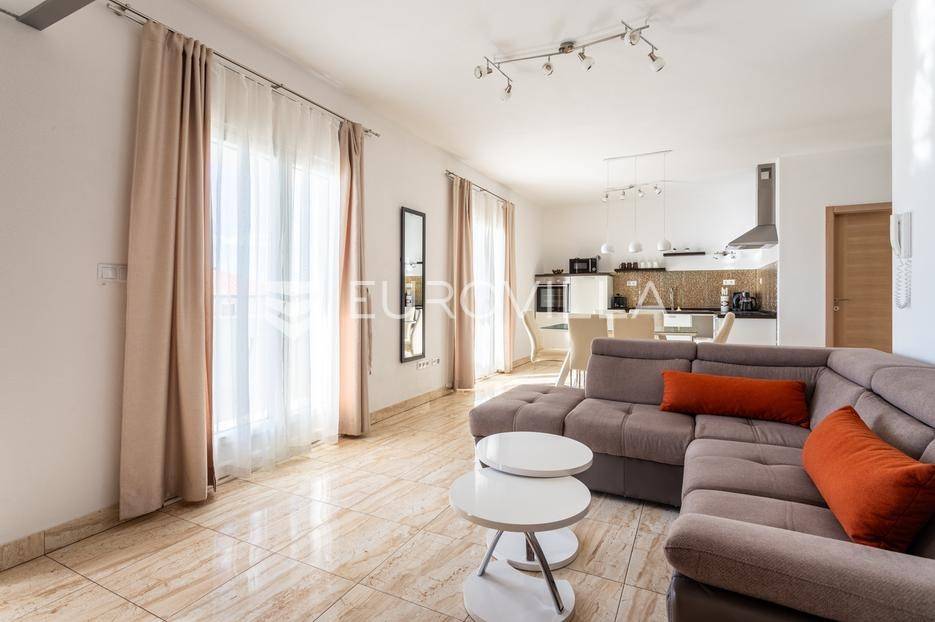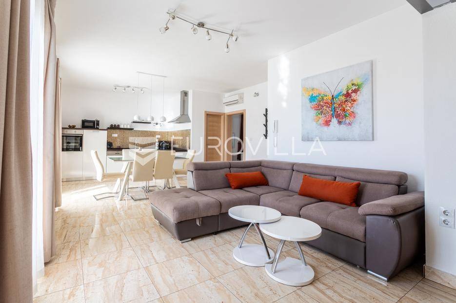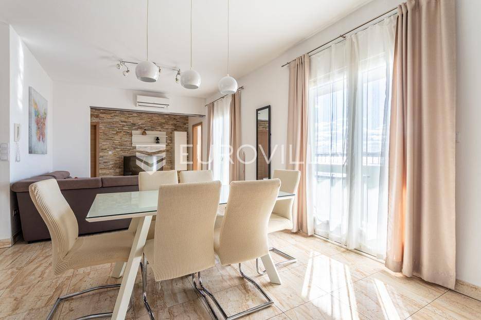 Seget Donji, uređen dvosoban stan položen na drugom katu stambenog objekta, smještenog u trećem redu od mora.Stan se sastoji od hodnika, dvije spavaće sobe, dvije kupaonice, kuhinje s blagovaonicom, dnevnog boravka te dvije prostrane terase s predivnim pogledom na more. Površina stambenog dijela iznosi 85 m2.Dostupan je odmah, a režije nisu uključene u cijenu.Za sve dodatne informacije, stojimo vam na raspolaganju.... Više na eurovilla.hr, ID: 677326