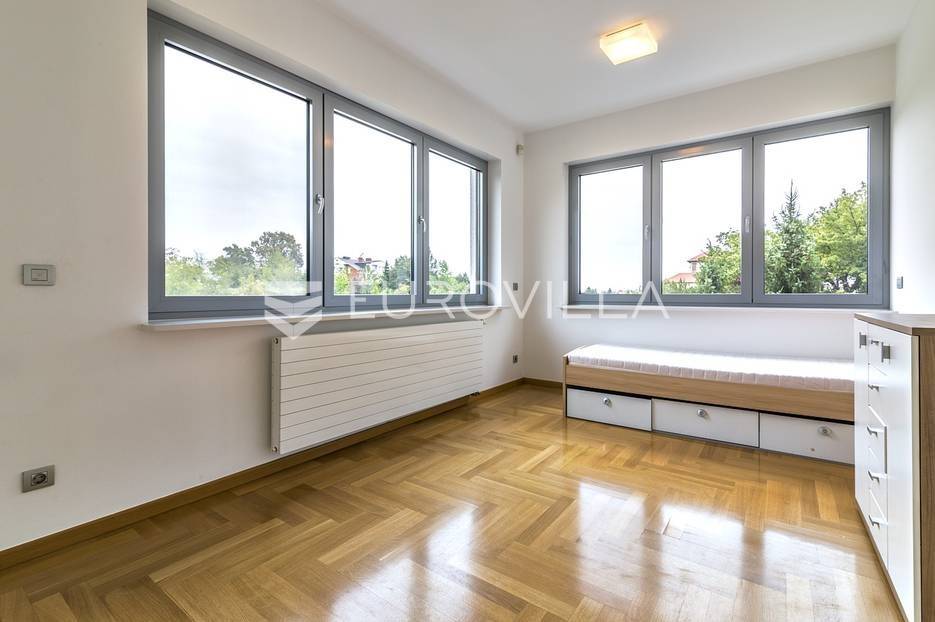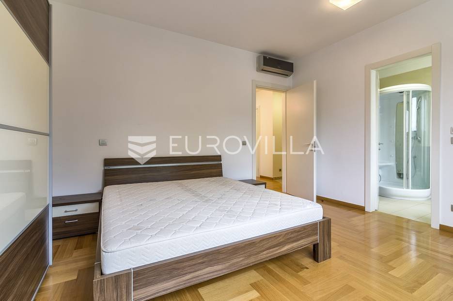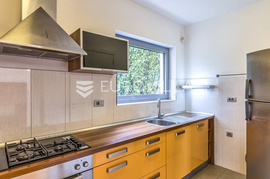Babonićeva ulica, prekrasno elitno novoizgrađeno naselje (2008). Izuzetno mirna ulica, smještena u srcu Šalate, nekoliko min automobilom do glavnog gradskog trga. Kompleks se sastoji od 6 luksuznih vila (za ambasade) i 25 urbanih vila s oko 120 stanova. Cijeli kompleks je "high tech" izvedbe (inteligentne kuće, alarmi, video nadzor naselja, te jedan bazenski kompleks s popratnim sadržajima).Prekrasan peterosoban stan na I katu. Površine 146 m2 sa vrtom 60 m2 i parkirnim mjestom. Prostran ulazni hodnik sa ugrađenim ormarom, toalet za goste sa vešerajem, ogroman dnevni boravak s blagovaonicom i kaminom koji izlazi na natkrivenu terasu i vrt, kuhinja s ostavom, potpuno odvojen spavaći dio sa master sobom s kupaonicom i 3 dječje sobe sa još jednom kupaonicom. Etažno plinsko grijanje, klimatiziran, alarm... Ostale informacije na upit.... Više na eurovilla.hr, ID: 701188