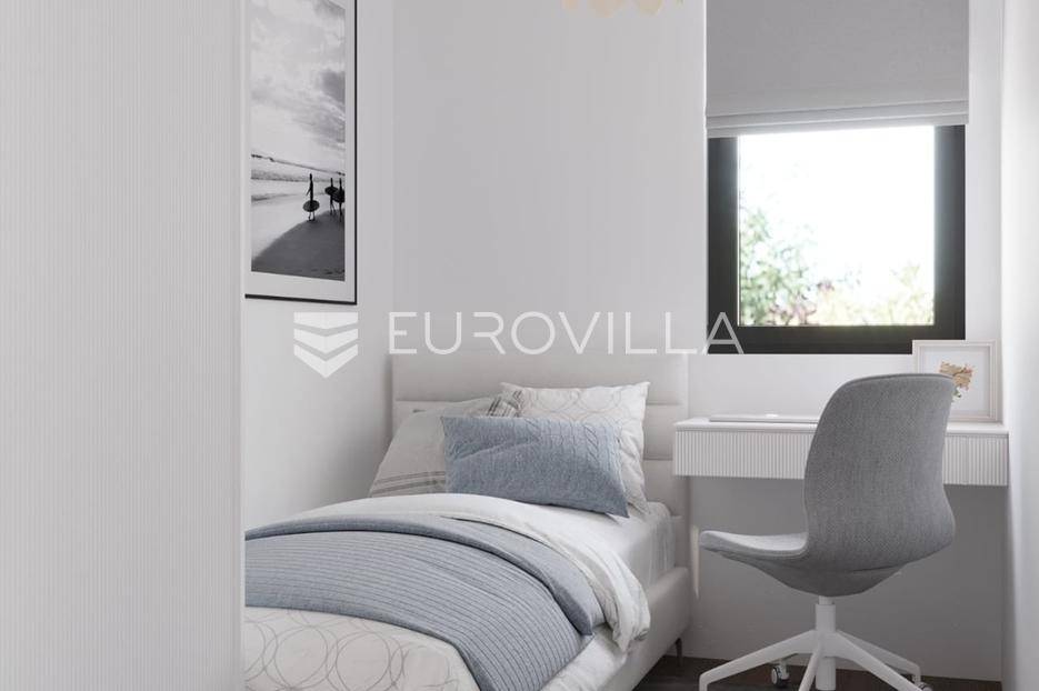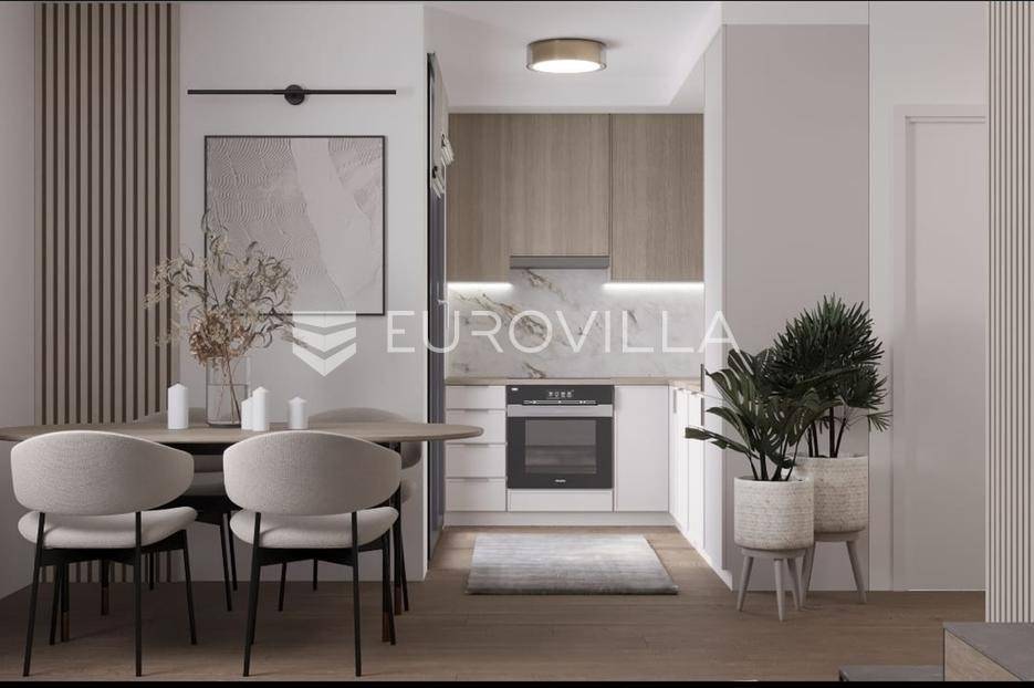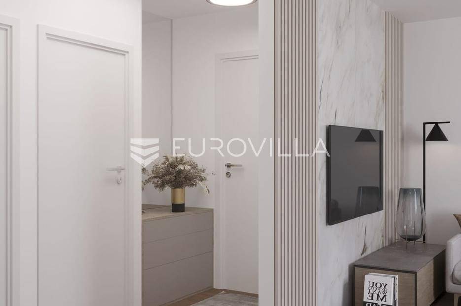 Komforan dvosoban stan u na drugom katu ukupne površine 50,5 m2 s pripadajućom krovnom terasom 46 m2 te parkirnim mjestom.Sastoji se od: dvije spavaće sobe kuhinje s blagovaonicom i dnevnog boravka otvorenog tipa, kupaonice, hodnika, logge na jugu povezane s dnevnim boravkom te krovnom terasom na etaži iznad. Zatvorena stambena korisna površina stana 47 m2, lođa od 3,5 m2 te djelomično natkrivena krovna terasa od 46 m2, te natkriveni parking 13 m2, što je neto korisna površina 67,9 m2.Uz kupnju stana obvezna kupnja natkrivenog parkirnog mjesta po cijeni od 15.000 EUR.Orijentacija je jug-istok s ljepim pogledom za komforu život.Visoko kvalitetna gradnja i korištena oprema, energetska učinkovitost zadovoljava visoke standarde, kvalitetna izrada i korištena oprema.Betonska konstrukcija zgrade, inverter klima uređaj u dnevnom boravku, podno grijanje u kupaonici, zatvori PVC s duplim staklima.Nekretnina će biti izvedena u rangu A energetskog certifikata sukladno standardima.Investitor projekta izgradnje s tradicijom i iskustvom u građenju.Planirani završetak radova je 07/2026. godine.Za više informacija stojim Vam na raspolaganju na navedenim kontaktima... Više na eurovilla.hr, ID: 734182