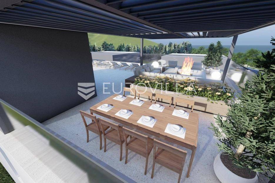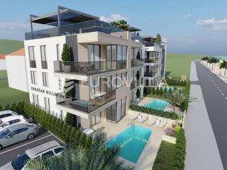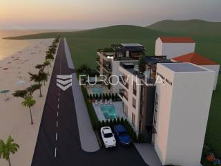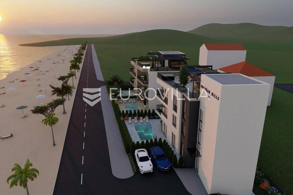 Zadar, Sukošan, predivan trosoban stan na prvom katu, 90,39 m2.Stan S03 nalazi se u zgradi sa ukupno tri stana, a sastoji se od ulaznog prostora, tri komforne spavaće sobe, dvije kupaonice, otvorenog koncepta kuhinje, blagovaonice i dnevnog boravka površine 30,16 m2 te loggie površine 5,57 m2.Stanu pripada i krovna terasa površine 26,56 m2.U izgradnji i opremanju korišteni vrhunski materijali ( podno grijanje, split sustav, vrhunska keramika i stolarija, električne rolete i komarnici na svim prozorima…).U kupaonicama je postavljeno podno grijanje, a u ostalim prostorijama grijanje i hlađenje je osigurano putem klima uređaja.Uz stan dolazi i vanjsko parkirno mjesto koje je uključeno u cijenu.Ova nekretnina nalazi je na izvrsnoj lokaciji, prvi red uz more, što ovu nekretninu čini idealnom za život ali i izvrsnom investicijom za sve one koji se žele baviti turizmom.Sukošan je mjesto smješteno na obali Jadranskog mora, poznato po svojim pješčanim plažama I kristalno čistom moru.Sukošan je i poznat po svojoj marini, koja je jedna od najvećih na Jadranu te privlači brojne nautičare.Završetak gradnje 04/2026 godine.Više informacija na upit.... Više na eurovilla.hr, ID: 755858