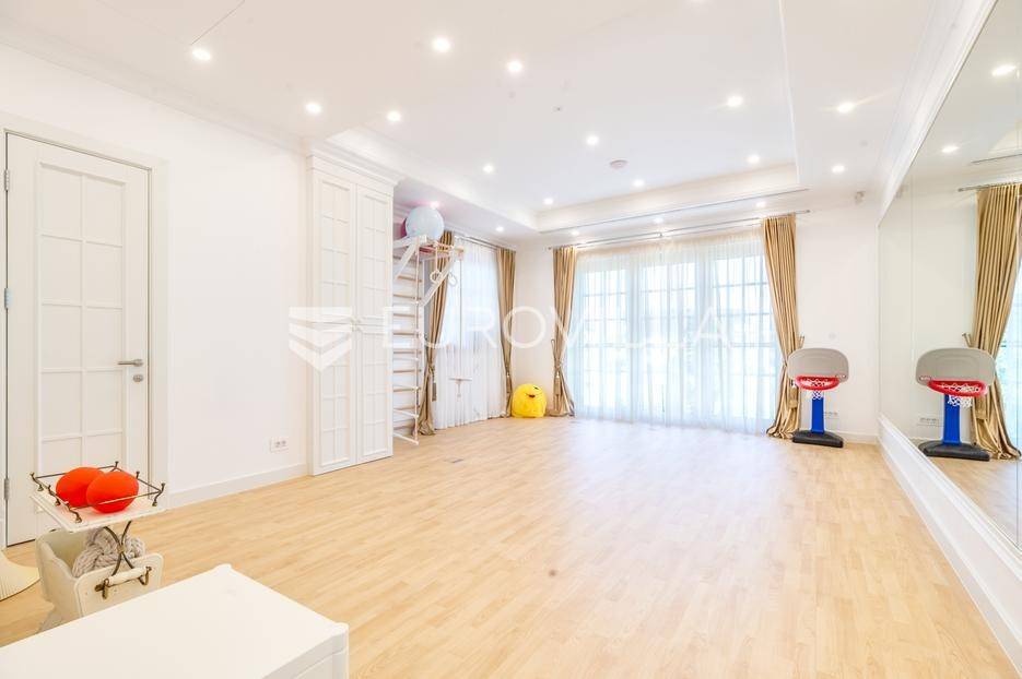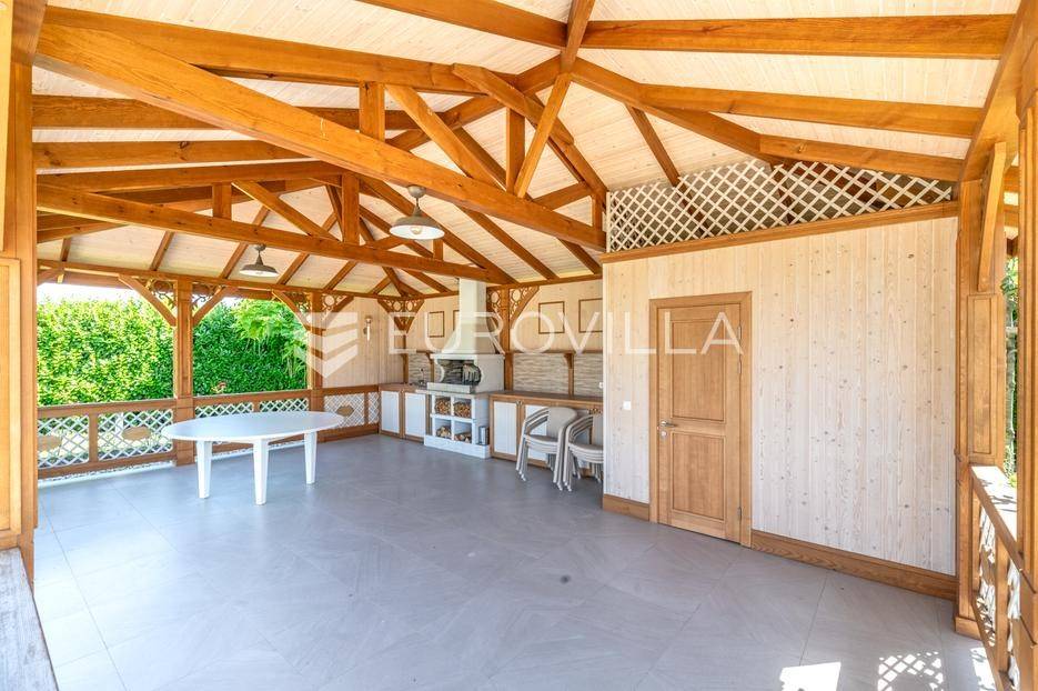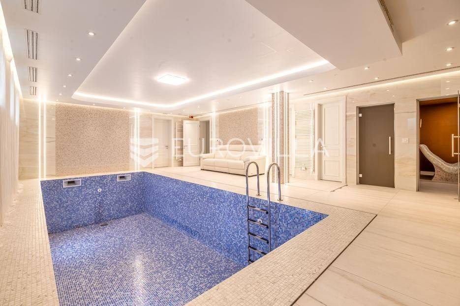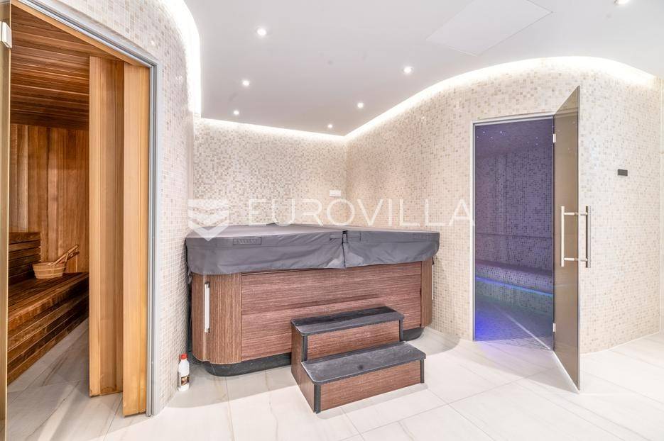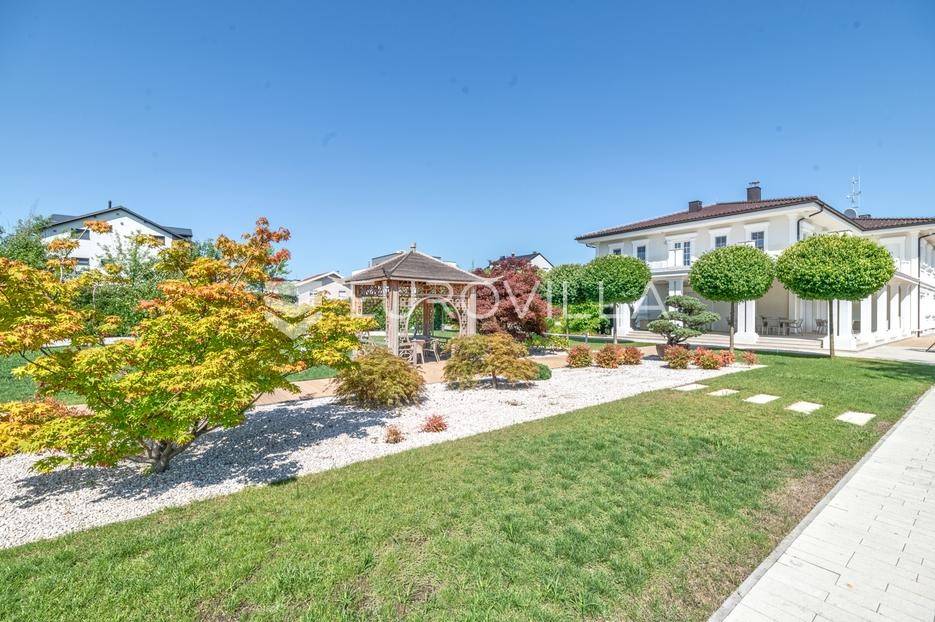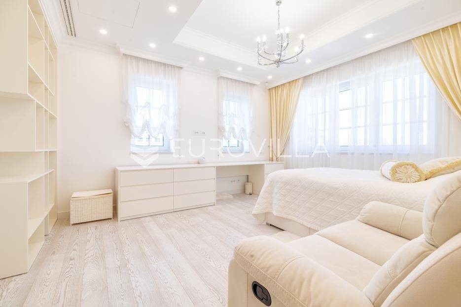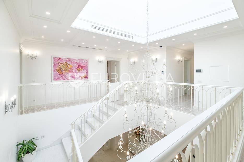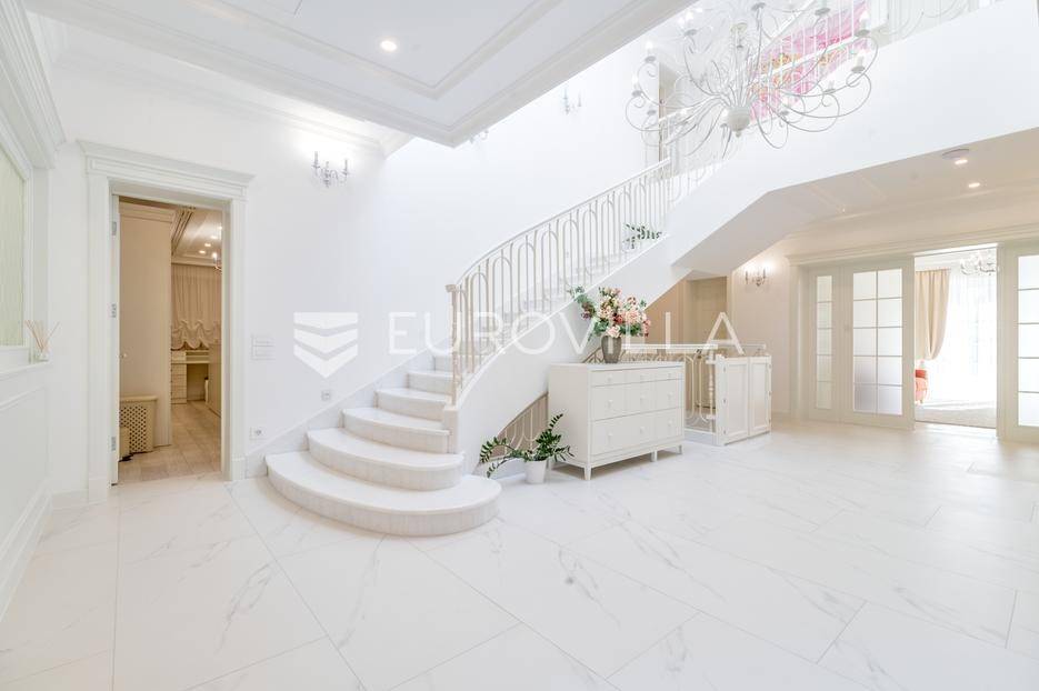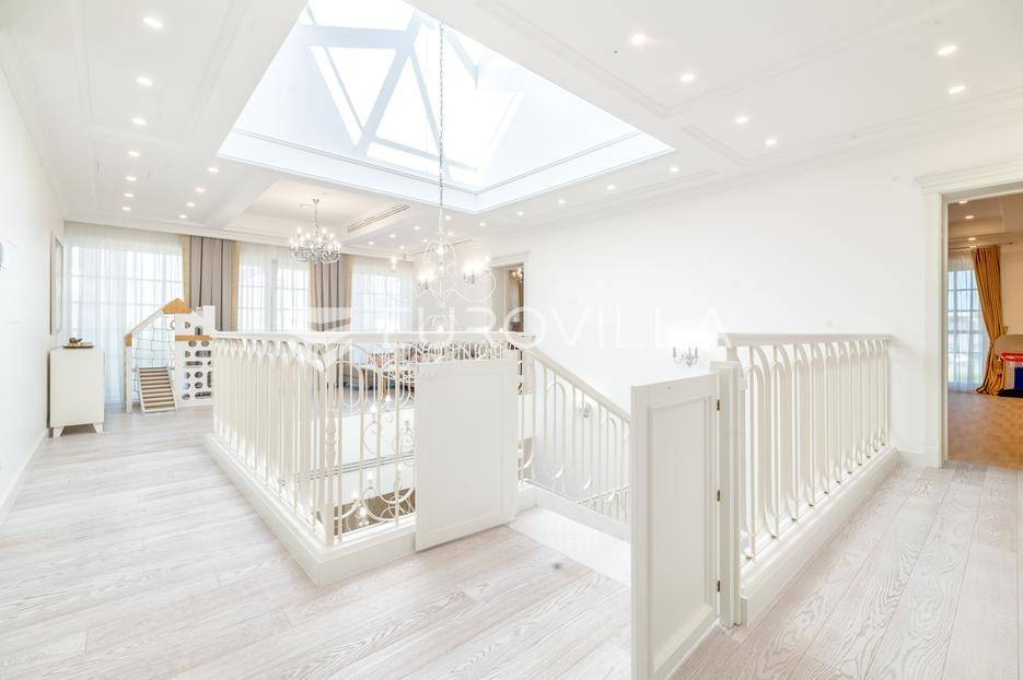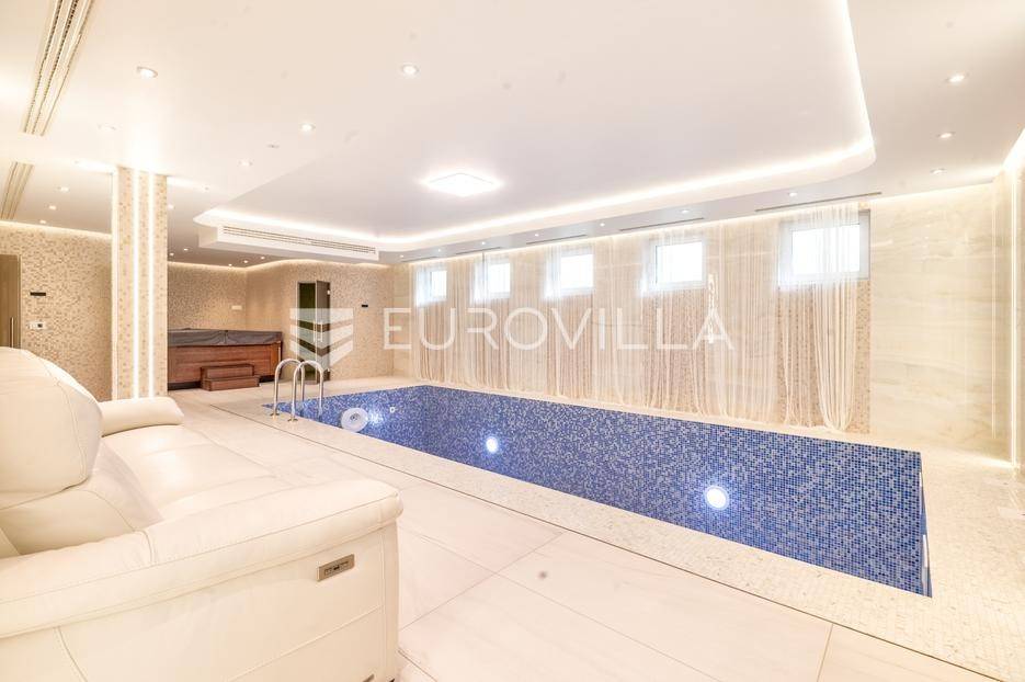 Novi Zagreb, Blato, jedinstvena lokaciji, luksuzna vila ukupne površine 1200 m2, novije gradnje iz 2020. godine s bazenom od 100 m2, uređenim dvorištem i okućnicom, ljetnom kuhinjom, dječjim igralištem, šetnicama i prekrasnim vrtom. U sklopu objekta se nalazi garaža za četiri vozila s toplim putem te mogućnost parkiranja više vozila na popločenom dijelu dvorišta.Vila je izgrađena na tri etaže, međusobno povezane unutarnjim stubištem, na parceli od 6.750 m2.Podrum: hodnik, spa prostor s unutarnjim bazenom, turskom i finskom saunom, slanom sobom i sobom za masažu, kino dvorana, vinoteka, konoba, tri sobe za osoblje s pripadajućim kupaonicama, kuhinja za osoblje, spremište. Etaža -1 ima direktan pristup prema dvorištu.Prizemlje: ulazni hodnik, prostorija za doček gostiju, prostrani dnevni boravak s izlazom na terasu i dvorište, blagovaonica, kuhinja s dodatnom blagovaonicom, tri garderobe, igraonica, kupaonica, gostinjski wc, predsoblje i stubište.Prvi kat: dodatni boravak, master soba s kupaonicom, dvije spavače s pripadajućim kupaonicama, dvije spavaće sobe s zajedničkom kupaonicom, teretana, gostinjski wc, natkrivena i nenatkrivena terasa.Vrhunska gradnja alu stolariju, troslojna stakla s električnim roletama, podno grijanje, armirano-betonska konstrukcija, energetski certifikat A, klimatizirane sve prostorije, ulazna ograda na daljinski i video nadzor.Svojim jedinstvenim položajem u neposrednoj blizini grada, vila osigurava mjesto idealno za življenje ali postoji mogućnost korištenja i kao rezidencija, ambasada, konzulat, ordinacija, klinika i sl. Nalazi se na vrlo atraktivnoj lokaciji u blizini javnog prijevoza i svih sadržaja potrebnih za kvalitetan i miran život.Za ostale informacije stojimo Vam na raspolaganju.... Više na eurovilla.hr, ID: 756388