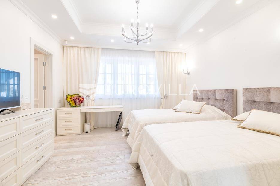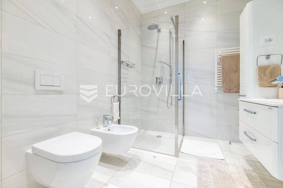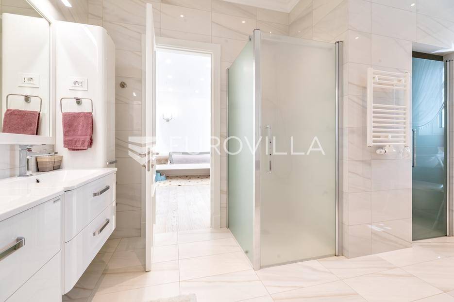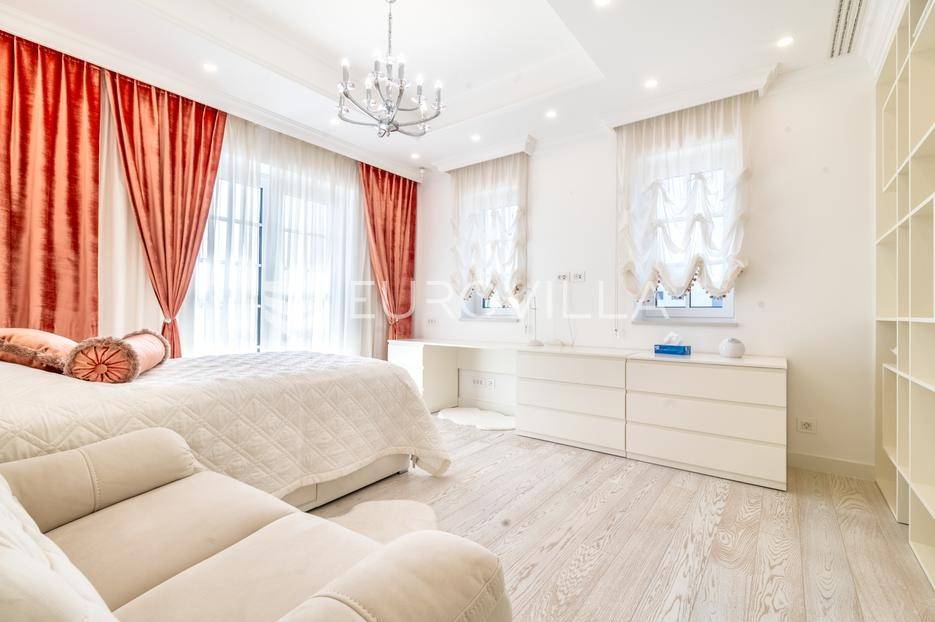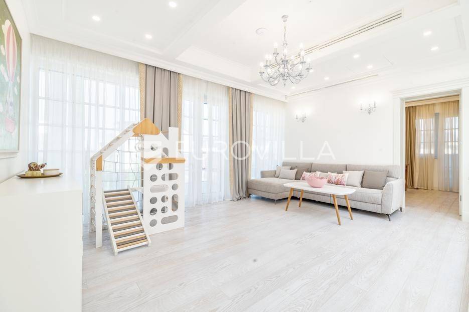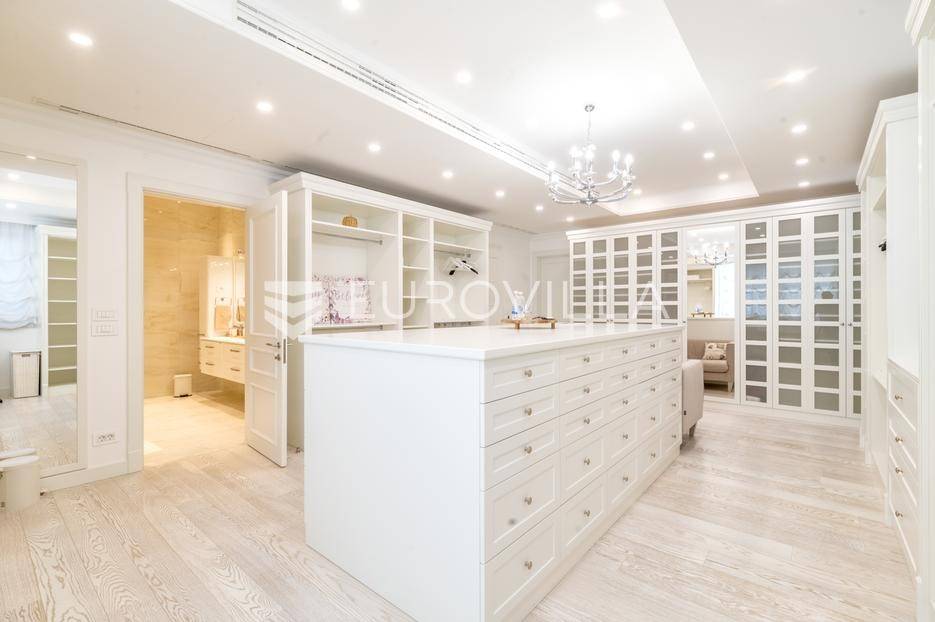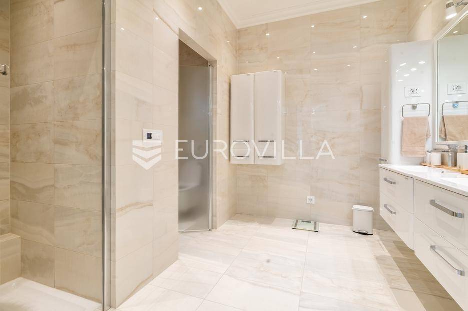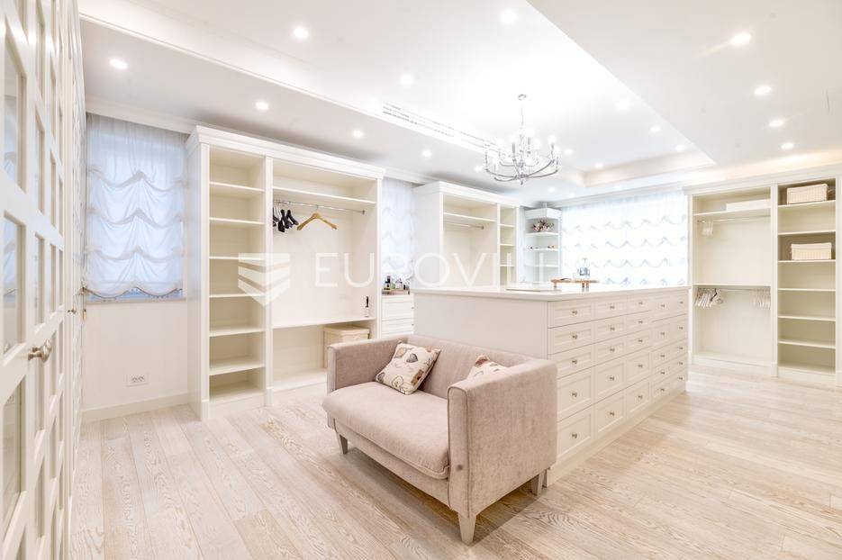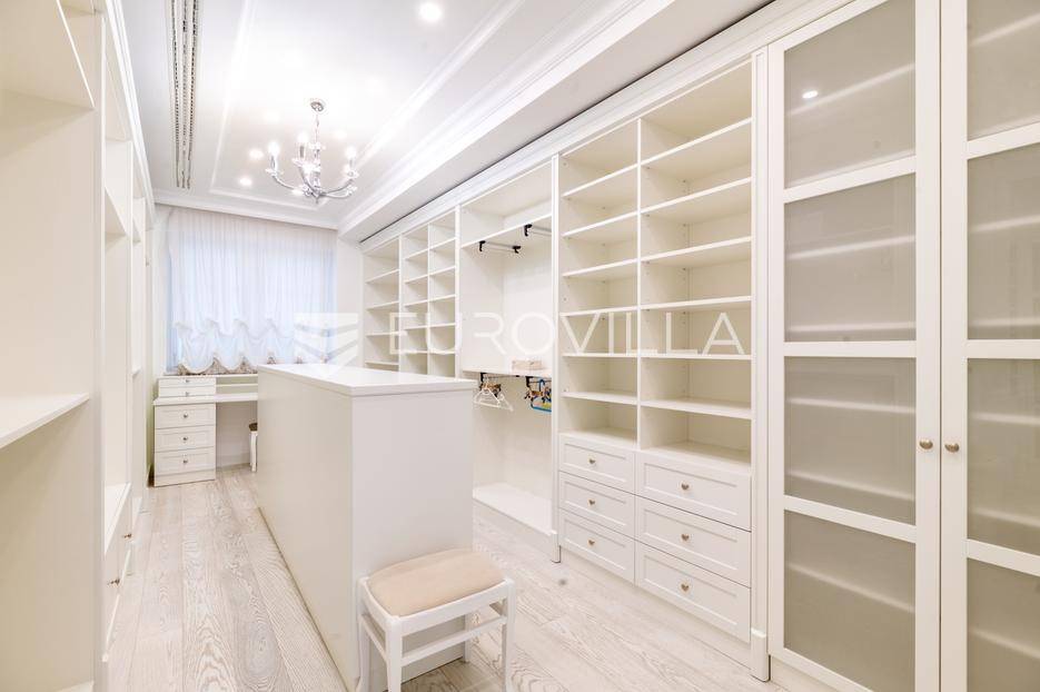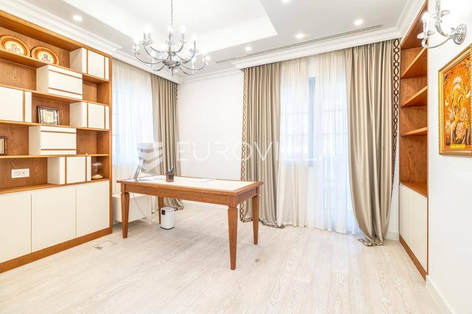 Novi Zagreb, Blato, jedinstvena lokaciji, luksuzna vila ukupne površine 1200 m2, novije gradnje iz 2020. godine s bazenom od 100 m2, uređenim dvorištem i okućnicom, ljetnom kuhinjom, dječjim igralištem, šetnicama i prekrasnim vrtom. U sklopu objekta se nalazi garaža za četiri vozila s toplim putem te mogućnost parkiranja više vozila na popločenom dijelu dvorišta.Vila je izgrađena na tri etaže, međusobno povezane unutarnjim stubištem, na parceli od 6.750 m2.Podrum: hodnik, spa prostor s unutarnjim bazenom, turskom i finskom saunom, slanom sobom i sobom za masažu, kino dvorana, vinoteka, konoba, tri sobe za osoblje s pripadajućim kupaonicama, kuhinja za osoblje, spremište. Etaža -1 ima direktan pristup prema dvorištu.Prizemlje: ulazni hodnik, prostorija za doček gostiju, prostrani dnevni boravak s izlazom na terasu i dvorište, blagovaonica, kuhinja s dodatnom blagovaonicom, tri garderobe, igraonica, kupaonica, gostinjski wc, predsoblje i stubište.Prvi kat: dodatni boravak, master soba s kupaonicom, dvije spavače s pripadajućim kupaonicama, dvije spavaće sobe s zajedničkom kupaonicom, teretana, gostinjski wc, natkrivena i nenatkrivena terasa.Vrhunska gradnja alu stolariju, troslojna stakla s električnim roletama, podno grijanje, armirano-betonska konstrukcija, energetski certifikat A, klimatizirane sve prostorije, ulazna ograda na daljinski i video nadzor.Svojim jedinstvenim položajem u neposrednoj blizini grada, vila osigurava mjesto idealno za življenje ali postoji mogućnost korištenja i kao rezidencija, ambasada, konzulat, ordinacija, klinika i sl. Nalazi se na vrlo atraktivnoj lokaciji u blizini javnog prijevoza i svih sadržaja potrebnih za kvalitetan i miran život.Za ostale informacije stojimo Vam na raspolaganju.... Više na eurovilla.hr, ID: 756388
