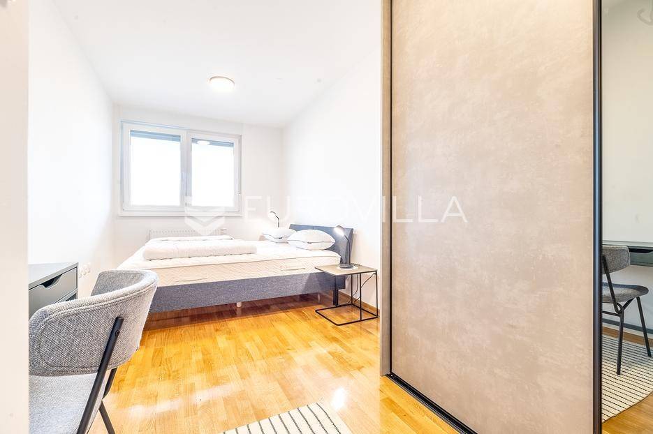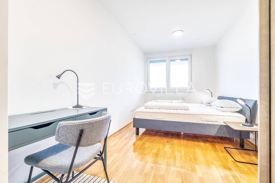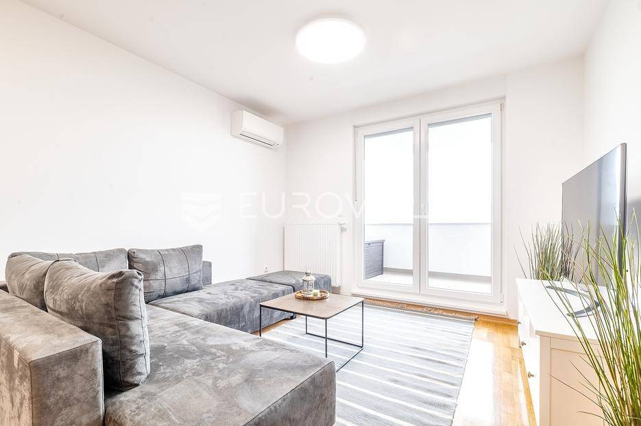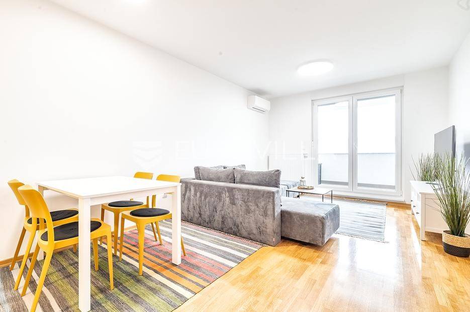 Špansko, prvi najam dvosoban stana zatvorene površine 50 m2 na šestom katu novoizgrađene stambene zgrade s liftom.Sastoji se od ulaznog hodnika s ugradbenim ormarom, kuhinje, blagovaonice, dnevnog boravka s izlaskom na loggiu 12.47 m2, spavaće sobe i kupaonice.Stan je opremljen s klima uređajem, perilicom rublja i posuđa, indukcijskom pločom, pećnicom, televizorom visoke rezolucije, usisivačem i posuđem.Orijentacija sjever.U neposrednoj blizini se nalazi javni gradski prijevoz, osnovna škola, srednja škola, ljekarna, dom zdravlja, trgovine.Za sve ostale informacije stojimo vam na raspolaganju.... Više na eurovilla.hr, ID: 761709