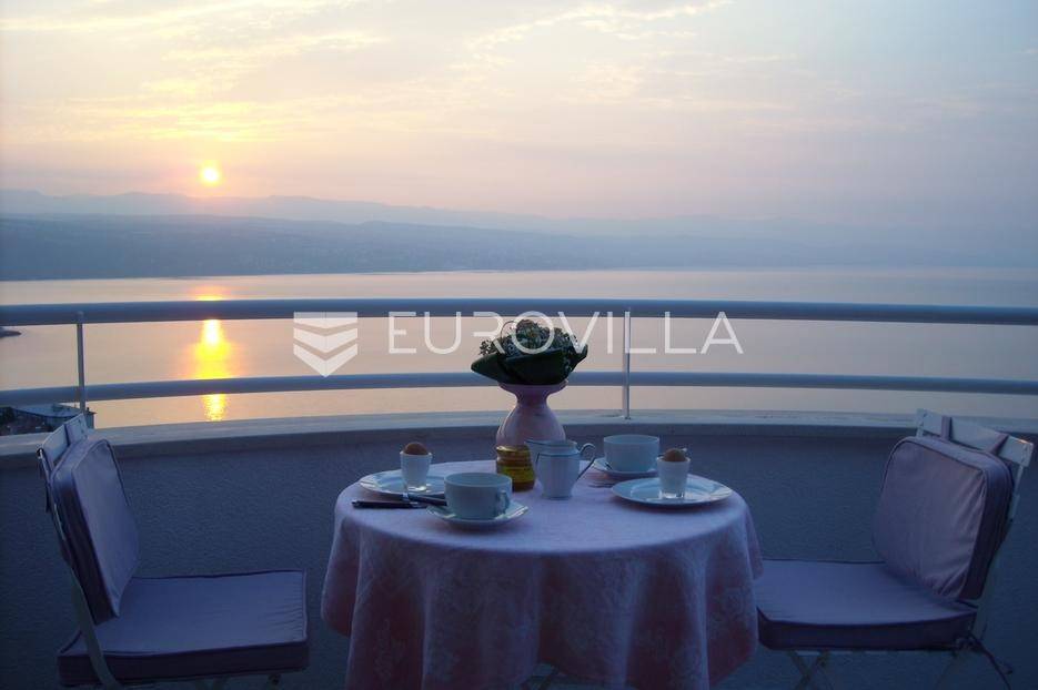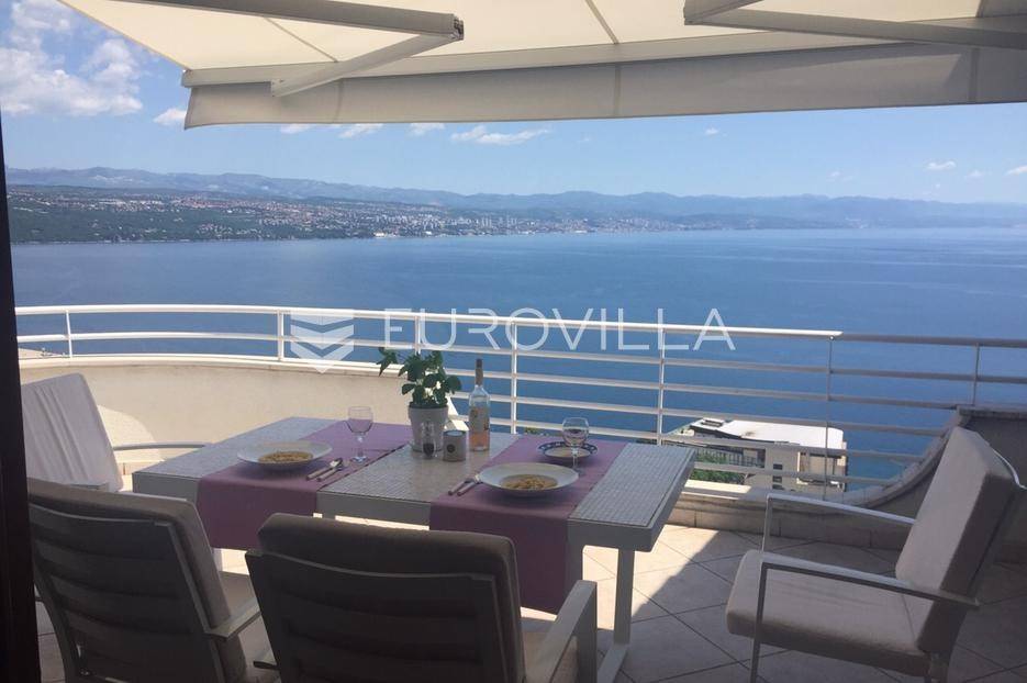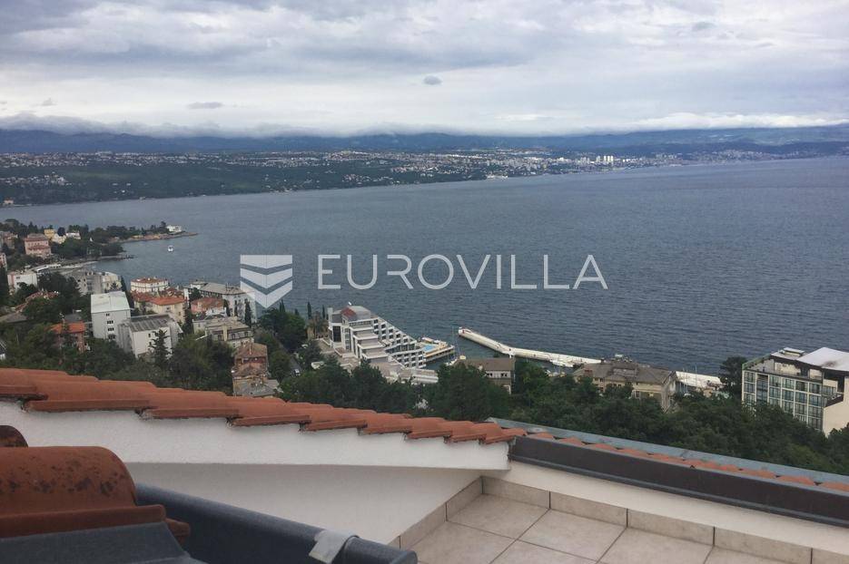 Opatija, četverosobni dvoetažni penthouse s panoramskim pogledom na more udaljen cca 650m lagane šetnje do plaže. Stan se nalazi na drugom katu, povezan unutrašnjim stepenicama s potkrovljem.Na drugom katu je veliki open space dnevni dio, 2 spavaće sobe, kupaonica, a u visokom potkrovlju 2 spavaće sobe, kupaonica i velik pred prostor.Grijanje je centralno na lož ulje, klime a u kupaonicama je podno grijanje na struju.Stanu pripada 101,78m2 terasa, balkona i vrta te jedno parkirno mjesto.Idealna investicija za veću obitelj ili za potrebe turističkog najma. Pogled je impresivan, cijeli Kvarner s otocima, gradovi Opatija i Rijeka te masivi Gorskog kotara kao da su na dohvat ruke, što je rijetkost u ponudi.... Više na eurovilla.hr, ID: 777754