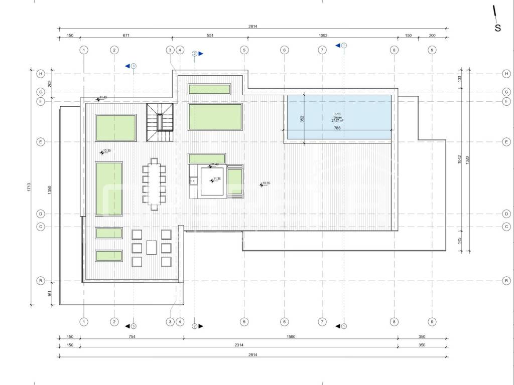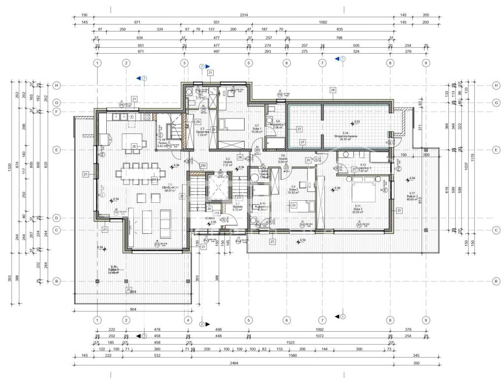 Apartment S5, with a total net usable area of 321.77 m, represents the pinnacle of contemporary luxury living. The enclosed living area of 189.20 m includes a private entrance staircase, entrance hall, three spacious bedrooms, three elegant bathrooms, a separate guest toilet, a large open-plan living room with dining area and kitchen, a walk-in wardrobe, storage room, and the pool machinery room. The layout has been carefully designed to ensure maximum functionality, privacy in the sleeping area, and an impressive main living space.