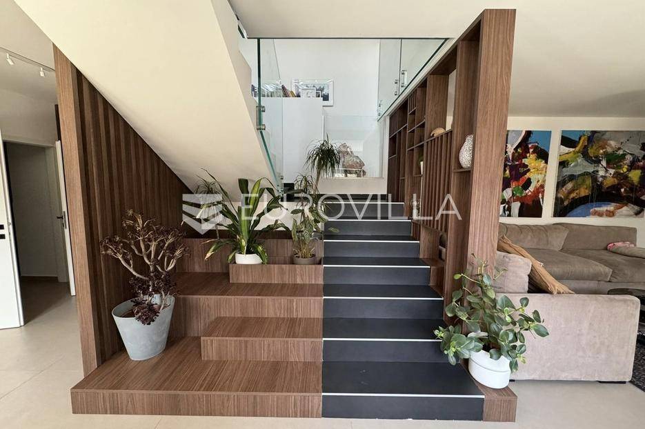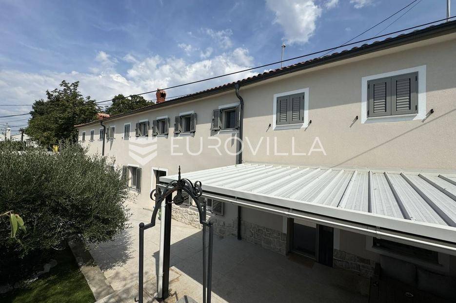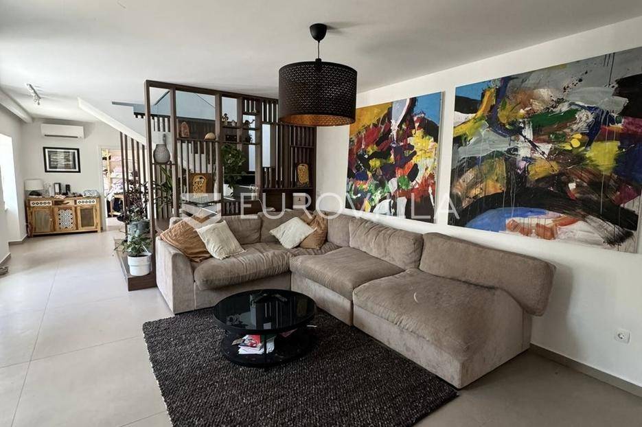 U mirnom i iznimno poželjnom naselju smještena je ova temeljito renovirana kuća 2022. godine, osmišljena kao vrhunski dom koji zadovoljava najviše standarde suvremenog stanovanja. Spoj elegancije, funkcionalnosti i privatnosti čini ovu nekretninu idealnim izborom za obiteljski život ili kao vrijednu dugoročnu investiciju.Kuća se prostire na 300 m² stambene površine, raspoređene na dvije etaže s pažljivo osmišljenim rasporedom prostora.Prizemlje kuće obuhvaća prostranu i moderno opremljenu kuhinju, ugodan dnevni boravak s puno prirodnog svjetla, kupaonicu, vešeraj, unutarnji prolaz koji vodi do konobe u sklopu kuće, opremljene kaminom i velikim stolom, idealne za obiteljska okupljanja i proslave.Kat kuće sastoji se od master spavaće sobe s vlastitom kupaonicom, dvije dodatne spavaće sobe, zajedničke kupaonice za dvije spavaće sobeZahvaljujući južnoj orijentaciji, svi prostori obilježeni su obiljem dnevnog svjetla i osjećajem prozračnosti.Posebna vrijednost ove nekretnine je činjenica da u kući ostaje sav vrhunski namještaj, pažljivo biran i usklađen s interijerom. Ugrađene su kvalitetne talijanske keramičke pločice, a iskoristivi ugradbeni ormari dodatno doprinose funkcionalnosti i urednosti prostora. Grijanje je u cijeloj kući podno.Vanjski dio nekretnine nudi uređeni vrt, ljetnu kuhinju te mogućnost izgradnje bazena, stvarajući savršeno okruženje za uživanje i opuštanje na otvorenom.Dodatne pogodnosti garaža, 3-4 vanjska parkirna mjesta, dodatna ostava, odvojeni poslovni prostor sa zapadne strane kuće, s vlastitim ulazom i parkirnim mjestom, idealan za ured, tihu djelatnost.Ova nekretnina predstavlja rijetku priliku na tržištu odmah useljiva, bez dodatnih ulaganja, namijenjena kupcima koji traže kvalitetu, mir i dugoročnu vrijednost.Za više informacija i dogovor oko razgledavanja, slobodno se javite.... Više na eurovilla.hr, ID: 793189