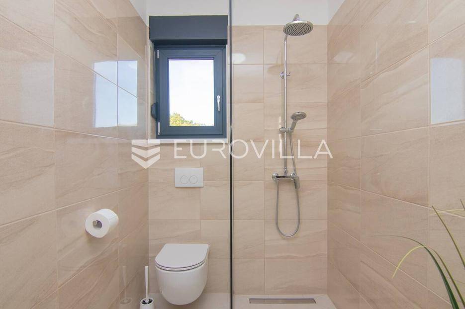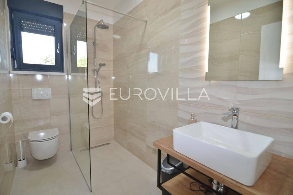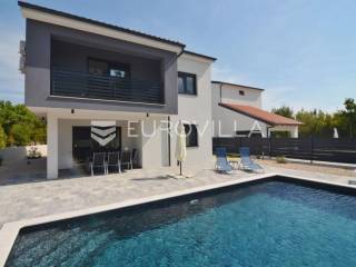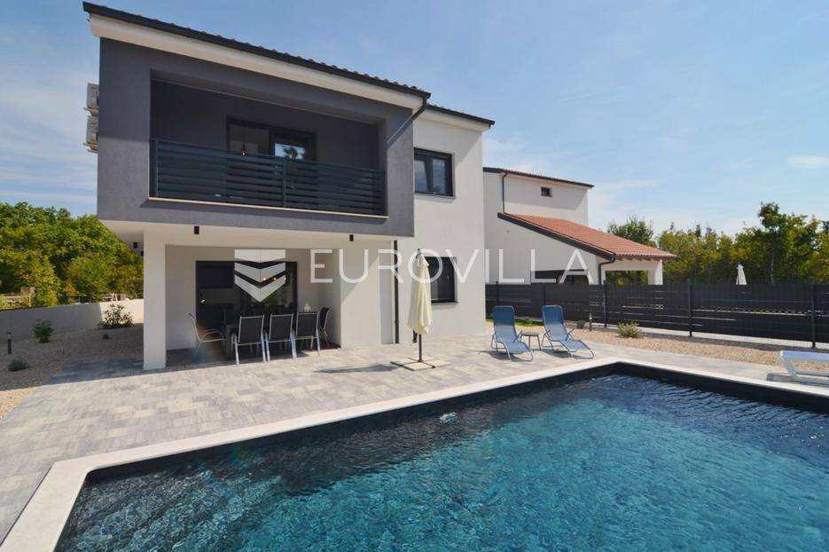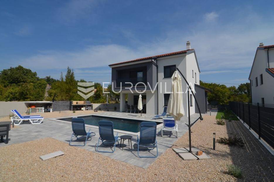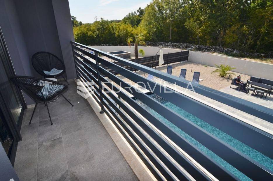 Prodaje se ekskluzivna novo opremljena vila s bazenom i uređenom okućnicom na otoku Krku u Gostinjcu.Vila površine 149,38 m2 sastoji od prizemlja s ulaznim prostorom, dnevnom sobom, kuhinjom, blagovaonicom, jednom spavaćom sobom, kupaonicom, spremištem i natkrivenom terasom površine 14,88 m2, sunčalištem i bazenom te prvog kata s tri spavaće sobe, tri kupaonice, stubištem, hodnikom i loggiom površine 5,25 m2.Visoka kvaliteta gradnje i opreme, klimatizacija, visokvalitetne podne obloge, moderan namještaj, ljetna kuhinja, SAT-TV, tri parkirna mjesta.Nalazi se na mirnoj lokaciji okružena zelenilom udaljena 5000 m od mora.Za ostale informacije slobodno nam se obratite.... Više na eurovilla.hr, ID: 809729
