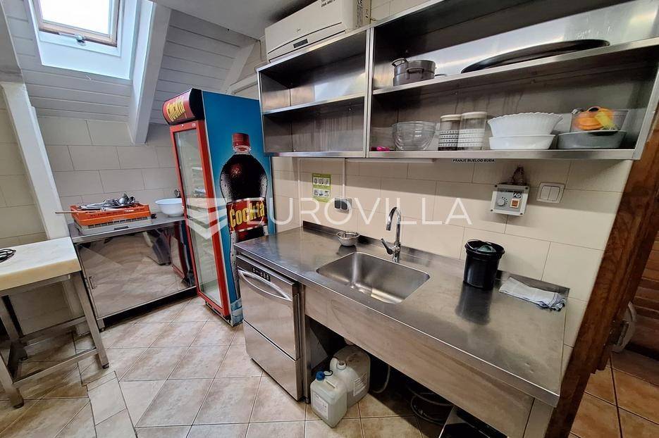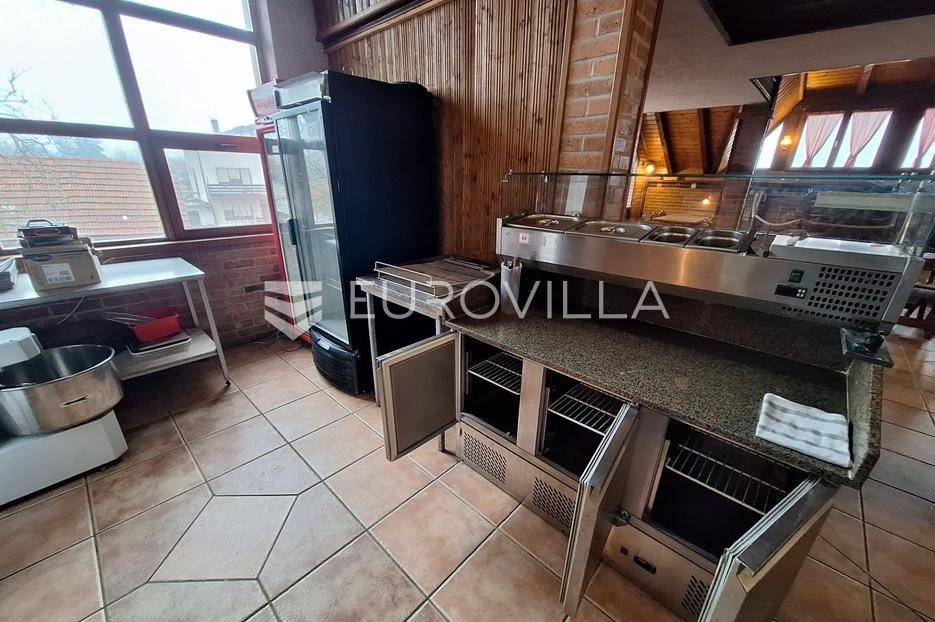 Karlovac, poslovni prostor, restoran 300 m2 na odličnoj lokaciji sa svim inventarom. Nalazi se na parceli 1082 m2.Novije gradnje, rustikalno uređen. Podno grijanje na drva, priključak za plin doveden do objekta, drvena stolarija, podne obloge keramika, krovni pokrov crijep, nova fasada.3 etaže. Sastoji se od 3 prostorije za posluživanje, kuhinje, spremišta, 4 sanitarna čvora, svlačionice s tušem, balkona, nenatkrivene i natkrivene terase.Ispred objekta parking za 40 automobila i dječje igralište.Dobra prometna povezanost i blizina centra grada.Za sva ostala pitanja stojim na raspolaganju.... Više na eurovilla.hr, ID: 878761