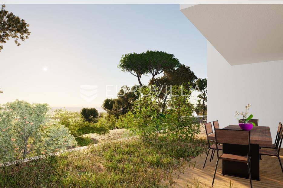 U mirnom i zelenilom okruženom dijelu Cresa smjestio se ovaj funkcionalan i moderno projektiran stan površine 87,82 m², koji će se nalaziti u vrhunskoj novogradnji čiji se završetak očekuje početak 2027. godine.Stan se sastoji od otvorenog dnevnog prostora koji uključuje kuhinju, blagovaonicu i dnevni boravak, dvije udobne spavaće sobe, kupaonice i hodnika. Iz dnevnog prostora izlazi se na natkrivenu terasu površine 9,97 m², idealnu za uživanje u pogledu na more.Posebnu vrijednost ovom stanu daje prostrana okućnica od čak 103,82 m², savršena za vrt, odmor ili druženje na otvorenom. Stanu također pripada spremište u podrumu i parkirno mjesto od 26,09 m².Zgrada će biti opremljena prema visokim standardima - podno grijanje, klimatizacija, solarni paneli i PVC stolarijajamče udobnost i energetsku učinkovitost tijekom cijele godine.Ova nekretnina idealna je za one koji traže moderan stan s vanjskim prostorom, bilo za život, odmor ili pametnu investiciju na Jadranu.Za više informacija i dogovor oko razgledavanja, slobodno nas kontaktirajte!... Više na eurovilla.hr, ID: 888405