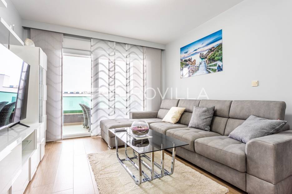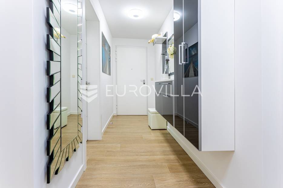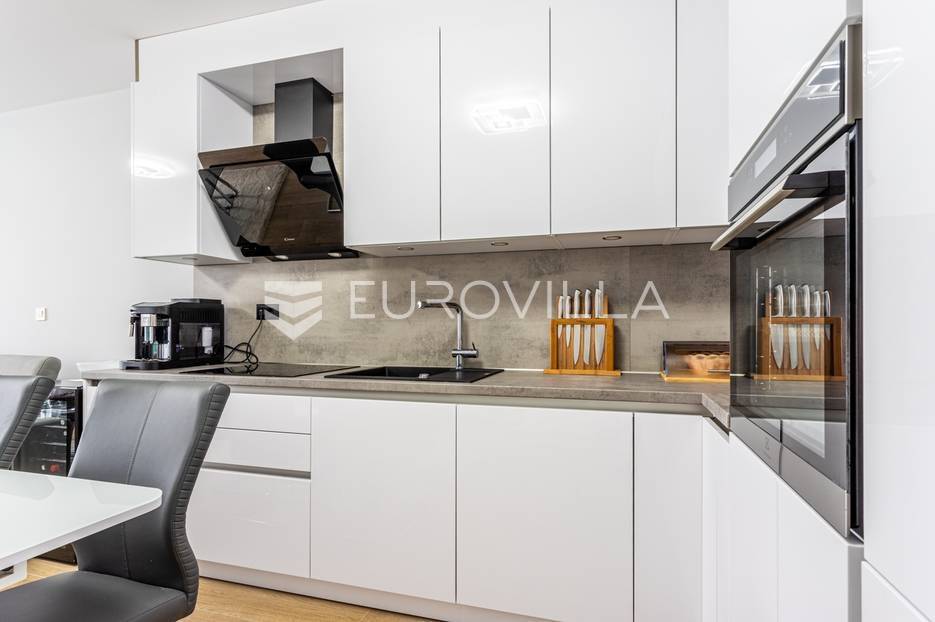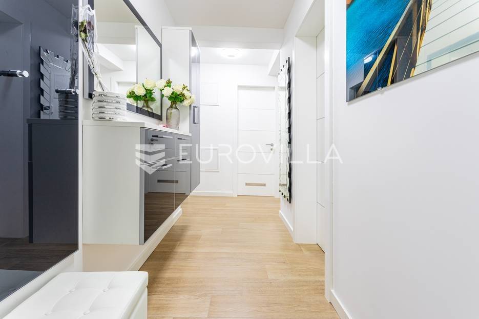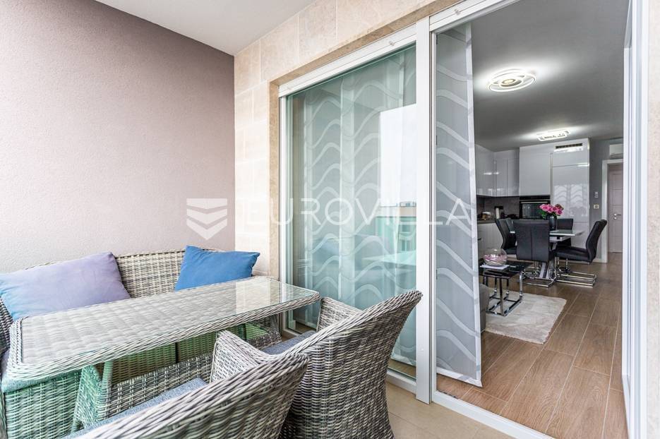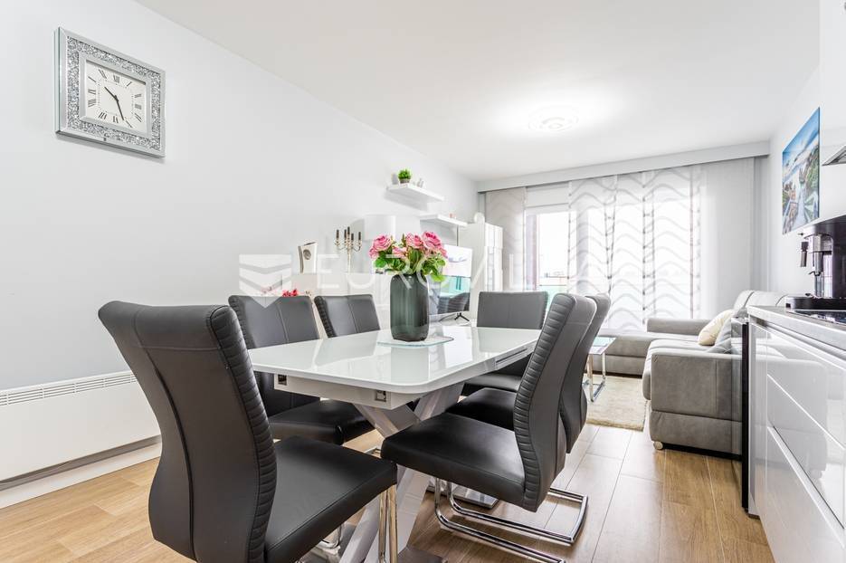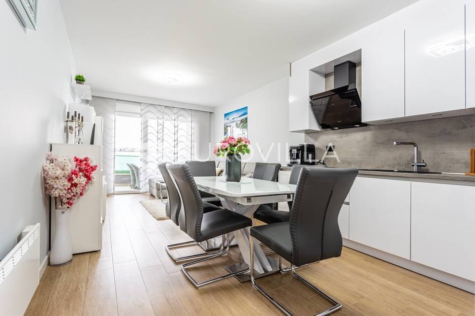 Makarska, trosoban stan od 64 m2 koji se nalazi na 700 m od mora s krasnim pogledom na more.Stan se nalazi na trećem katu zgrade koja ima ugrađen lift, na odličnoj lokaciji u naseljenom dijelu grada Makarske. Od plaže je udaljen 700 metara, a prometna povezanost je izvrsna, na zapadnom ulazu u grad.Stanu pripada i vanjsko nenatkriveno parkirno mjesto.Trosoban stan na trećem katu zgrade s liftom, u naravi se sastoji od dvije spavaće sobe, hodnika-predsoblja, kupaonice, dnevnog boravka, kuhinje s blagovaonicom, te lođom na jugu. Stambena površina je 64,24 m2, od čega se na zatvoreni stambeni prostor odnosi 57,52 m2, lođa je veličine 6,72 m2, a vanjsko parkirno mjesto 10,12 m2- ukupno neto korisna površina 64,58 m2.Orijentacija stana je jug-sjever; dnevni boravak, kuhinja i lođa s koje seže krasan pogled na more su na jugu, dok su spavaće sobe na sjeveru.Zgrada je izgrađena po visokim standardima, odlična toplinska i zvučna izolacija, etixx fasada od staklene vune, Kone dizalo, kovana ograda na stepeništu, klima jedinice na krovištu, uređen okoliš i parking oko objekte.Blindo protuprovalna vrata, kao i sva ostala vrata, su u bijeloj boji, vanjski zatvori su troslojni PVC s automatiziranim roletama na struju, na lođi je djelomično staklena ograda što pruža ljepši pogled i više svjetla. Svaka prostorija je klimatizirana, (Panasonic), te je postavljeno dodatno grijanje u kupaonici i dnevnom boravku, walk-in tuš i kvalitetan kupaonski program.Namješten i opremljen visokokvalitetnim namještajem u modernom stilu, dizajnerski dotjerana i opremljena kvalitetnim namještajem. Nobel kuhinja od poda do stropa, ublaživači s auto zatvaranjem pretinaca, ugradbeni aparati Electrolux, stol i stolice Novel, kutni kauč na razvlačenje, kompletan namještaj je visoki sjaj. Sobe su klimatizirane i potpuno opremljene, Boxspring kreveti Malagić s madracima visine 32 cm, garderobni ormari.Stan je potpunosti namješten i opremljen i kao takav se prodaje i nije bio u funkciji najma.Prilika za investiciju u turizmu, isplativa investicija s obzirom na to da ne zahtijeva nikakvo dodatno ulaganje već se može početi s iznajmljivanjem.Novogradnja, zgrada izgrađena 2021.g., a stan je potpuno novo namješten.Nova cijena stana je 338.000 EUR, s uključenimvanjskim parkirnim mjestom.Za sve dodatne informacije i upite stojimo Vam na raspolaganju.... Više na eurovilla.hr, ID: 897021