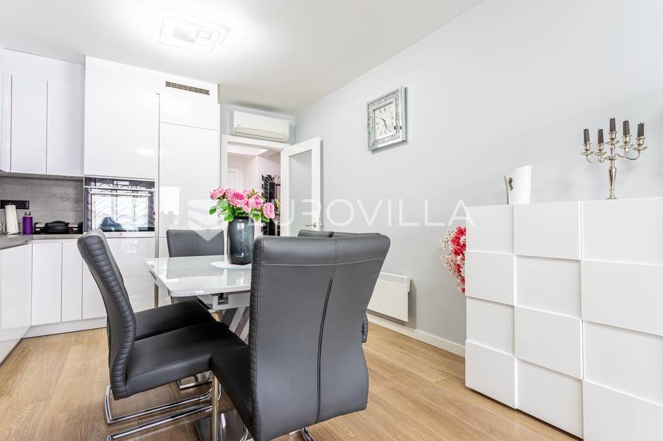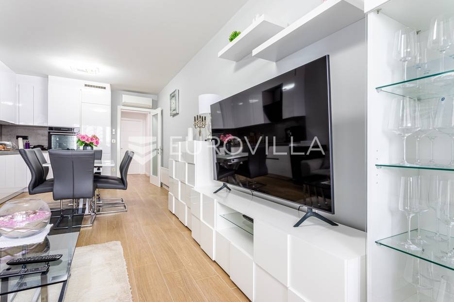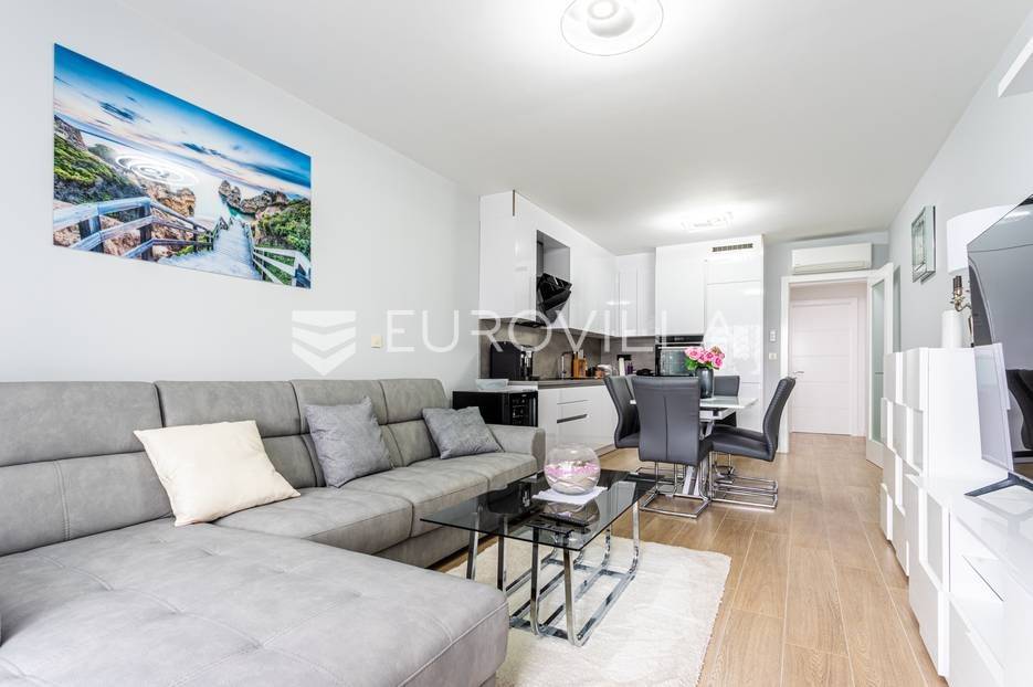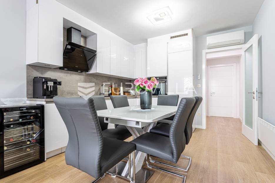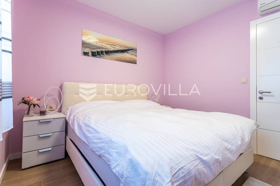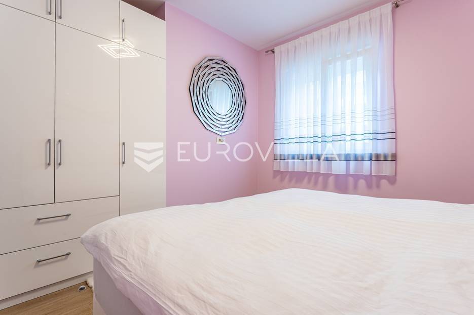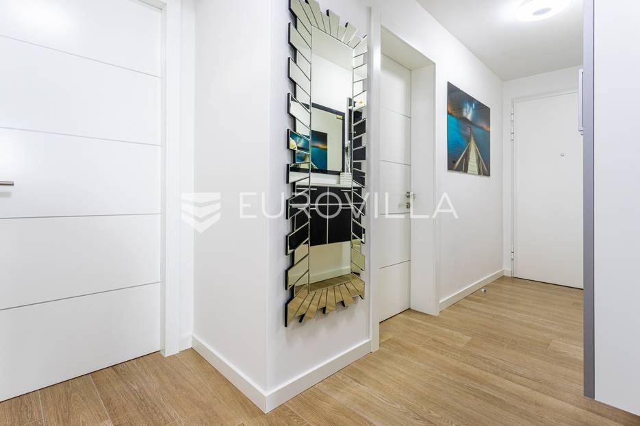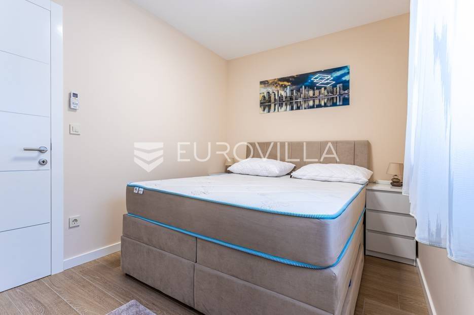 Makarska, trosoban stan od 64 m2 koji se nalazi na 700 m od mora s krasnim pogledom na more.Stan se nalazi na trećem katu zgrade koja ima ugrađen lift, na odličnoj lokaciji u naseljenom dijelu grada Makarske. Od plaže je udaljen 700 metara, a prometna povezanost je izvrsna, na zapadnom ulazu u grad.Stanu pripada i vanjsko nenatkriveno parkirno mjesto.Trosoban stan na trećem katu zgrade s liftom, u naravi se sastoji od dvije spavaće sobe, hodnika-predsoblja, kupaonice, dnevnog boravka, kuhinje s blagovaonicom, te lođom na jugu. Stambena površina je 64,24 m2, od čega se na zatvoreni stambeni prostor odnosi 57,52 m2, lođa je veličine 6,72 m2, a vanjsko parkirno mjesto 10,12 m2- ukupno neto korisna površina 64,58 m2.Orijentacija stana je jug-sjever; dnevni boravak, kuhinja i lođa s koje seže krasan pogled na more su na jugu, dok su spavaće sobe na sjeveru.Zgrada je izgrađena po visokim standardima, odlična toplinska i zvučna izolacija, etixx fasada od staklene vune, Kone dizalo, kovana ograda na stepeništu, klima jedinice na krovištu, uređen okoliš i parking oko objekte.Blindo protuprovalna vrata, kao i sva ostala vrata, su u bijeloj boji, vanjski zatvori su troslojni PVC s automatiziranim roletama na struju, na lođi je djelomično staklena ograda što pruža ljepši pogled i više svjetla. Svaka prostorija je klimatizirana, (Panasonic), te je postavljeno dodatno grijanje u kupaonici i dnevnom boravku, walk-in tuš i kvalitetan kupaonski program.Namješten i opremljen visokokvalitetnim namještajem u modernom stilu, dizajnerski dotjerana i opremljena kvalitetnim namještajem. Nobel kuhinja od poda do stropa, ublaživači s auto zatvaranjem pretinaca, ugradbeni aparati Electrolux, stol i stolice Novel, kutni kauč na razvlačenje, kompletan namještaj je visoki sjaj. Sobe su klimatizirane i potpuno opremljene, Boxspring kreveti Malagić s madracima visine 32 cm, garderobni ormari.Stan je potpunosti namješten i opremljen i kao takav se prodaje i nije bio u funkciji najma.Prilika za investiciju u turizmu, isplativa investicija s obzirom na to da ne zahtijeva nikakvo dodatno ulaganje već se može početi s iznajmljivanjem.Novogradnja, zgrada izgrađena 2021.g., a stan je potpuno novo namješten.Nova cijena stana je 338.000 EUR, s uključenimvanjskim parkirnim mjestom.Za sve dodatne informacije i upite stojimo Vam na raspolaganju.... Više na eurovilla.hr, ID: 897021