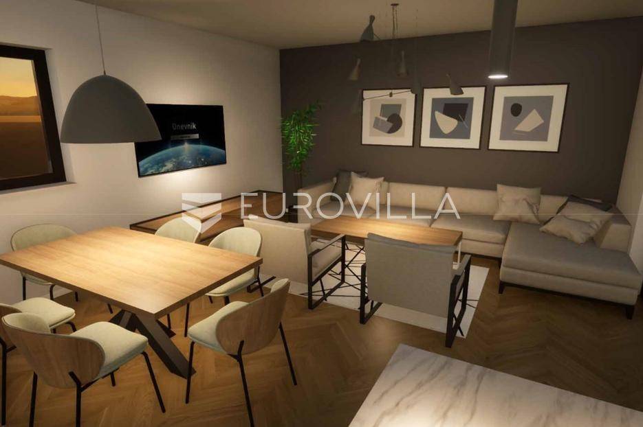 Zagreb, Maksimir, trosoban penthouse na drugom katu novogradnje s ukupno 4 stana i privatnim parkirnim mjestom, smješten u mirnom okruženju prirode.Stan S4 nalazi se na drugom katu zgrade B, te se sastoji od ulaznog hodnika, dnevnog boravka s kuhinjom i blagovaonicom te izlazom na terasu 27,78 m² (obračunski 6,95 m²), dvije spavaće sobe i dvije kupaonice. Ukupna zatvorena površina stana iznosi 70,62 m².Stanu pripada vanjsko parkirno mjesto površine 12,50 m² (obračunski 3,12 m²) te spremište 2,66 m² (obračunski 1,33 m²), oba uključena u cijenu stana. Obavezna je kupnja garažnog parkirnog mjesta po cijeni od 45.000 EUR.Ukupna površina stana iznosi 82,02 m².Novogradnja je vrhunski građena:armiranobetonska konstrukcijatermoizolacijska fasada (ETICS sustav)aluminijska stolarija s troslojnim izo-staklom i aluminijskim roletamadizalice topline zrak-voda (grijanje i priprema tople vode)podno grijanjeravni krov, moderni materijali i kvalitetna završna obradalifthortikulturno uređen okolišprojekt obuhvaća četiri zgrade s ukupno 16 stanova.Odlična mikrolokacija u zelenom dijelu Maksimira osigurava mir i privatnost, a ujedno nudi dobru povezanost s gradom. U blizini se nalaze svi osnovni sadržaji za ugodan život.Useljivo ljeto 2027. godine.Za sve dodatne informacije stojimo Vam na raspolaganju.... Više na eurovilla.hr, ID: 942759
