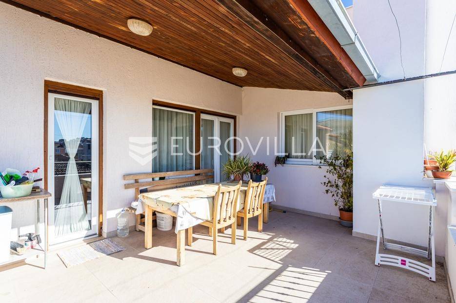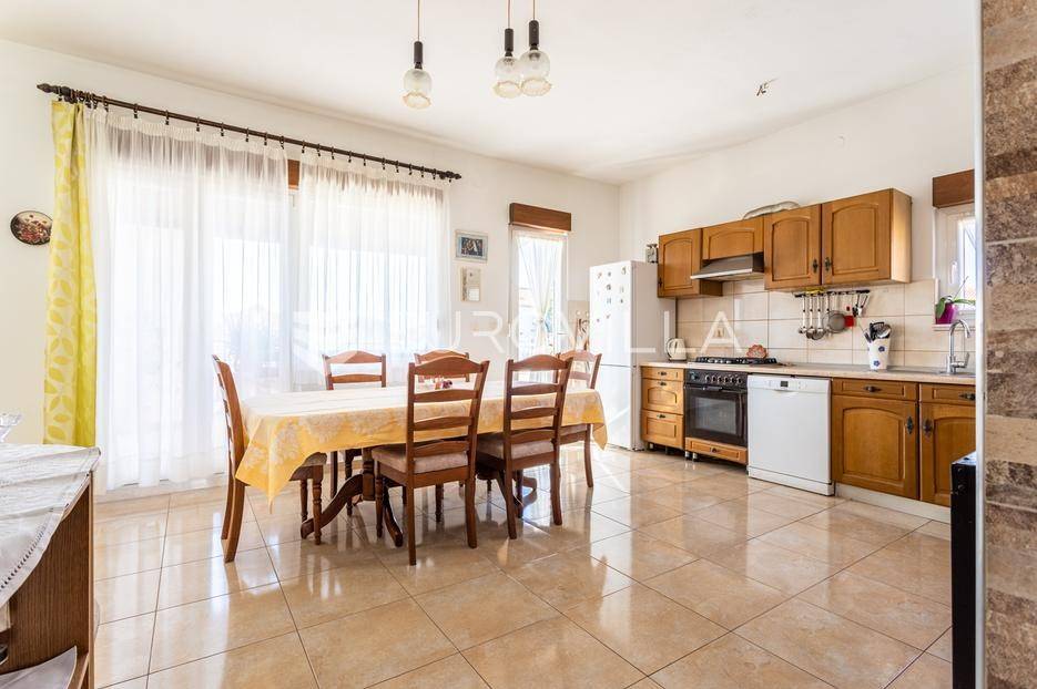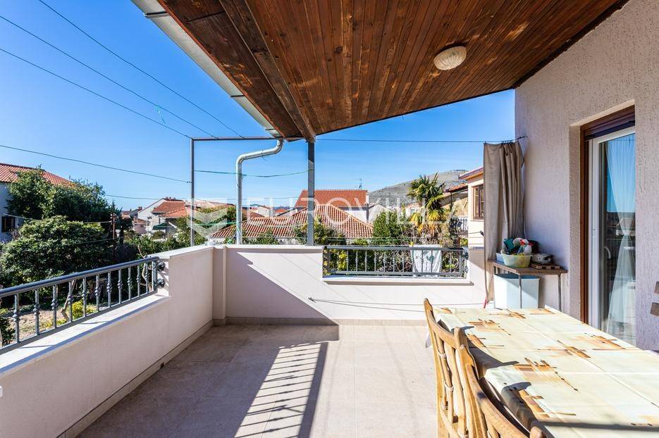 Trogir, širi centar grada, prostran stan s četiri spavaće sobe idealan za smještaj radnika. Stan površine 135 m2, u naravi cijela etaža obiteljske kuće, sastoji se od hodnika, kupaonice, WC-a, četiri spavaće sobe i dnevnog dijela (kuhinja, blagovaonica i dnevni boravak) s izlazom na terasu.Režije su uključene u cijenu.Par minuta hoda od centra Trogira.Više informacija na upit.... Više na eurovilla.hr, ID: 953841
