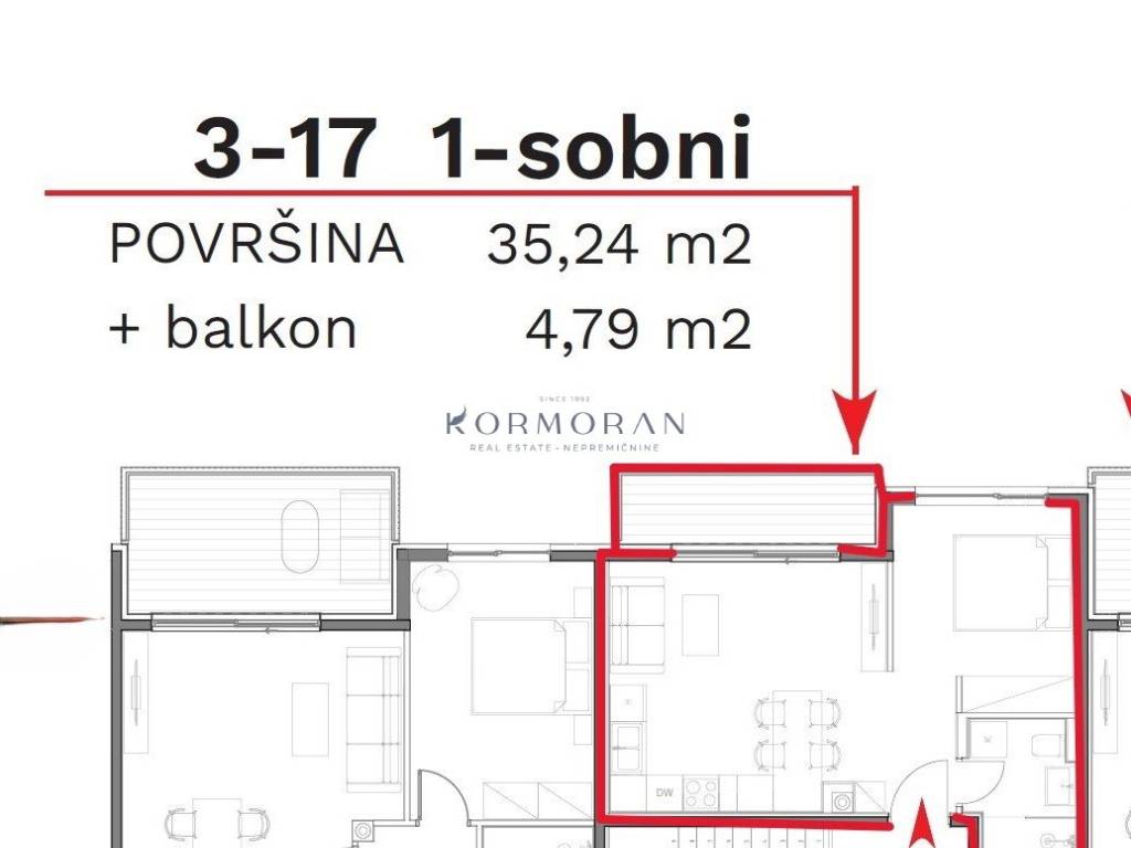 The apartment features a modern design and functional layout, oriented to the north. The spacious living room with access to a balcony of 4.79 m2 provides a comfortable place for relaxation and enjoying the view. The bedroom offers the comfort needed for everyday living.