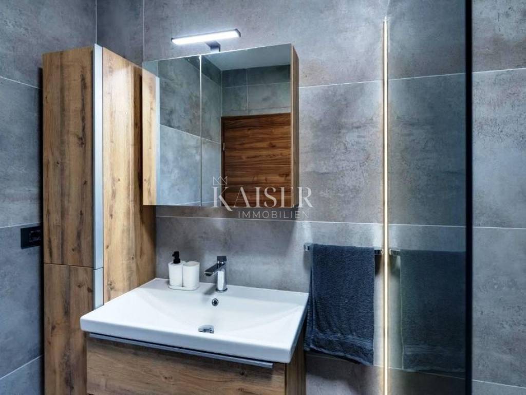 The properties, in nature two identical semi-detached houses 150m2 + 150m2, a total of 300m2 of living space, are divided into two floors, ground floor and first floor. Each house functions as a separate building with separate entrances, meters and consumers. On the ground floor of each house there is a kitchen which, together with the dining room and living room, represents a beautiful open space concept with access to a terrace with a spectacular view of the sea and Northern Velebit. In addition to the above rooms, on the ground floor of each house there is also a toilet and laundry room.