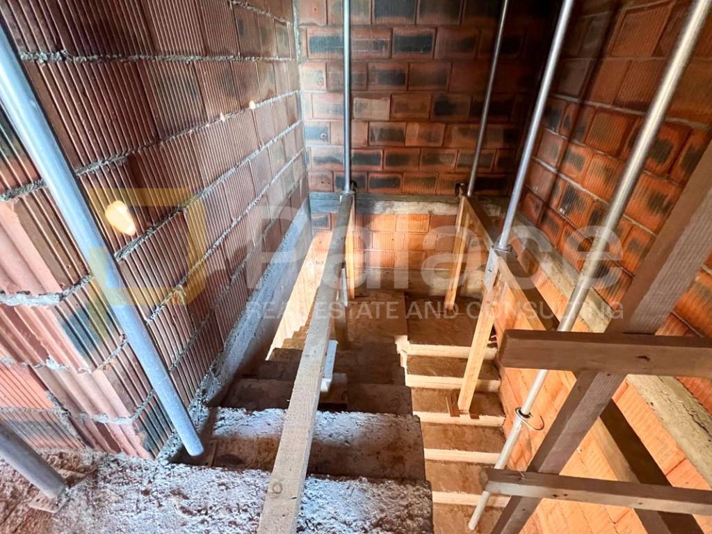 The house consists of a ground floor + first floor with a garage and a small yard. On the ground floor, you will find a spacious living room with a kitchen and dining area, a closed terrace, a hallway, an additional room, a bathroom, a storage room, and a boiler room. The first floor includes the main bedroom, two children's rooms, and two bathrooms (or the option to convert one bathroom into a walk-in closet).