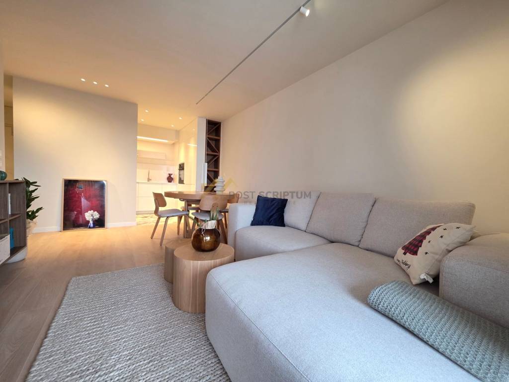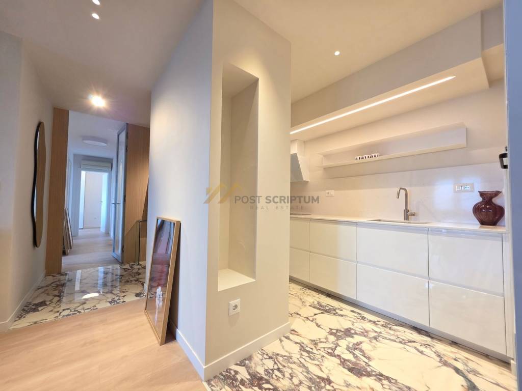 Pujanke, potpuno renoviran trosoban stan površine 85,00 m2 položen na četvrtom katu stambene zgrade s liftom, cijeli južne orijentacije.