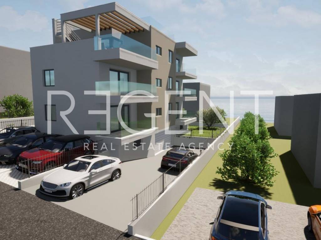 Apartment S1 is located on the ground floor, in an excellent location in a quiet part of Okrug Gornji. The apartment is located in a new building and is ideal for families, couples or as an investment for tourist rental. The apartment has a total net area of 57 m², and consists of a hallway, two bedrooms, a bathroom, a kitchen with a dining room and a living room, and a covered balcony of 11 m². It is equipped with PVC joinery, air conditioning and ceramic floors. Each room offers enough natural light, and the balcony allows you to stay outdoors for most of the year. The property is located in an extremely attractive location, just 50 meters from the sea, with a partial sea view and excellent transport links. All important amenities such as shops, schools, parks and public transport are within walking distance. The building is under construction (excavation has begun), and the completion of works is expected in 12 to 14 months. Moving in is possible immediately after completion. Payment is possible in construction phases, with flexible terms. For more information or to arrange a viewing, feel free to contact us.