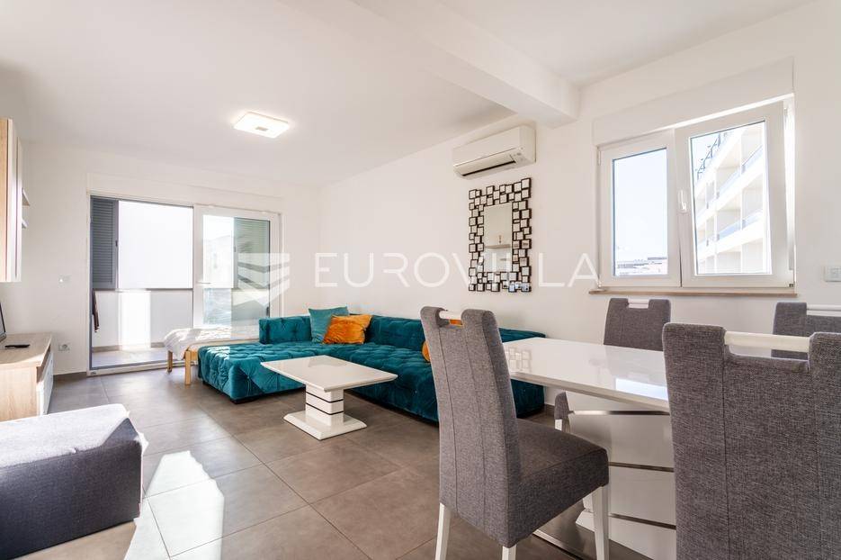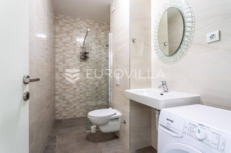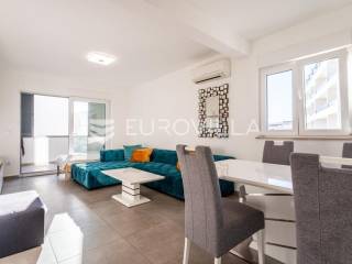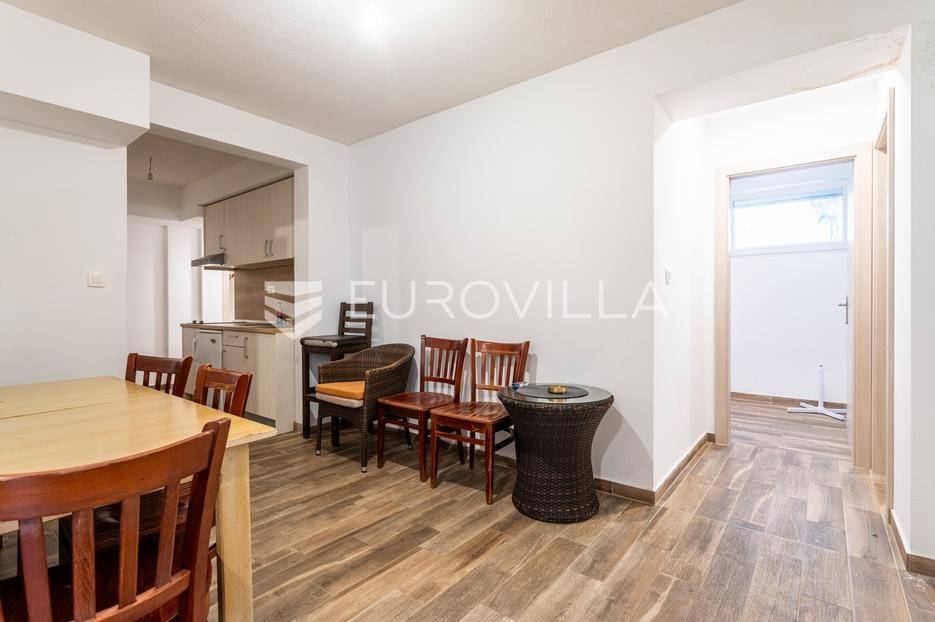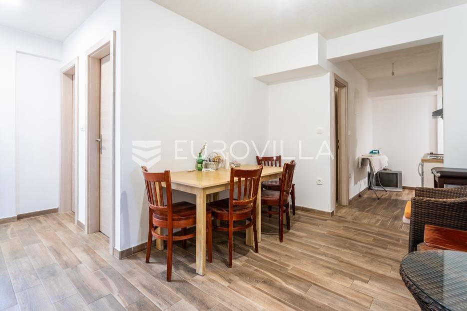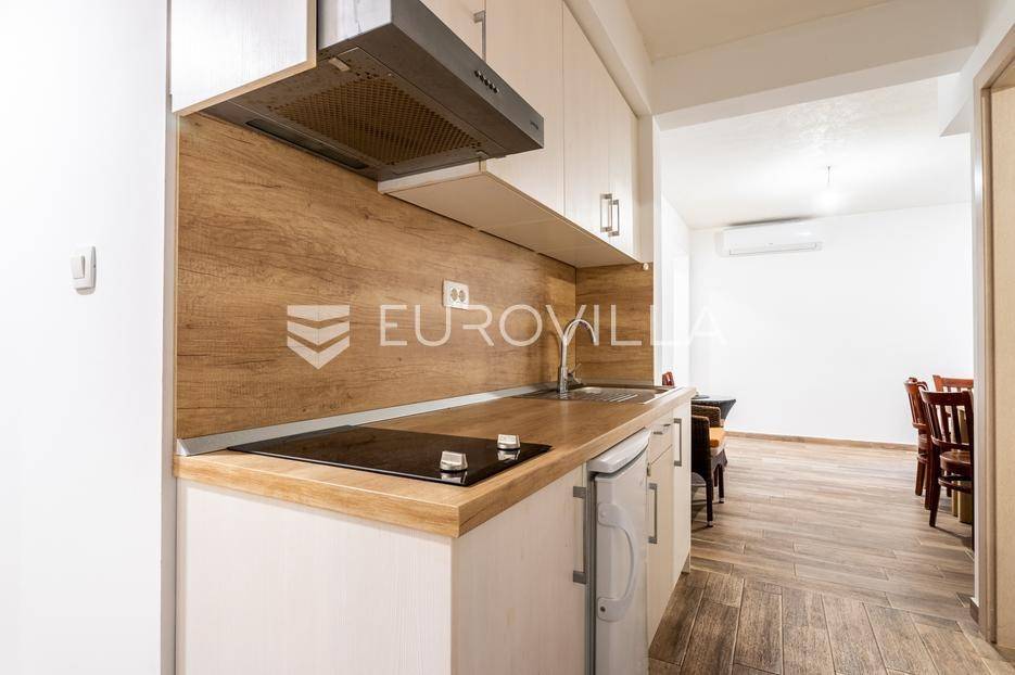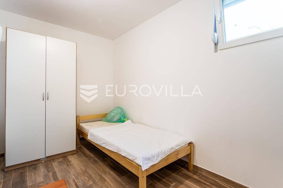 Makarska, dvosoban stan na prvom katu zgrade uz koji pripada dodatno jedinica za najam u suterenu.Stan na prvom katu ima 59.83 m2 zatvorene stambene površine. Sastoji se od dvije spavaće sobe, hodnika, kupaonice, kuhinje, blagovaonice i dnevnog boravka. Iz dnevnog boravka se izlazi na balkon površine 8.98 m2, a iz jedne spavaće sobe se izlazi na lođu površine 3.58 m2.Jedinica u suterenu koja ima ukupno 83.26 m2 trenutno je namještena za smještaj radnika. Sastoji se od hodnika, pet spavaćih soba, kupaonice s tri umivaonika i dva odvojena tuša, dva dodatna wc-a, kuhinje i dnevnog boravka s blagovaonicom.U cijenu stana uključeno je i jedno garažno parkirno mjesto i dva vanjska nenatkrivena parking mjesta.Oprema: klima uređaji u dnevnom boravku stana na prvom katu i u dnevnom boravku stana u suterenu, električne rolete i PVC stolarija.Zgrada se nalazi u mirnom dijelu grada, 870 metara od mora i prekrasnih plaža. Omogućen je jednostavan pristup centru grada i svim potrebnim sadržajima.Za više informacija, stojimo vam na raspolaganju.... Više na eurovilla.hr, ID: 749735