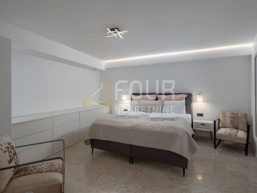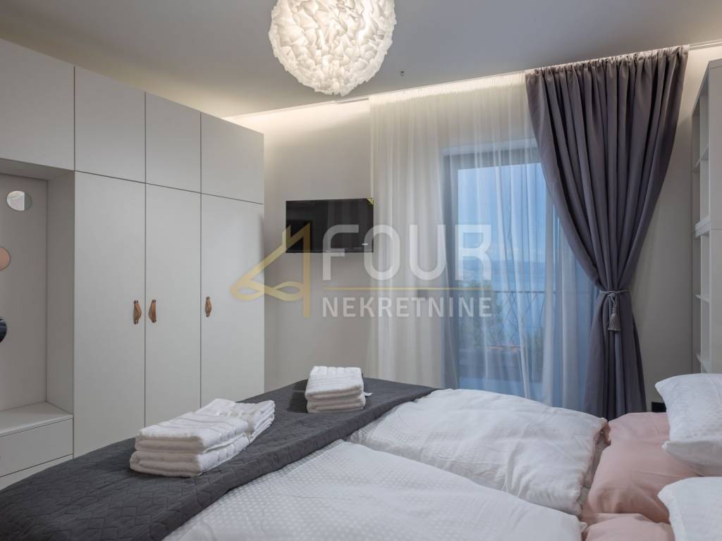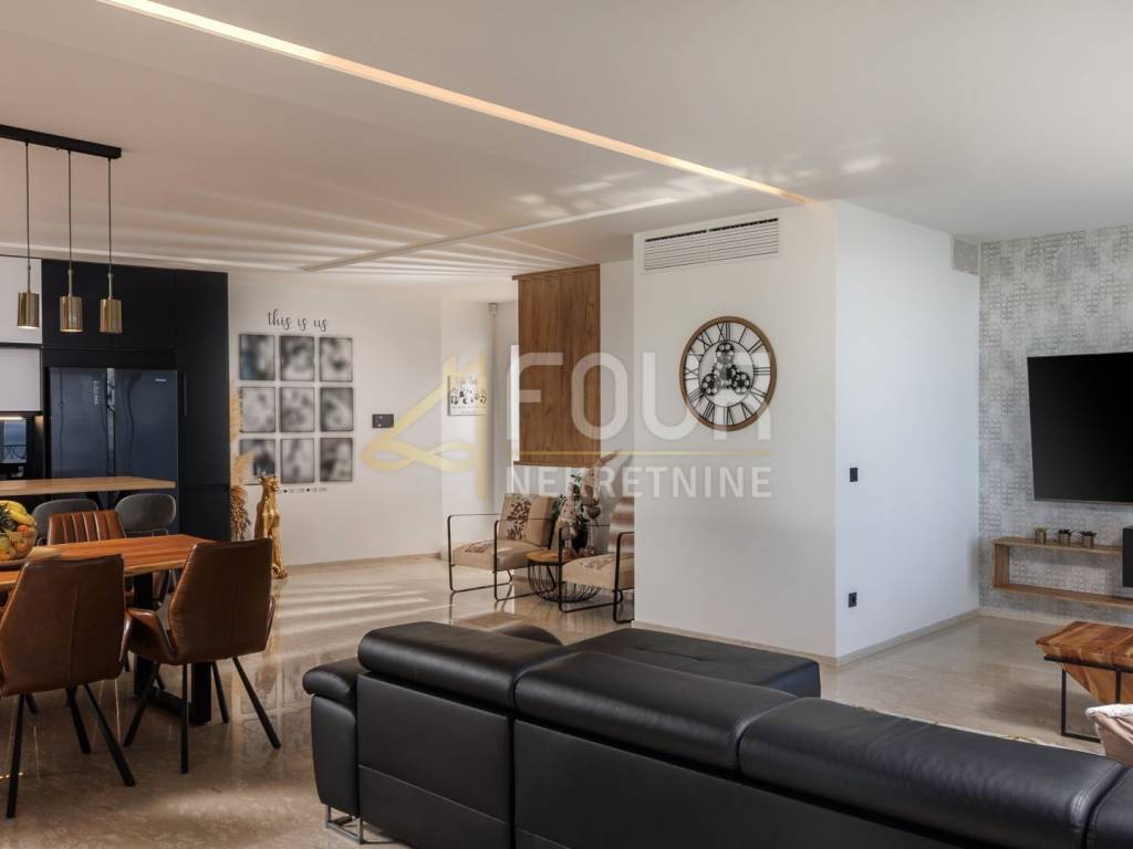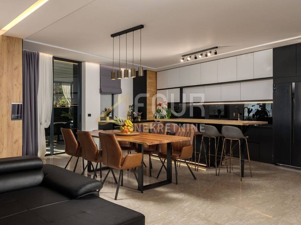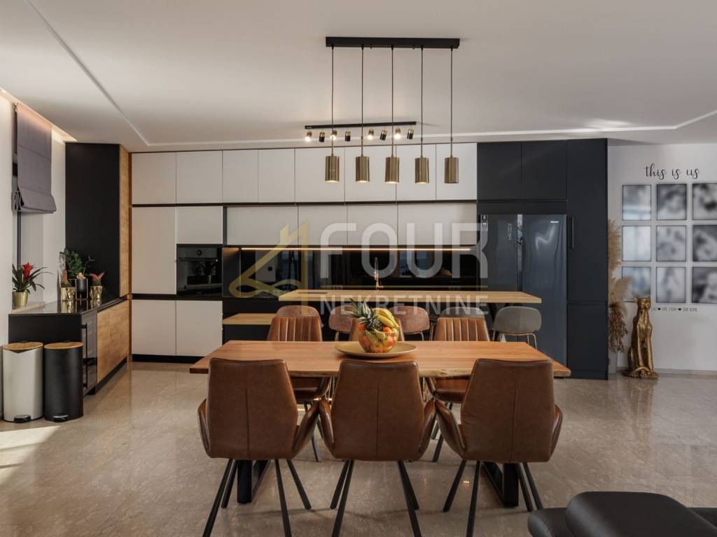 Just 350 meters from the sea, there is a luxurious two-story apartment in a modern new building from 2023 that offers a top level of comfort, privacy, and elegance. With a total area of 294.64 m2 including all associated rooms, this impressive 4 bedroom + living room + dining room apartment extends over two floors and has a separate entrance, its own courtyard and driveway, ensuring complete privacy for future owners.