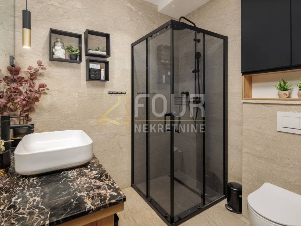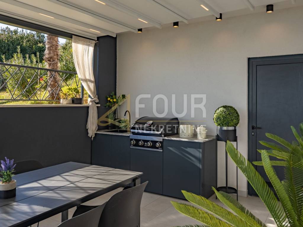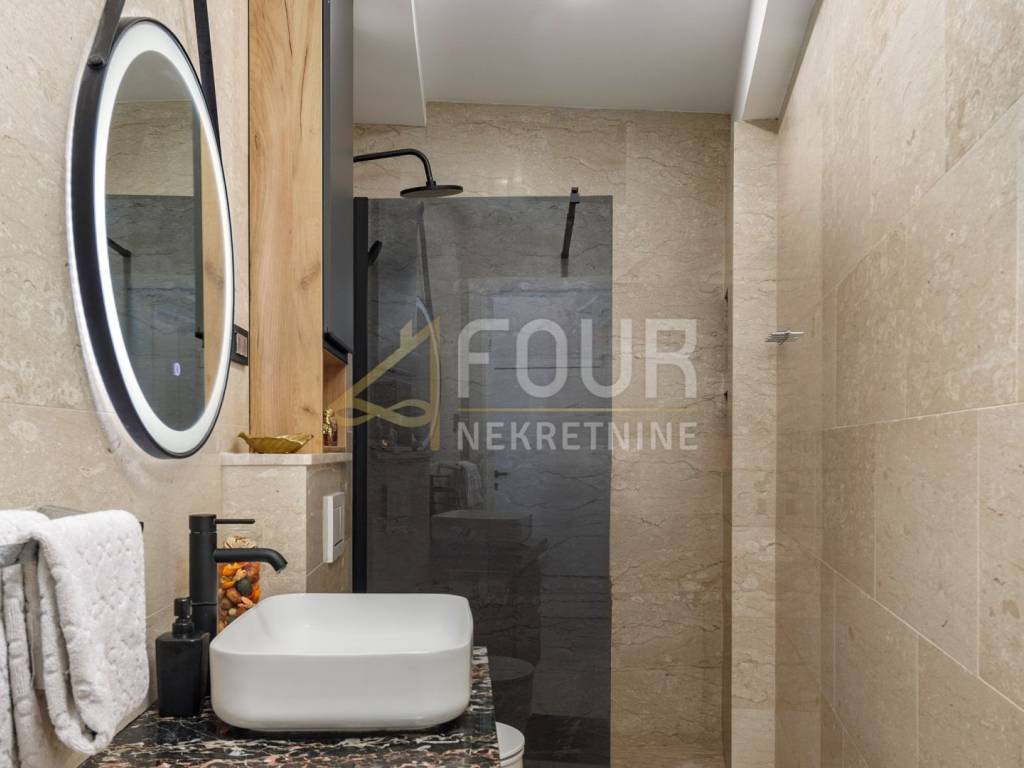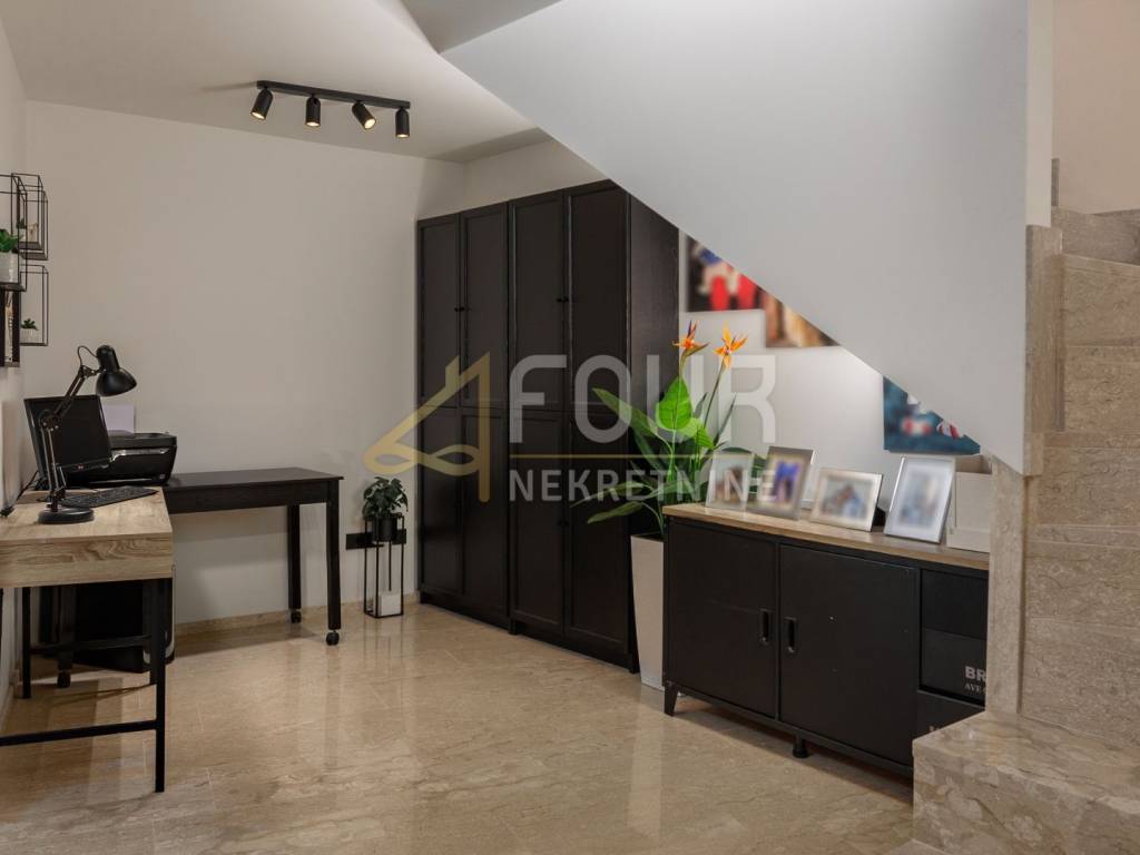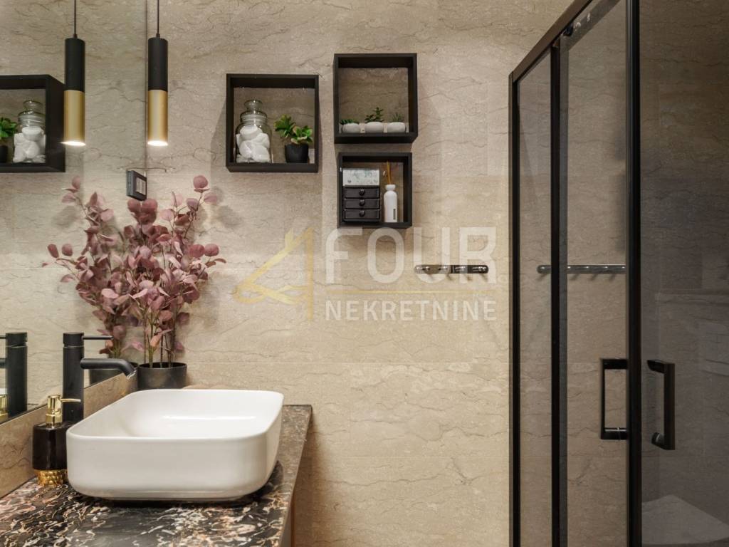 Just 350 meters from the sea, there is a luxurious two-story apartment in a modern new building from 2023 that offers a top level of comfort, privacy, and elegance. With a total area of 294.64 m2 including all associated rooms, this impressive 4 bedroom + living room + dining room apartment extends over two floors and has a separate entrance, its own courtyard and driveway, ensuring complete privacy for future owners.