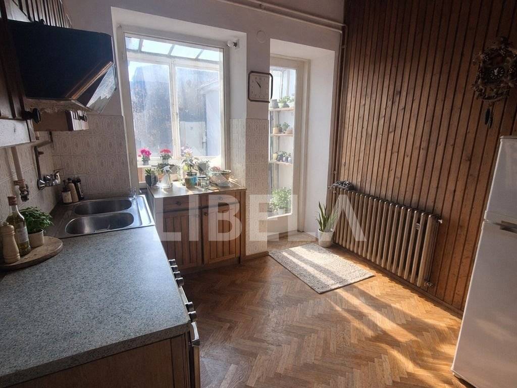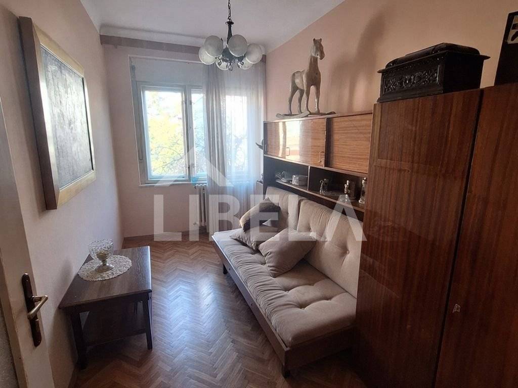 Stan se nalazi na prvom, ujedno i zadnjem katu zgrade (u kojoj su još stan u visokom prizemlju te 2 suterenska stana) te se sastoji od4 spavaće sobe, zasebnim, vrlo prostranim dnevnim boravkom, kuhinje, blagavaone te toileta i balkona. Grijanje je plinsko etažno, stolarija je drvena.
