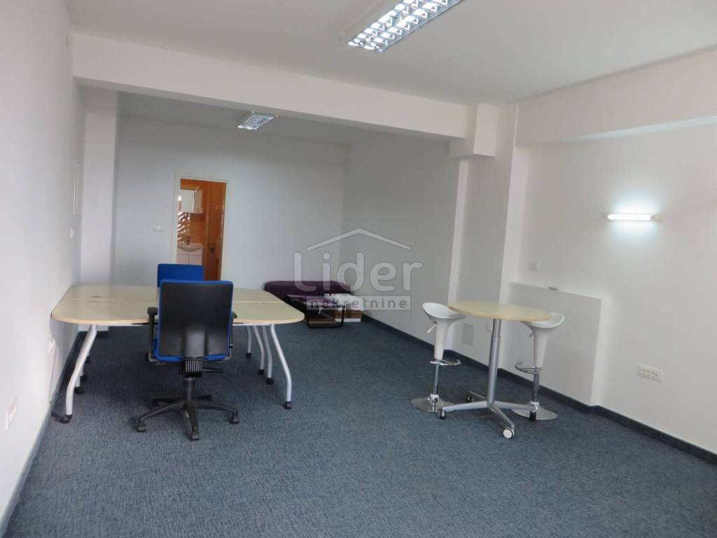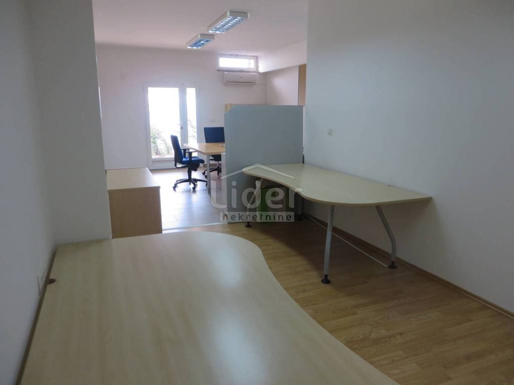 VRLO LIJEP, komotan, i sunčan poslovni prostor. Radi se o dvije, spojene prostorije od cca 60 m2, svaki prostor ima svoj sanitarni čvor, a u jednoj je u potpunosti opremljena čajna kuhinja. Prostor ima vrhunsko podno grijanje, i klima uređaje. Radni stolovi i kvalitetni pregradni boksovi su na raspolaganju, i mogu se kombinirati prema želji kupca. U cijelom je prostoru kvalitetan tepih, radi bolje zvučne izolacije, i u potpunisti provučeni kablovi i priključci za telefon, internet... Vrlo uredan prostor sa vlastitim parkingom, blizu autobusne linije.