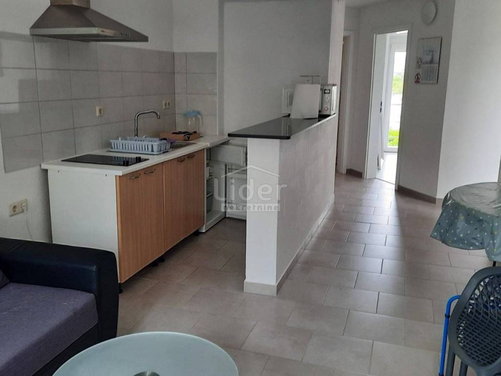 Jadranovo, a 42m2 apartment with a terrace of 10m2 and a balcony, is located on the 1st floor of a house consisting of 5 apartments. It consists of a kitchen, room, living room, hallway, bathroom. The apartment has a storage and a parking space. In a quiet and quiet location, surrounded by greenery.