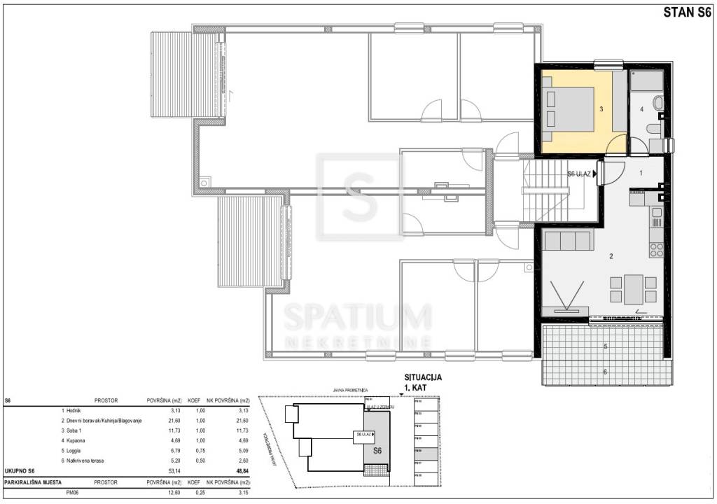 PAG, MANDRE, offers apartment S6 located on the first floor of a modern new building with a total of eight residential units.