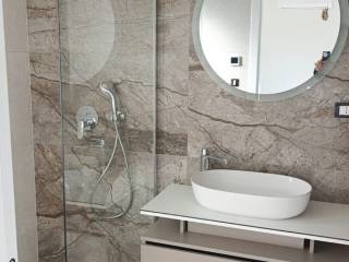 Stan B1 u prizemlju sastoji se od : 3 spavaće sobe (jedna od ima vlastitu kupaonicu- prva) , dodatna kupaonica -druga, vešeraj, hodnik , dnevni boravak - kuhinja i blagavaonica sa izlazom na terasu koja je spojena sa vrtom (120m2) . Stanu pripadaju dva parkirna mjesta.