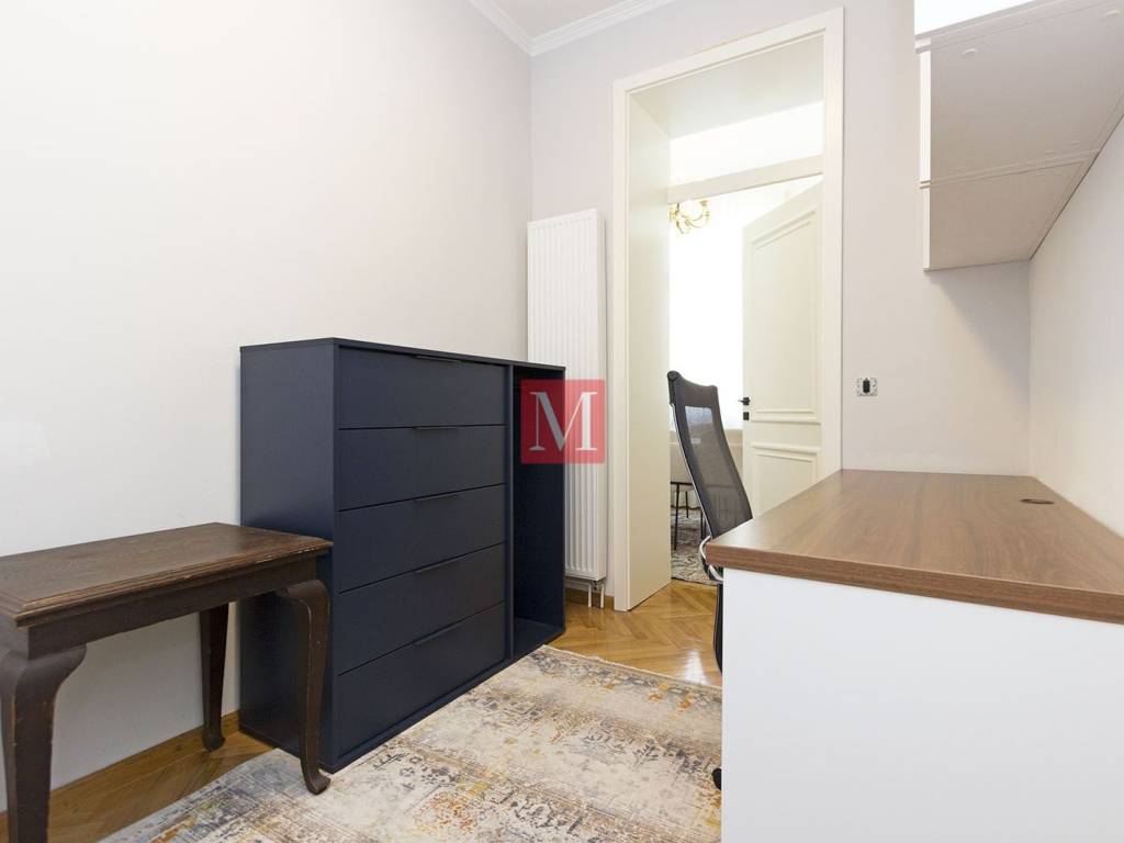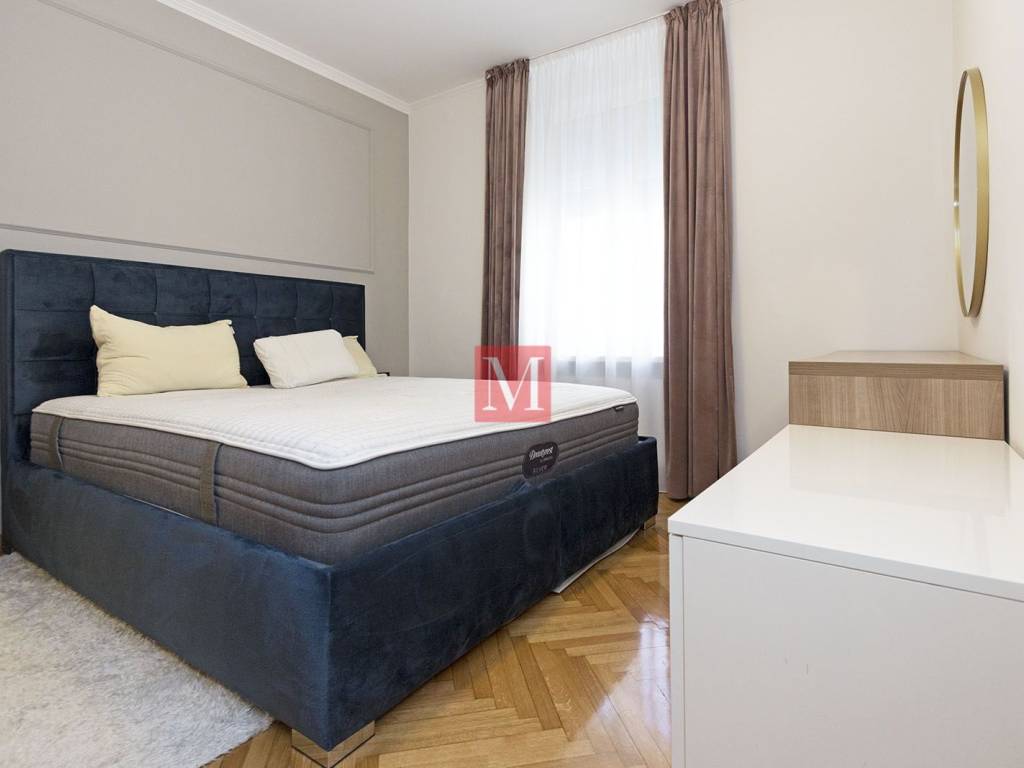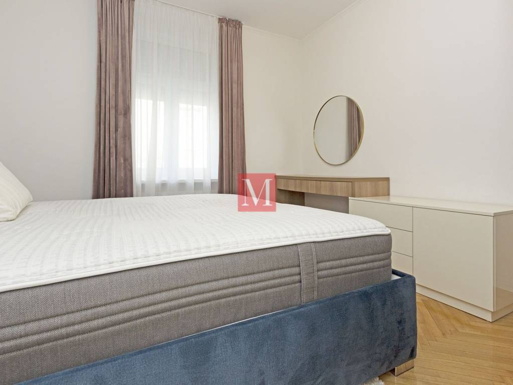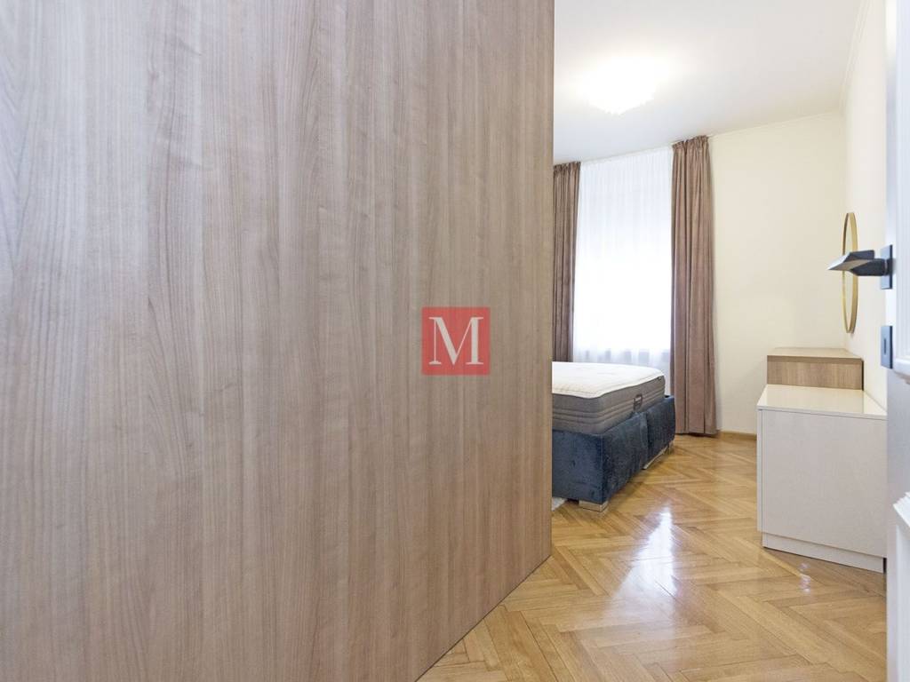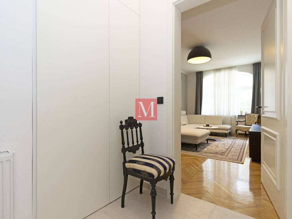 Gorgeous, exclusive newly renovated 3 bedroom apartment on the elevated ground floor of an impressive villa in Nazorova Street - close to Britanski Trg! The apartment has three bedrooms, a living room, dining room, kitchen, one bathroom, guest toilet, as well as a spacious hallway and storage room. All furniture in the apartment is of top quality, custom-made. The apartment comes with a parking space, a walled-in storage room in the yard, attic space and use of a shared yard. The apartment is surrounded by greenery and very bright. The apartment is located a few minutes walk from Britanski Trg and the Tuškanac forest park. Bus stop 1 min from the apartment. Long-term lease with a mandatory deposit. Available as of 01.05.2026. Agency fee: 1 month rent + VAT.