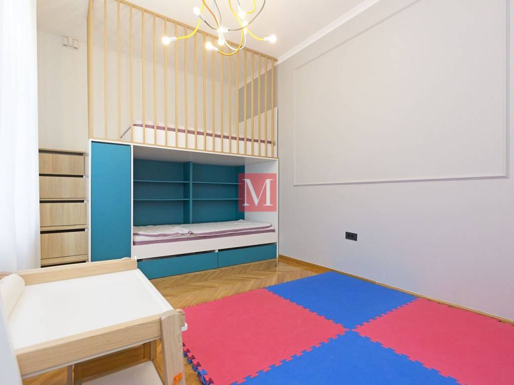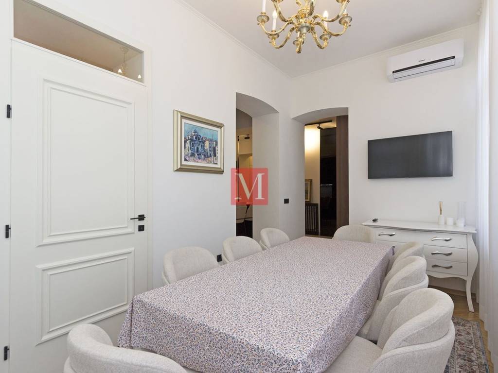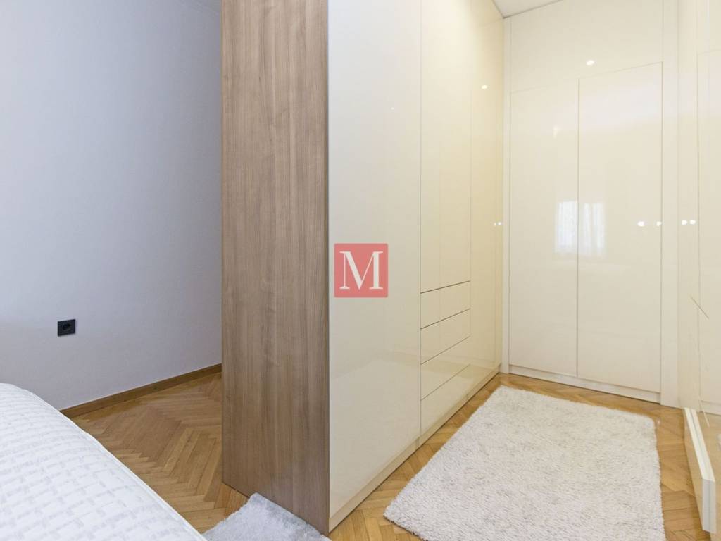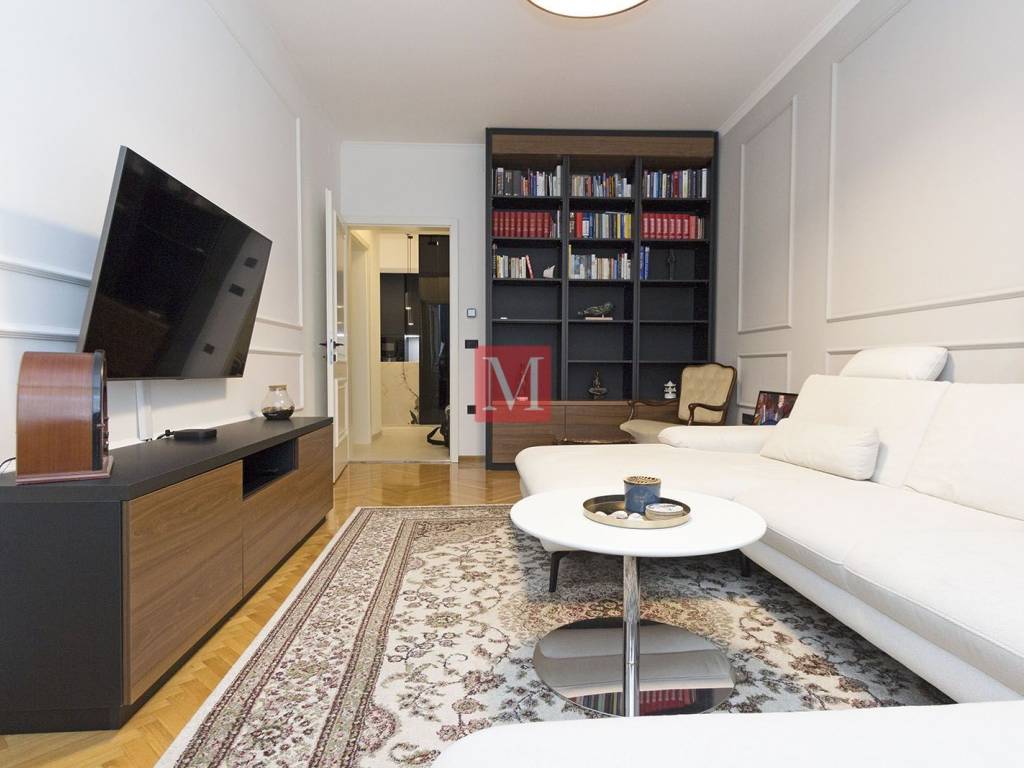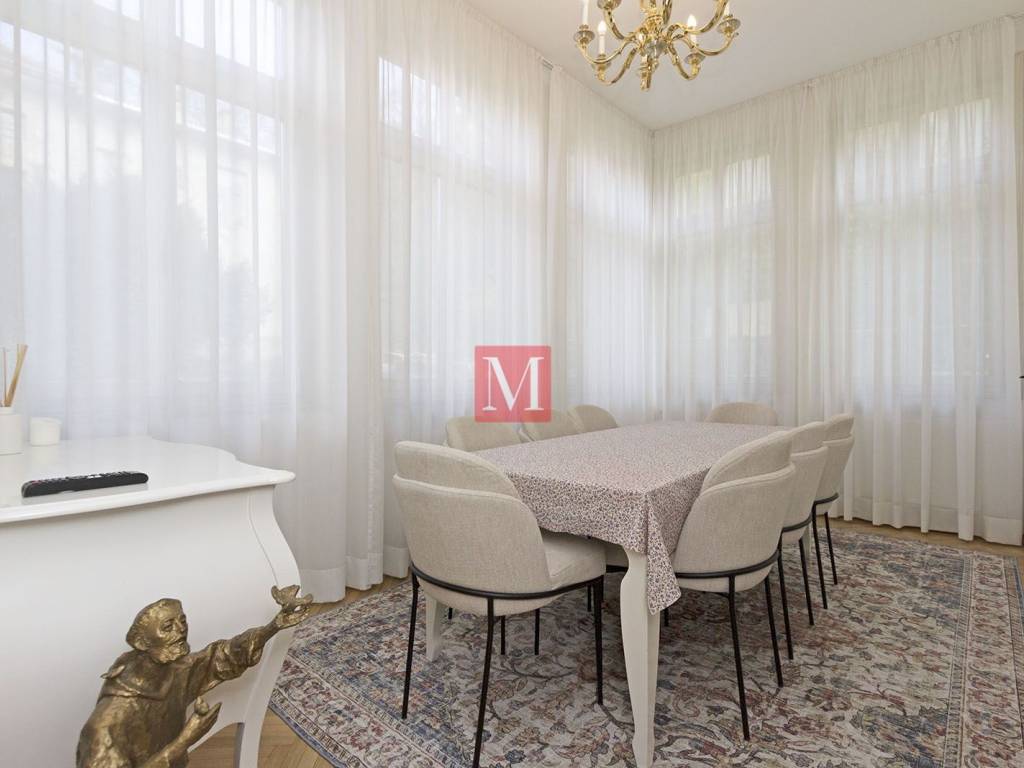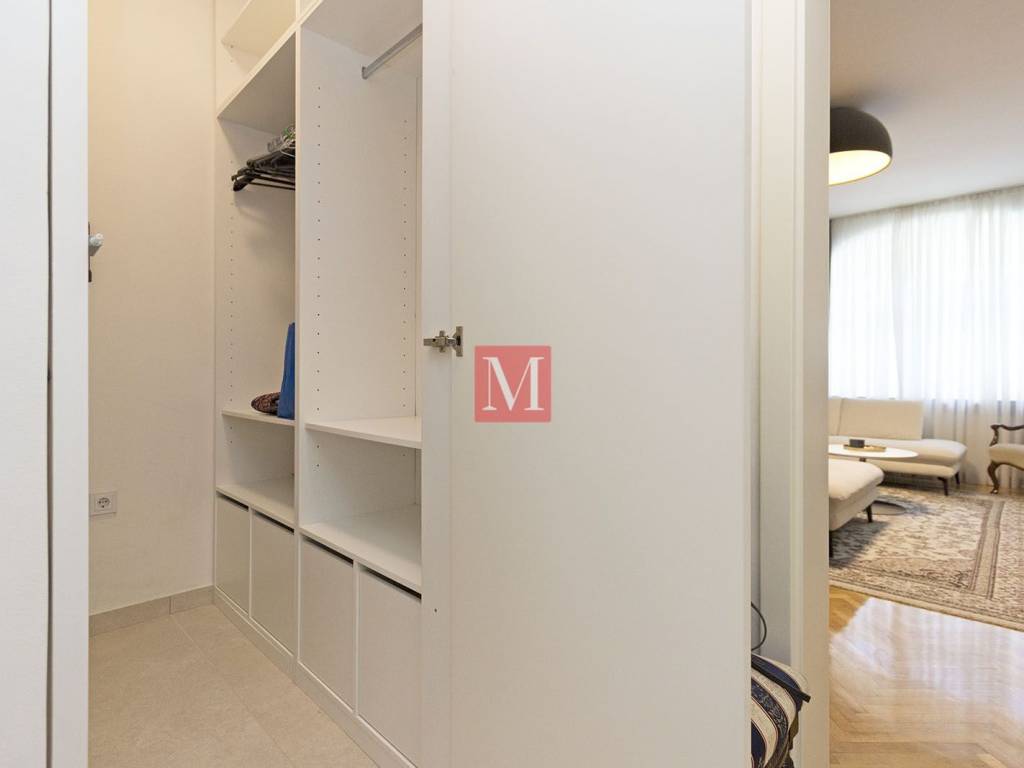 Gorgeous, exclusive newly renovated 3 bedroom apartment on the elevated ground floor of an impressive villa in Nazorova Street - close to Britanski Trg! The apartment has three bedrooms, a living room, dining room, kitchen, one bathroom, guest toilet, as well as a spacious hallway and storage room. All furniture in the apartment is of top quality, custom-made. The apartment comes with a parking space, a walled-in storage room in the yard, attic space and use of a shared yard. The apartment is surrounded by greenery and very bright. The apartment is located a few minutes walk from Britanski Trg and the Tuškanac forest park. Bus stop 1 min from the apartment. Long-term lease with a mandatory deposit. Available as of 01.05.2026. Agency fee: 1 month rent + VAT.