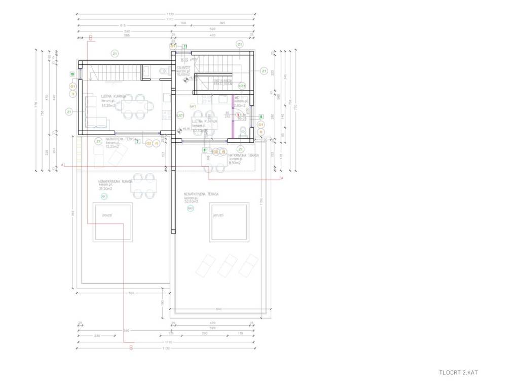 Stepenice vode na krovnu terasu koja se sastoji od prostrane prostorije (dnevni-kuhinja), WC, te same terase sa prekrasnim pogledom na more i otoke, instalacije za Jacuzzi su postavljene a mjesto za sunćalište osigurano.