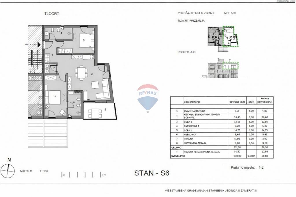 Remax Real Estate Center presents an exceptionally attractive apartment located on the second and top floor of a modern residential building with a total of six residential units, situated in a quiet and well-maintained neighborhood in the vicinity of Umag. This is a high-quality new development currently under construction, with completion scheduled for the 2026 season. The location offers a high level of privacy and tranquility, while maintaining excellent connectivity to both the town and the sea, as the center of Umag is only five kilometers away and a well-maintained beach is approximately 600 meters from the property.