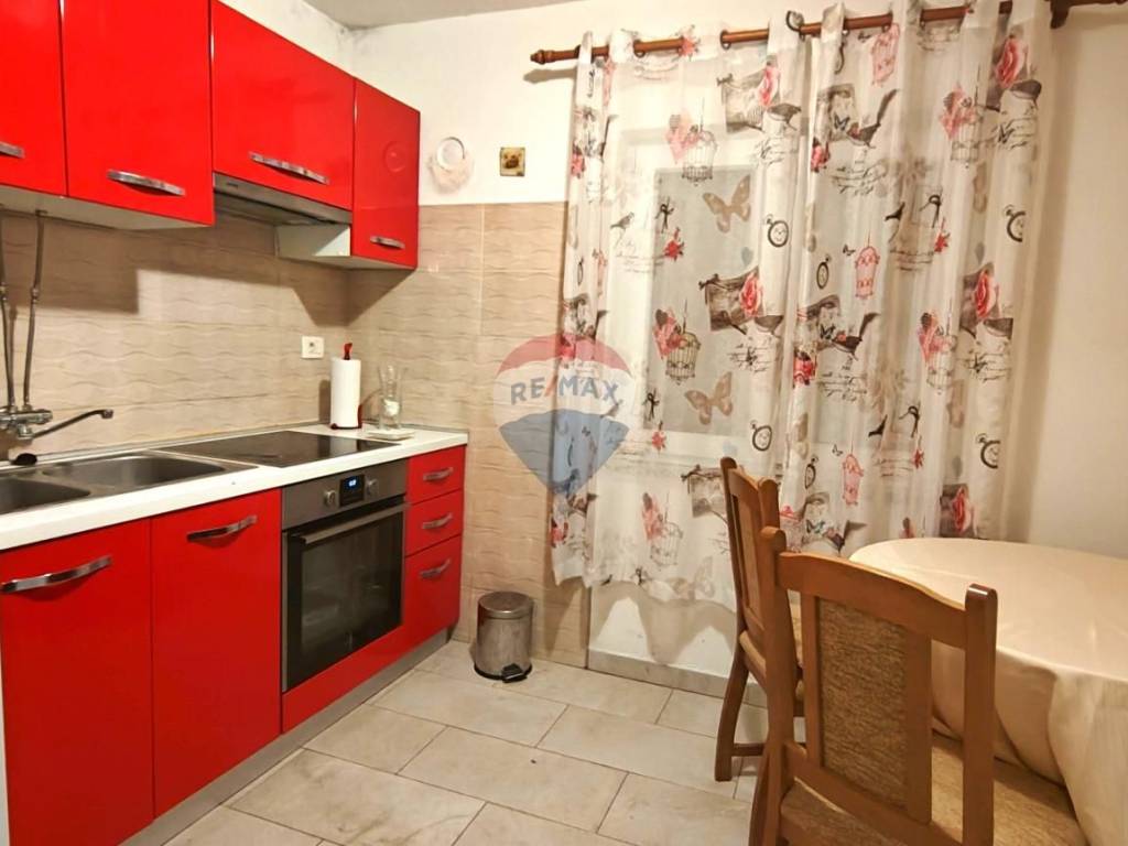 The inter-floor construction is concrete, and the house was fully renovated and furnished in 2023. It is connected to electricity, water, and sewage systems. Additional features include a newer façade, PVC windows with shutters, and air conditioning. The property is sold fully furnished, allowing immediate move-in or a quick start for tourist rental without additional investment.