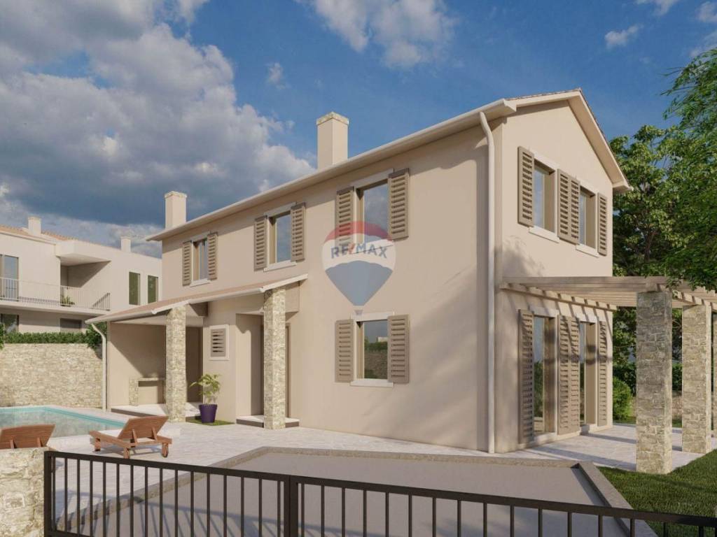 Near Pićan, we are selling a newly built house with a total area of 110 m2, consisting of a living room, kitchen and bathroom on the ground floor, and two bedrooms and two bathrooms on the first floor. The house is being sold on a turnkey basis. Ownership and documentation are in order. The completion of the works is scheduled for the end of 2026. We invite you to take a look!