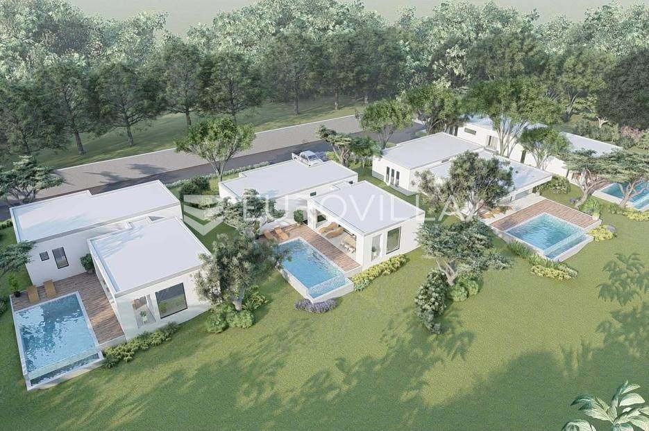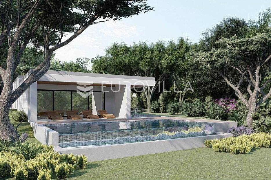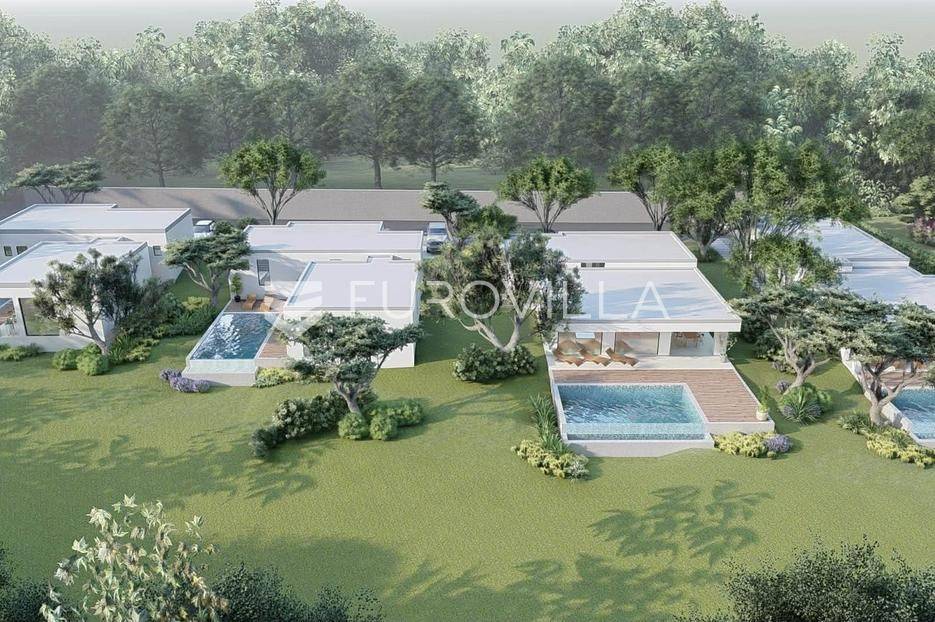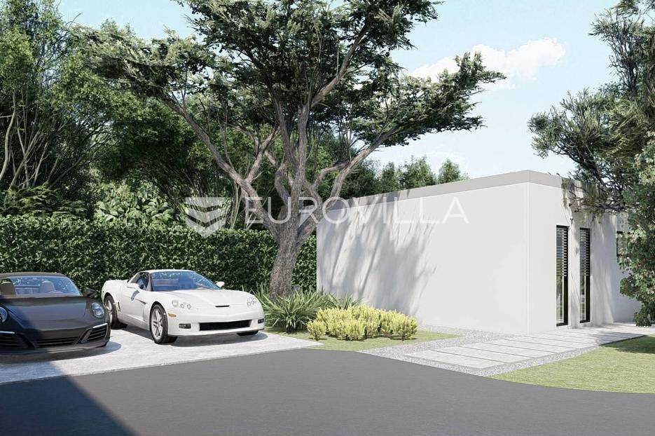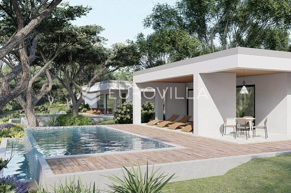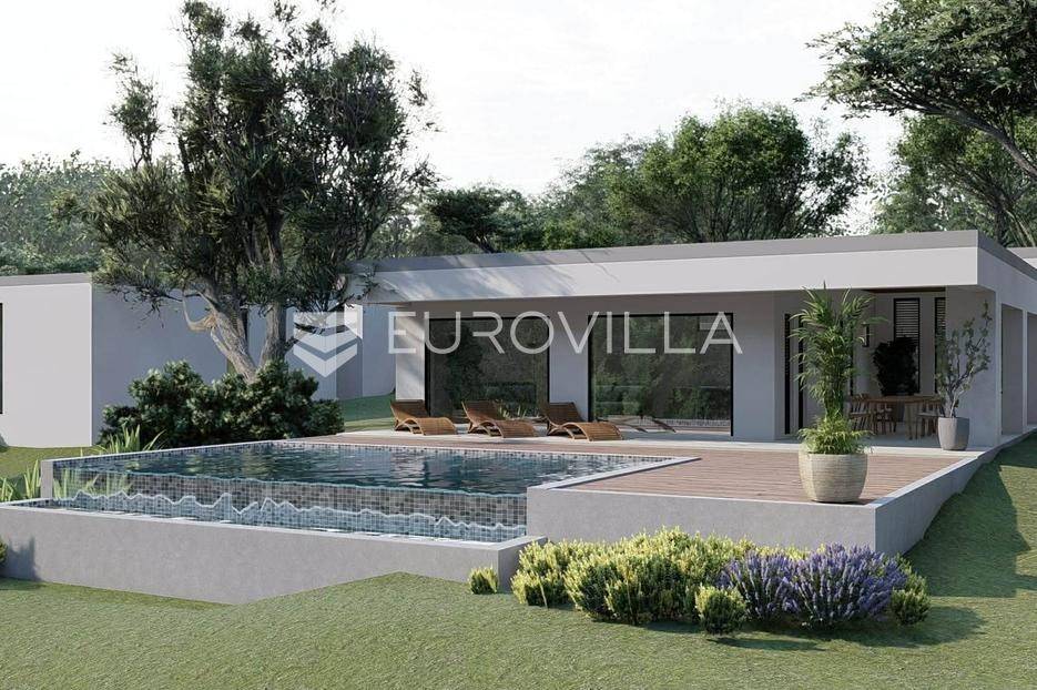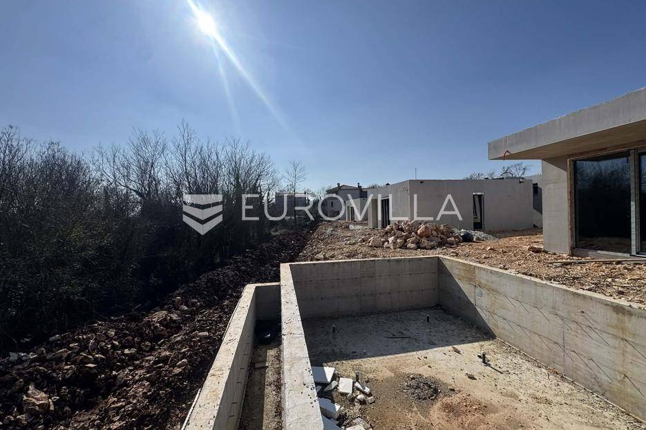 Na prodaju je moderna kuća u izgradnji, smještena na samom rubu naselja i okružena zelenilom. Smjestila se na prostranoj parceli površine 700 m2, pružajući idealan spoj privatnosti, tišine i dobre povezanosti sa svim potrebnim sadržajima.Kuća je projektirana kao prizemnica ravnog krova, s naglaskom na funkcionalnost i suvremeni način života. Pažljivo osmišljen raspored prostora nudi ulazni hodnik, vešeraj, gostinjski WC, prostrani open space dnevni boravak povezan s kuhinjom i blagovaonicom ukrašen velikim staklene stijenama koje omogućuju obilje prirodnog svjetla, zatim tri spavaće sobe od kojih svaka ima vlastitu kupaonicu.U uređenom dvorištu posebno se ističe preljevni bazen površine 45 m2, koji će zasigurno postati omiljeno mjesto za osvježenje i opuštanje tijekom toplih dana. Uz sve to, na raspolaganju su i dva privatna parkirna mjesta.Vila je trenutno u fazi izgradnje, a završetak radova planiran je tijekom 2026. godine, što budućem vlasniku pruža mogućnost eventualnih prilagodbi i personalizacije u završnim fazama uređenja.Ova nekretnina predstavlja odličnu priliku za sve koji traže moderan dom za odmor, mirno mjesto za život u prirodi ili sigurnu investiciju za turistički najam.Za više informacija slobodno nas kontaktirajte.... Više na eurovilla.hr, ID: 755315