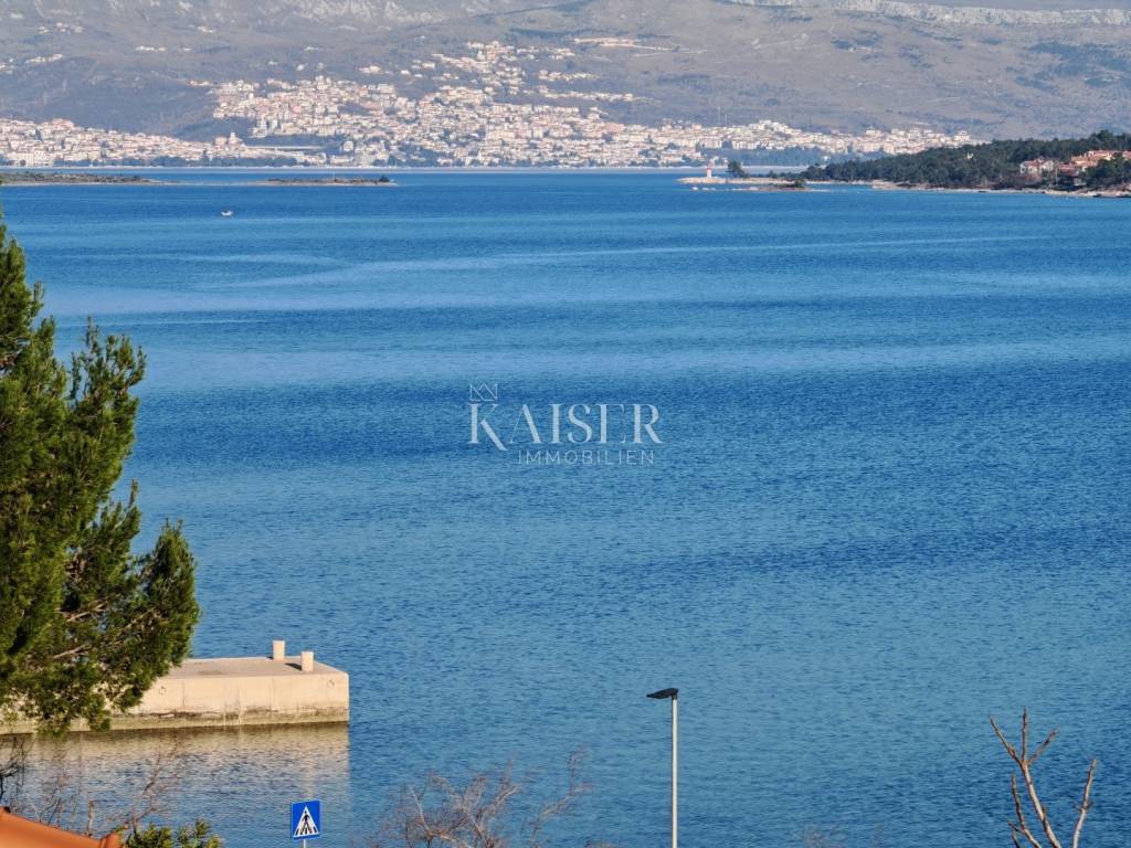 The apartment is located on the second floor and is accessed by an external staircase. Upon entering, you are greeted by a spacious hallway that provides enough space for a large wardrobe and storage. The hallway leads to the main living area, which is designed as an open concept and combines a fully equipped kitchen, dining room and living room. The space is bright and pleasant, ideal for everyday living and socializing. The apartment has two bedrooms, both with sea views, which further contributes to the special atmosphere of this property. The larger bedroom has direct access to a balcony of approximately 5 m² with a beautiful sea view, while the smaller room also offers a sea view, although it does not have direct access to the balcony. The apartment has two balconies - the first is accessible from the bedroom and dining room, while the second balcony of approximately 6 m² also opens to the sea from the living room. Both balconies are located on the sunny side and provide the perfect place for morning coffee with sunrise or relaxation during the day with a sea view. The bathroom is located on the left side of the hallway and is equipped with a toilet, shower, sink, washing machine and water heater. An additional advantage is the window that allows natural ventilation and additional light.