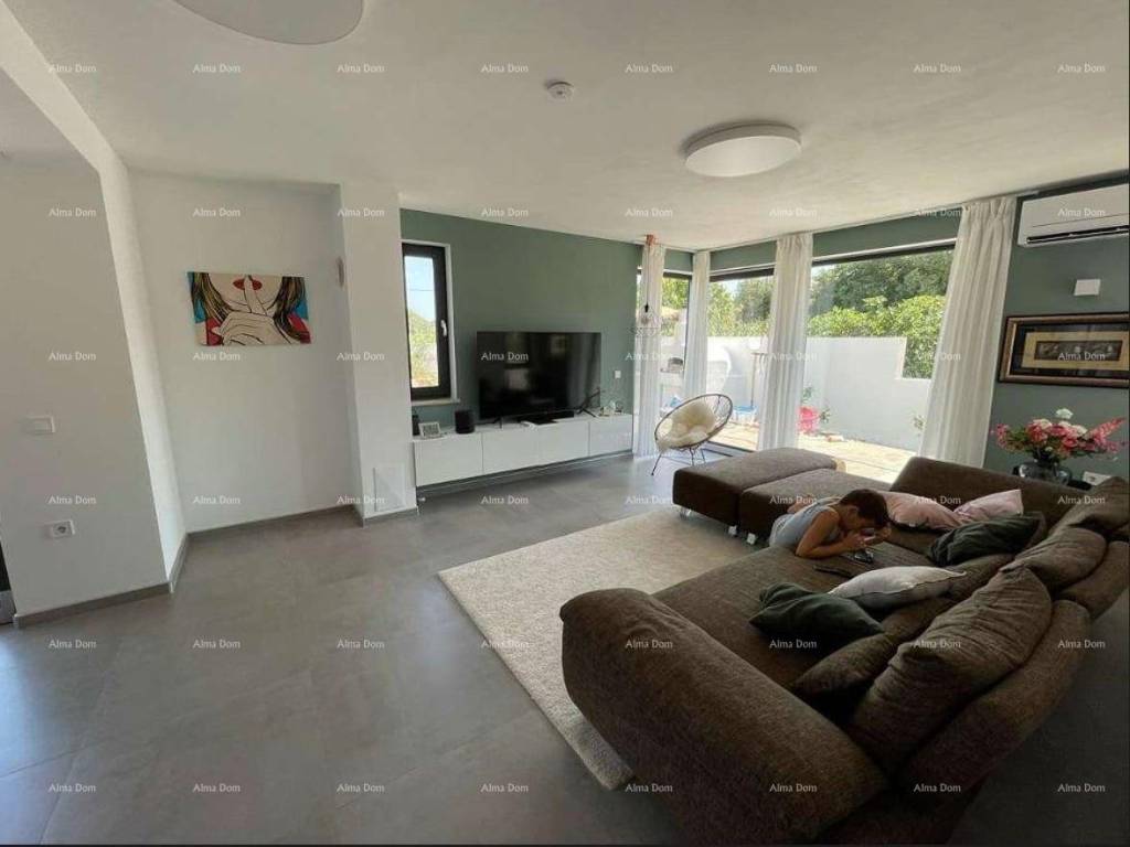 For sale is a modern detached villa in Peroj, Istria, built in 2019 and located about 800 meters from the sea. The house has 134 m of living space spread over three levels and is situated on a plot of approximately 460 m.